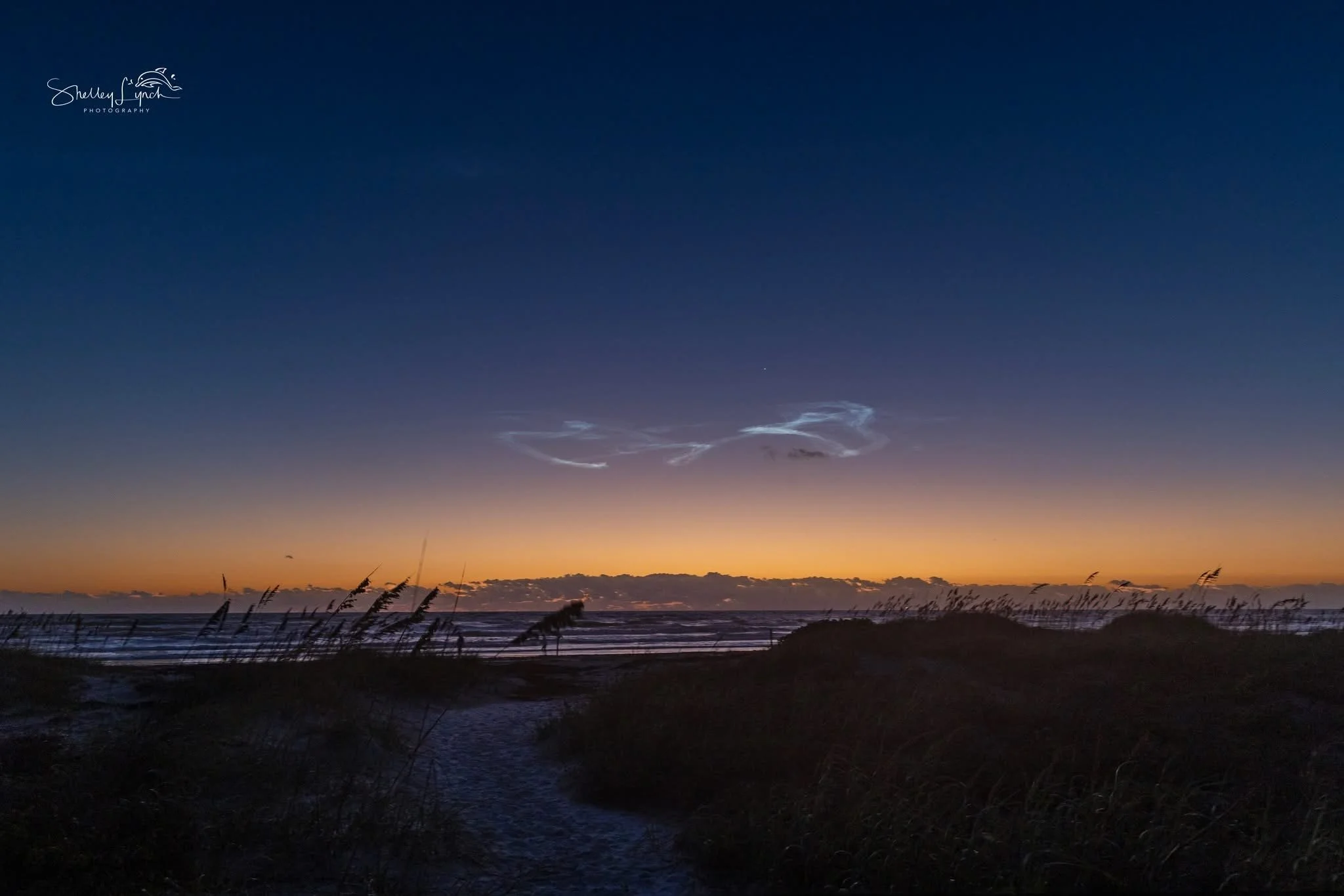 As I walked to the beach in the pre-dawn sky, I could see the shimmering remnants from the latest launch — shaped like a heart just below brilliant Venus.