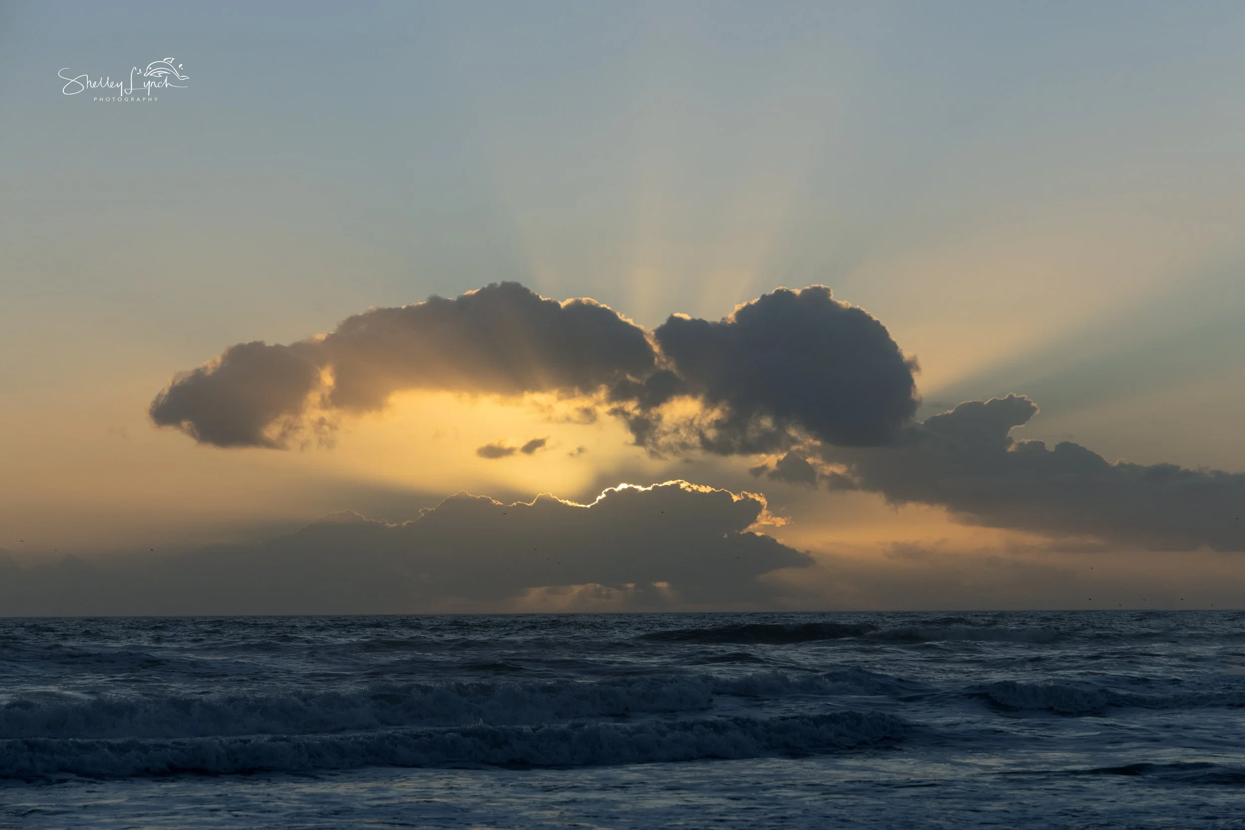 When the sun rose, it nestled into the clouds, sending rays of golden light streaming across the sky. The ocean soaked up the sparkles, looking like golden diamonds dancing on the surface.