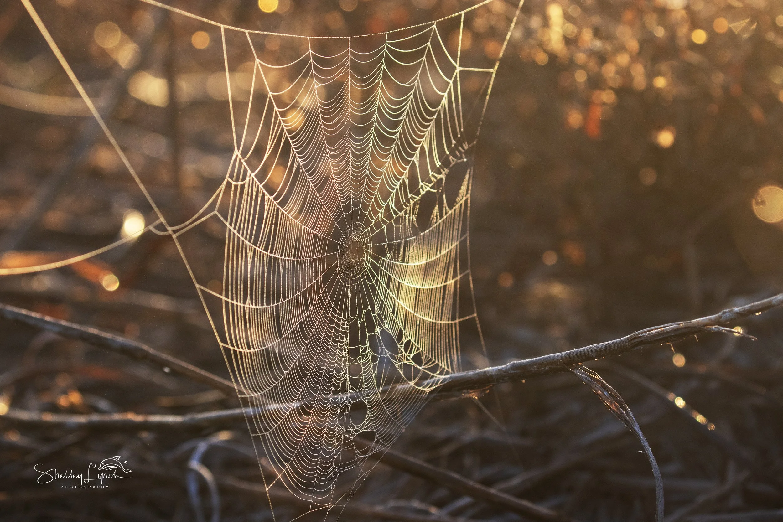 Eventually, the beautiful sun came up, filling the landscape with a golden glow and illuminating the masterful art of the spider.