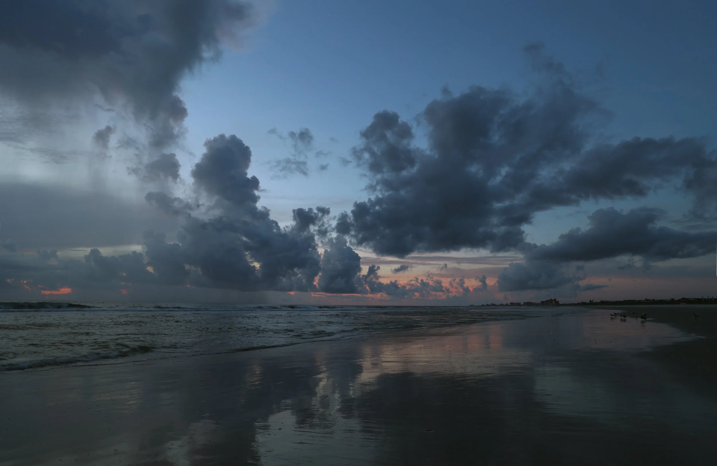 With rain in the forecast I thought it was going to be a wet sunrise but luckily the rain stayed offshore. The flock of seagulls and surfers came to enjoy the gorgeous and dramatic sunrise.