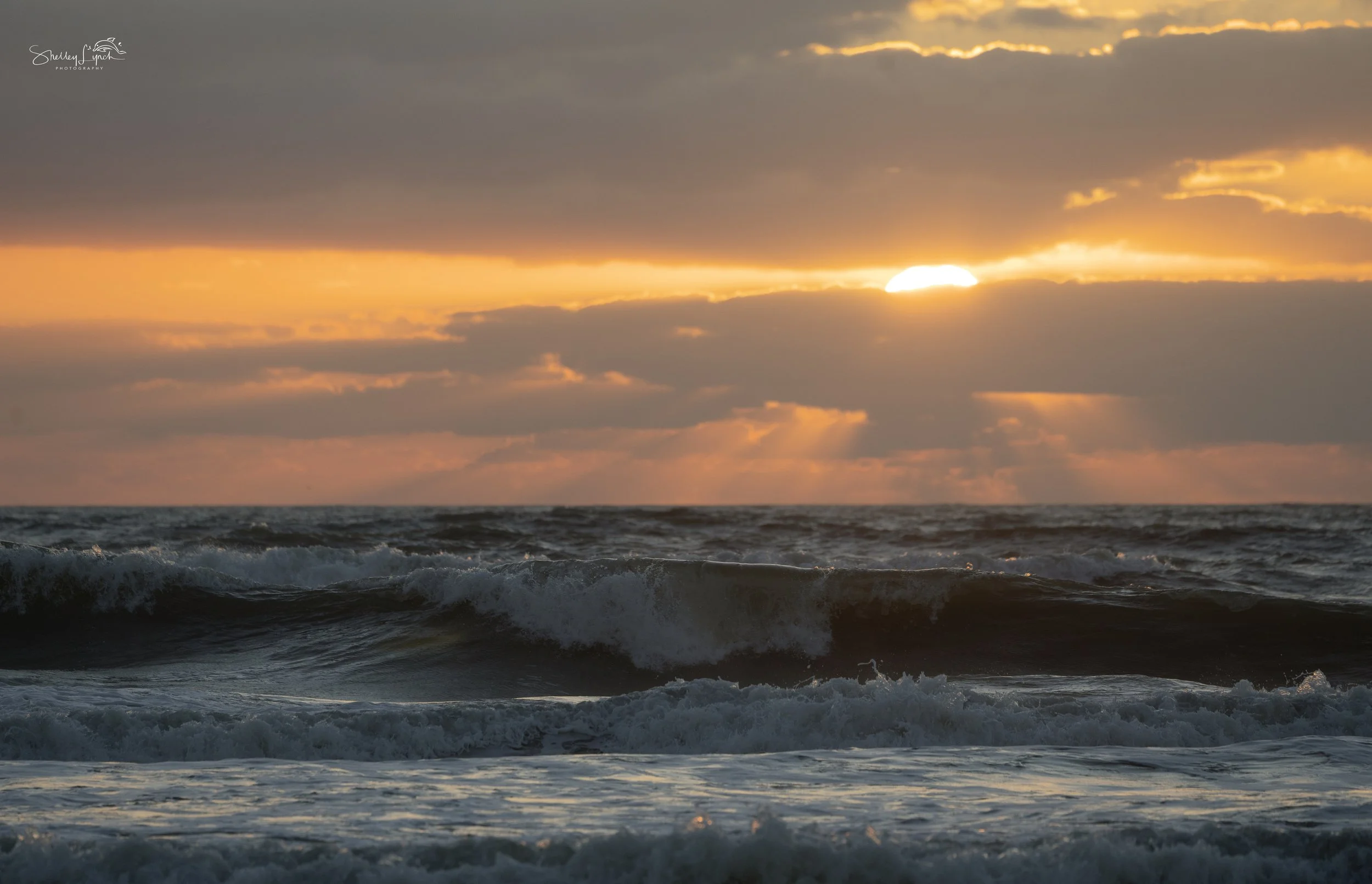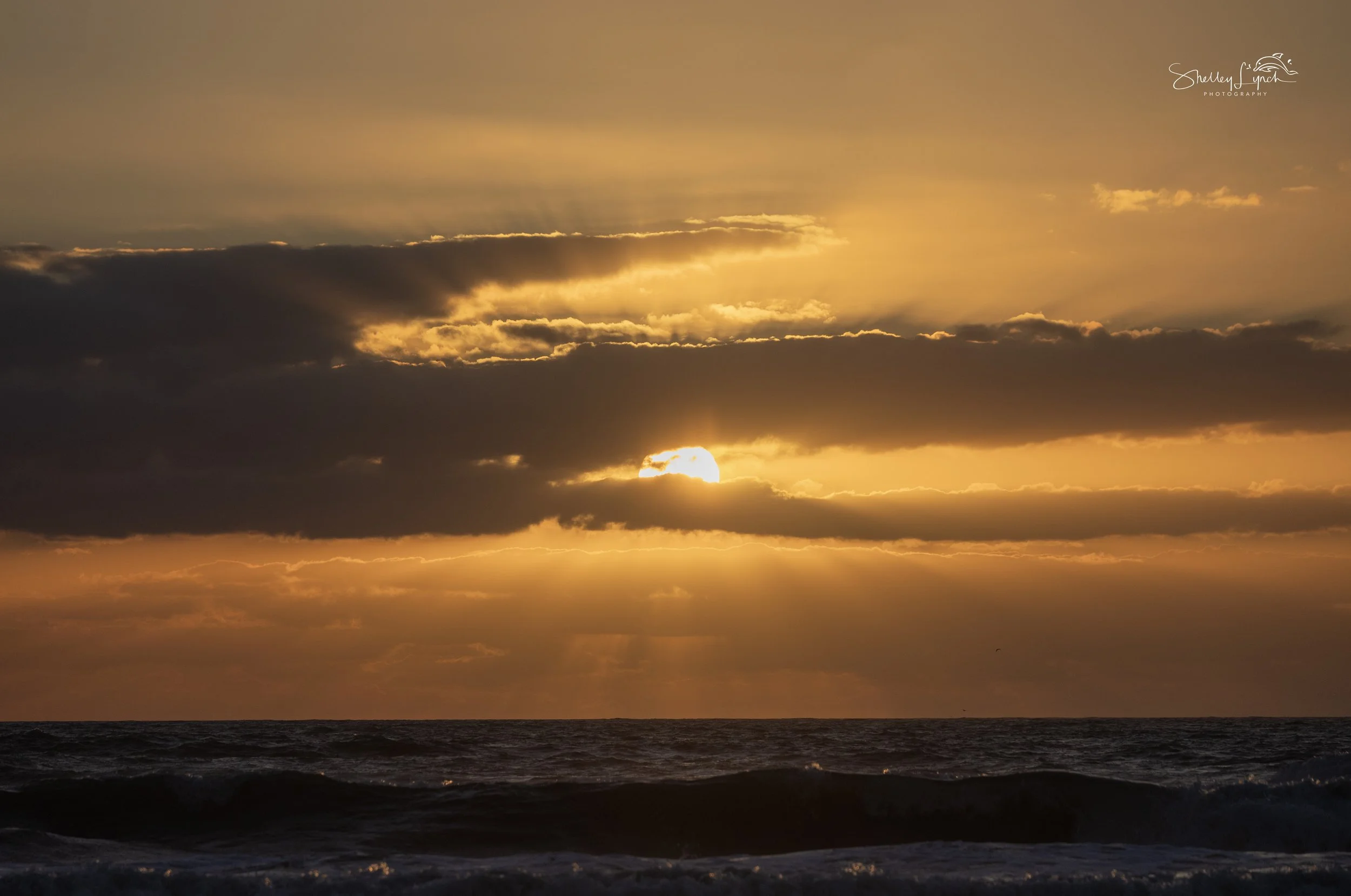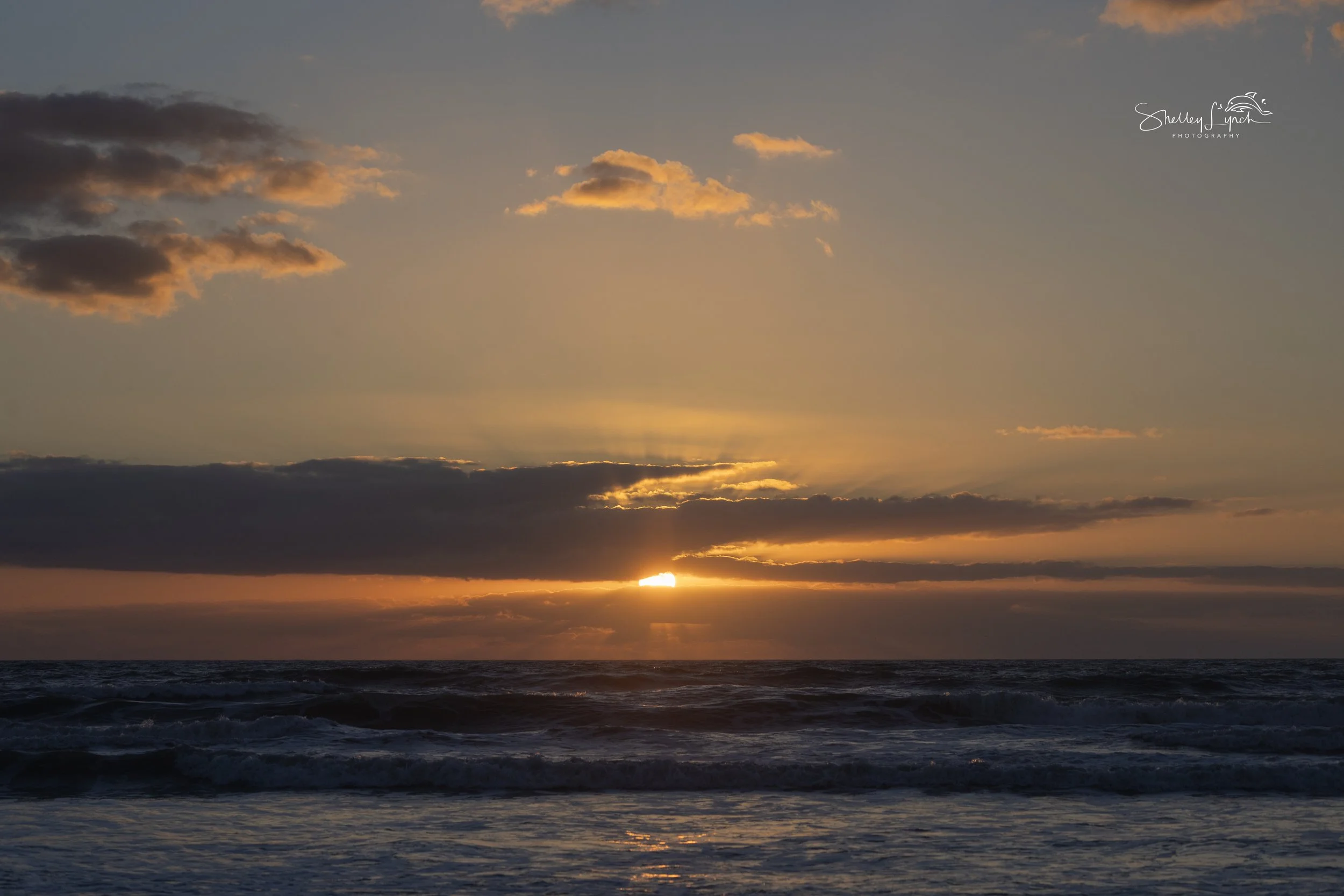 The sun came up surrounded by soft pink before turning gold, sending out streaming rays of light. The ocean churned, soaking up the sparkle and adding to the vibrant vibe.