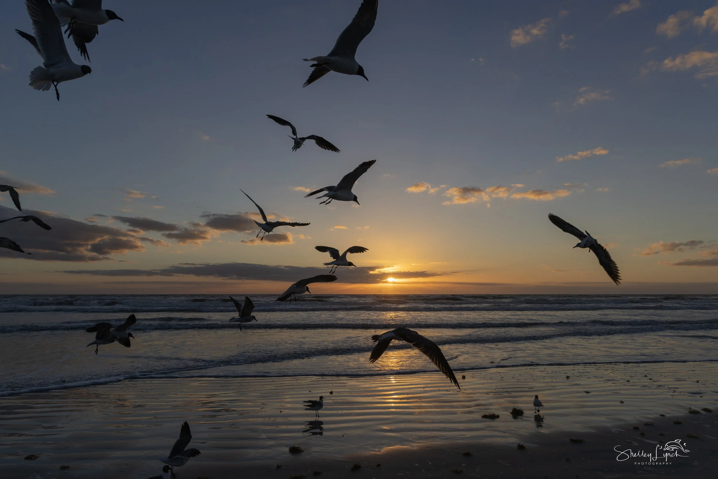 A nice salty breeze filled the air as I walked to the beach. For the first time in a long while, clouds joined the sunrise, adding layers of color and texture.