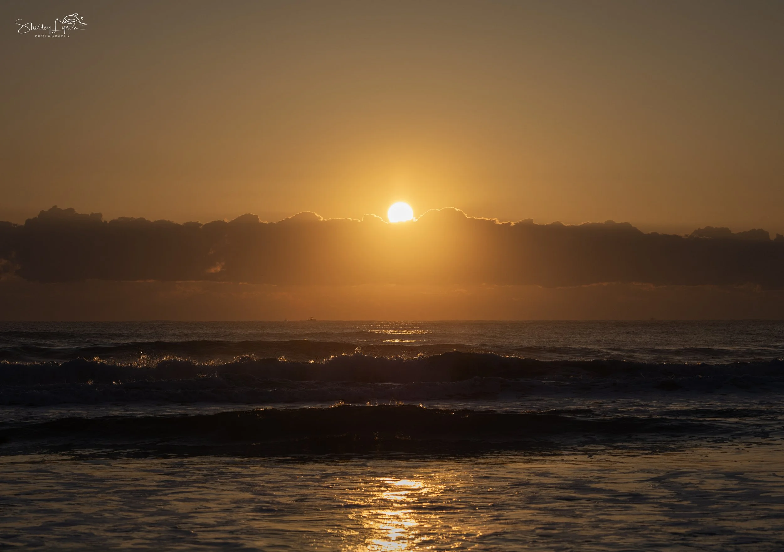The sun came up from behind a line of clouds shining a golden glow over the huge waves. Golden sparkles shimmered on the water calling to the surfers to come play.