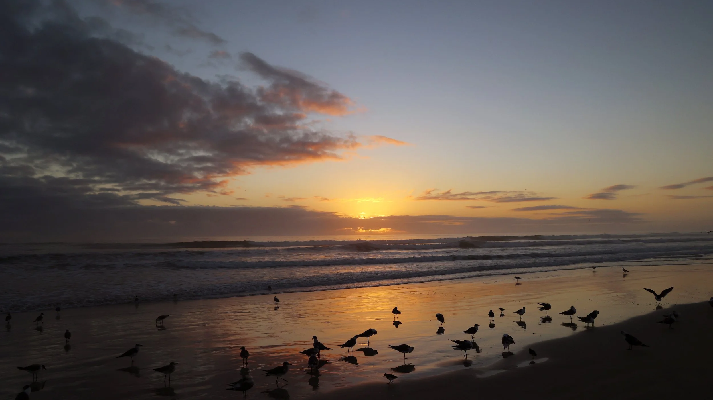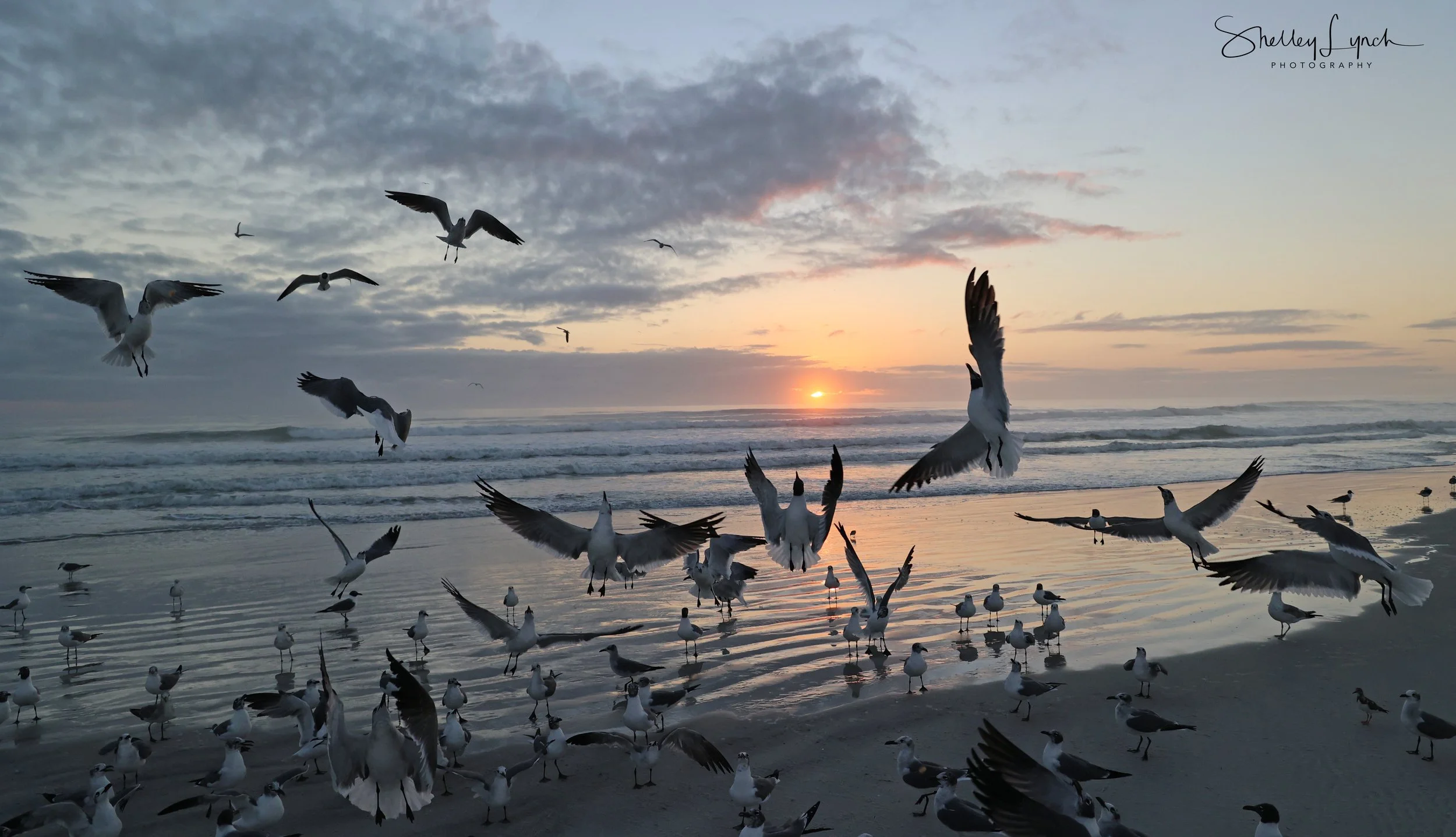 The flock of seagulls had bath time in the surf, letting the waves carry them in then back out. With warm air and a clam ocean it felt like a lovely spa day.