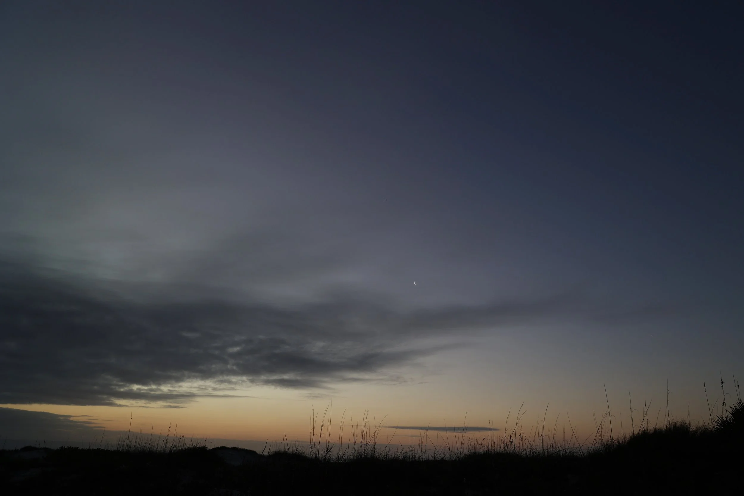 The almost new moon was bright in the lavender sky as I walked to the beach. The new moon is still a few days away but the energy can be felt now. New moons bring us fresh starts, and beginnings.