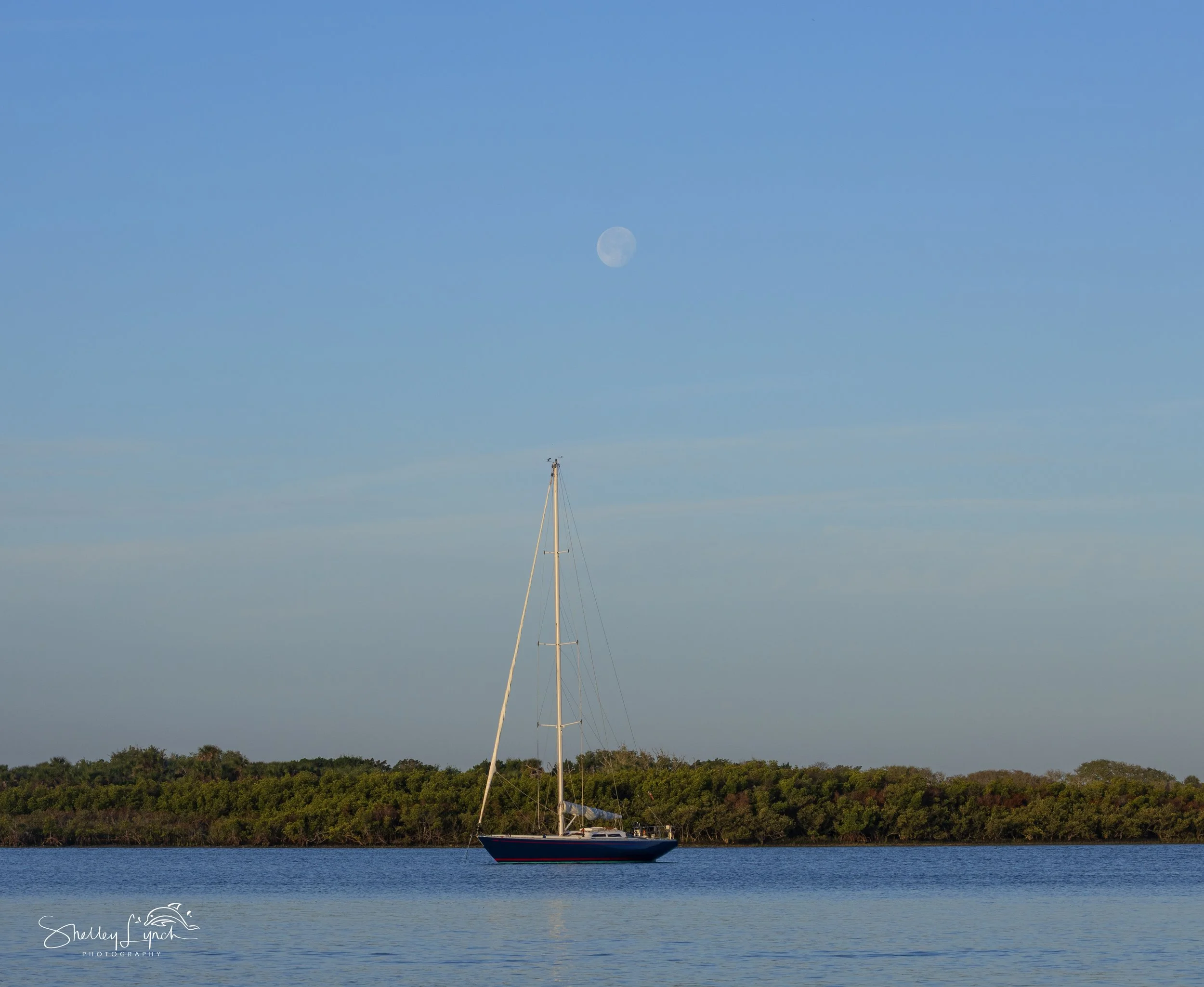 Later, the moon slowly set over the Indian River… while a pod of dolphins, Momma Bump and her calf, along with Birdie, enjoyed snuggles and snacks.