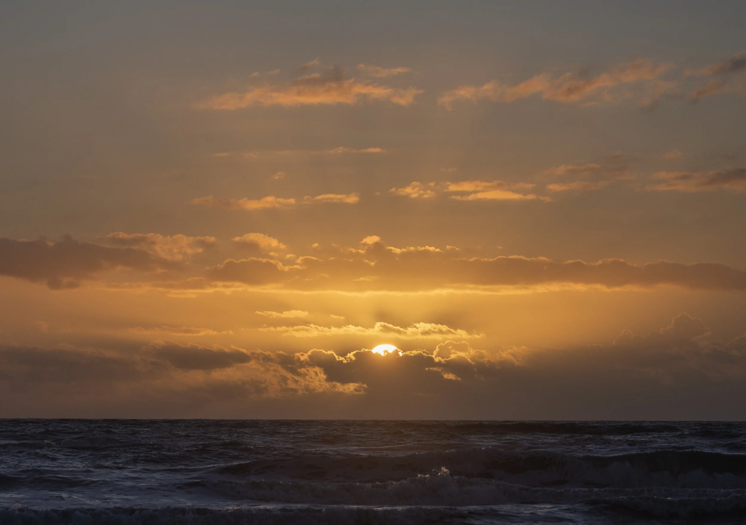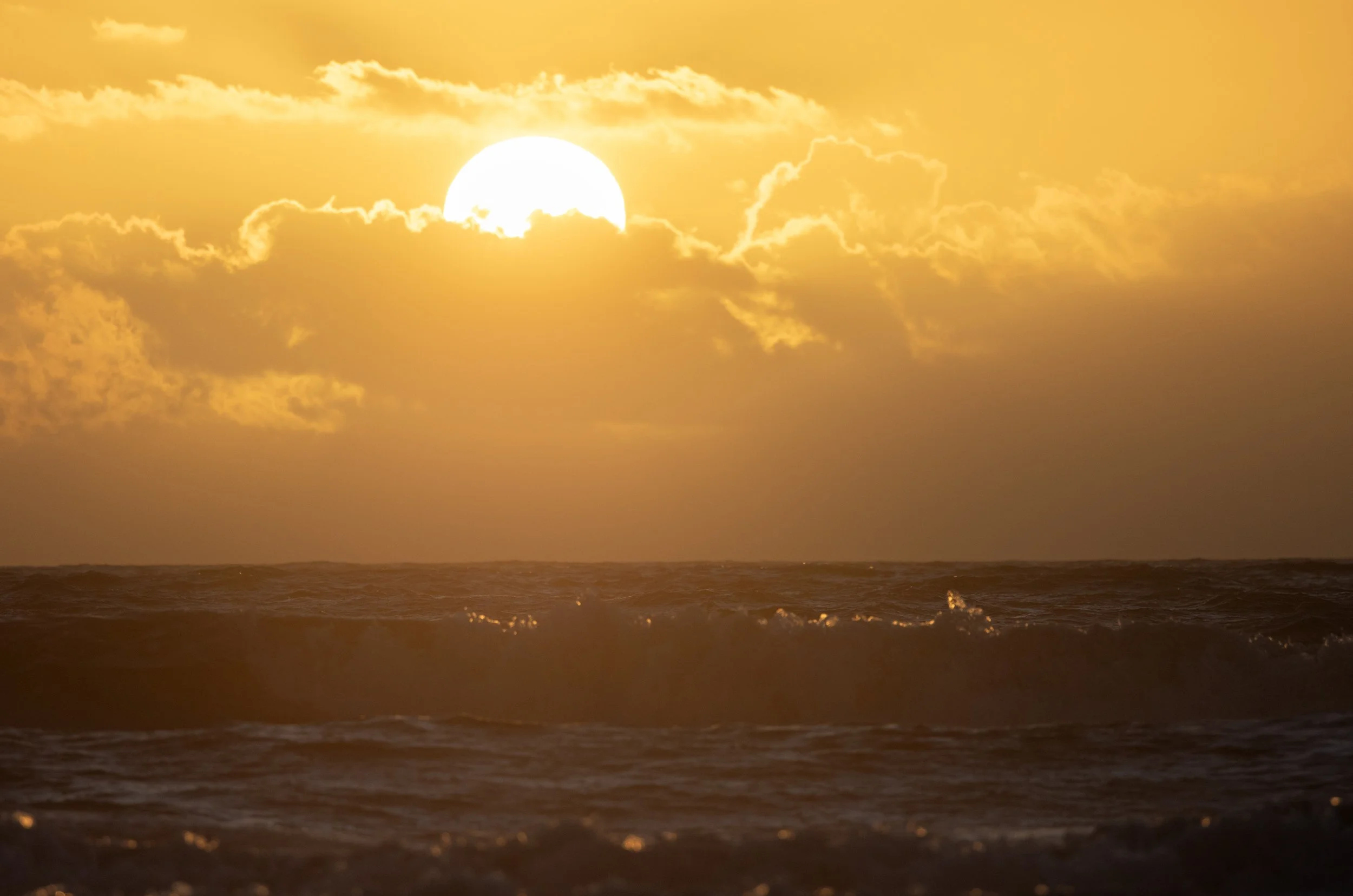 As the sun rose, it brought a golden glow, with sparkles dancing across the ocean.