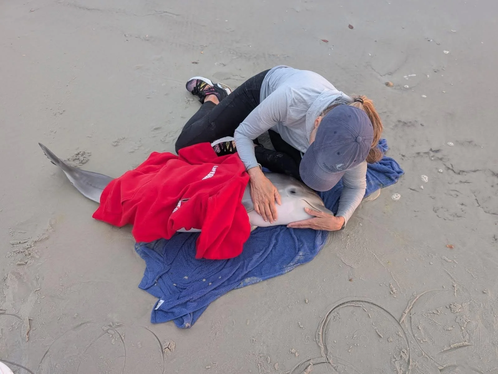 The really wonderful part of the story was the love and teamwork by all. The lifeguards were extraordinary, calm, caretaking the dolphin and the people with so much compassion.