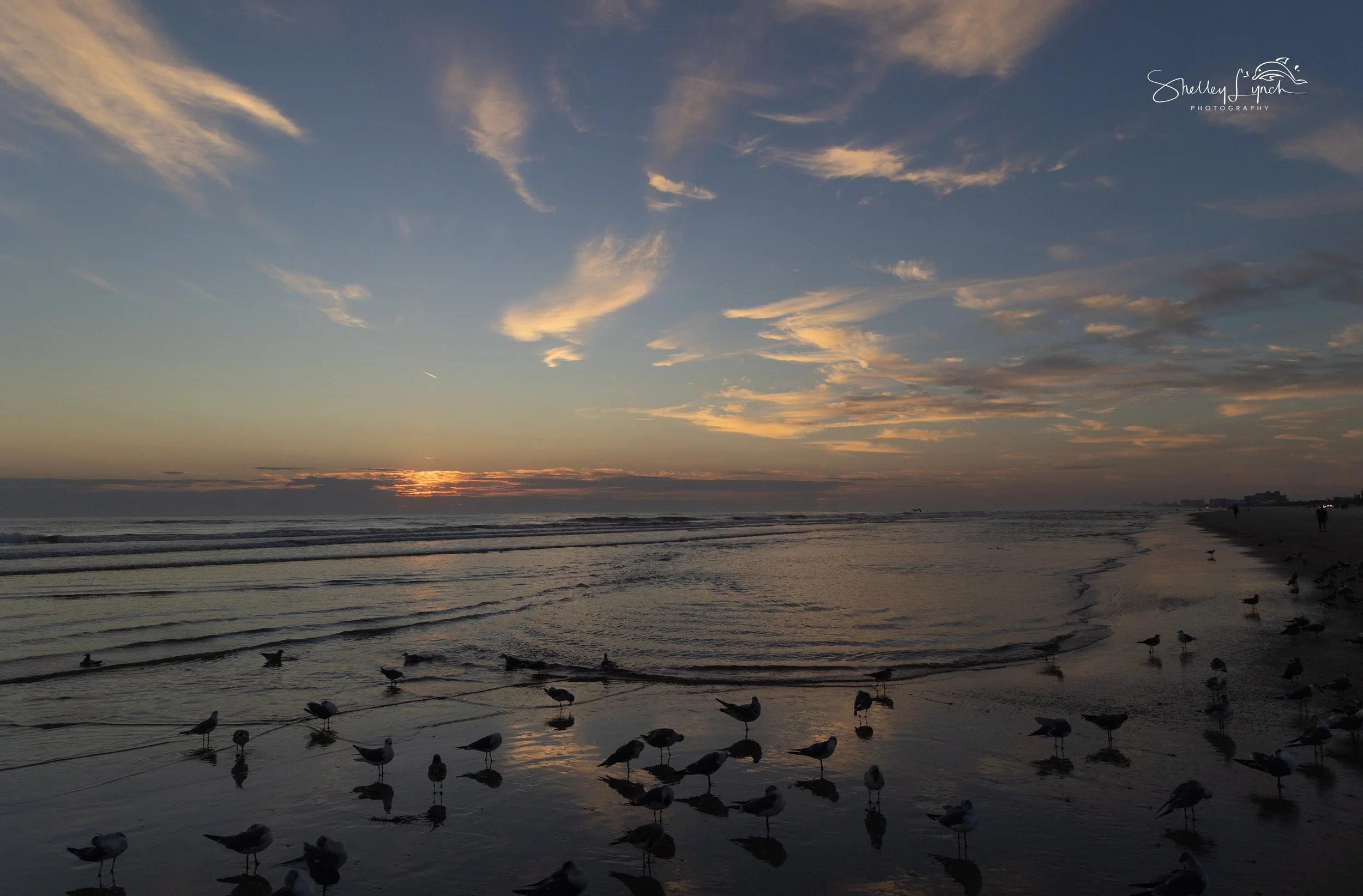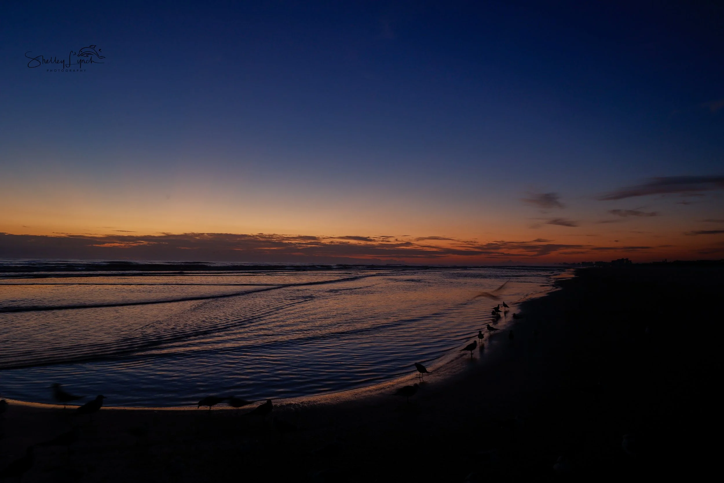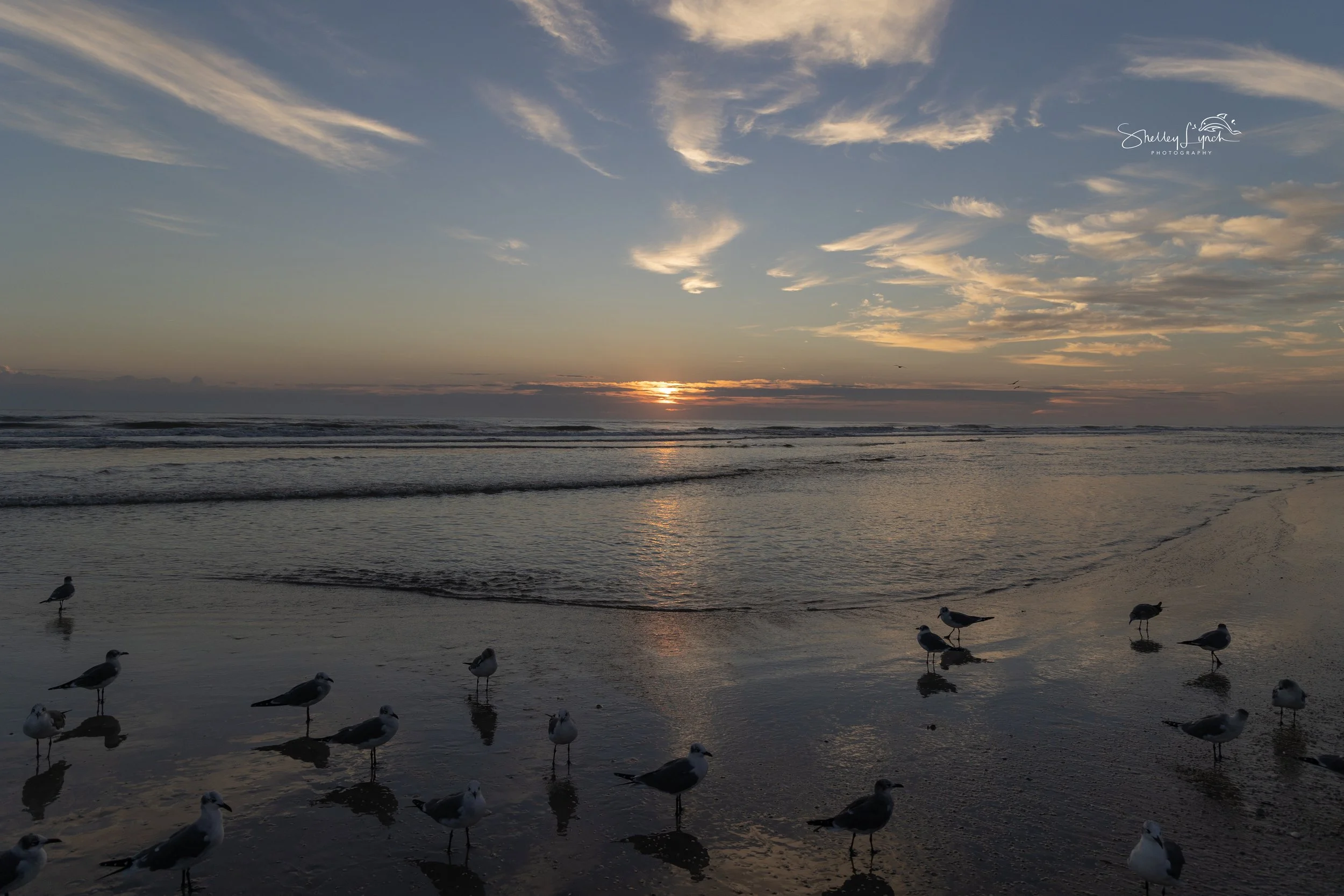 Good Morning! First light was serene, not a creature was stirring, not even a gull. The sky slowly brightened, offering a soft pastel color show. Eventually the sun lifted through the clouds, filling the sky and ocean with a vibrant golden glow.