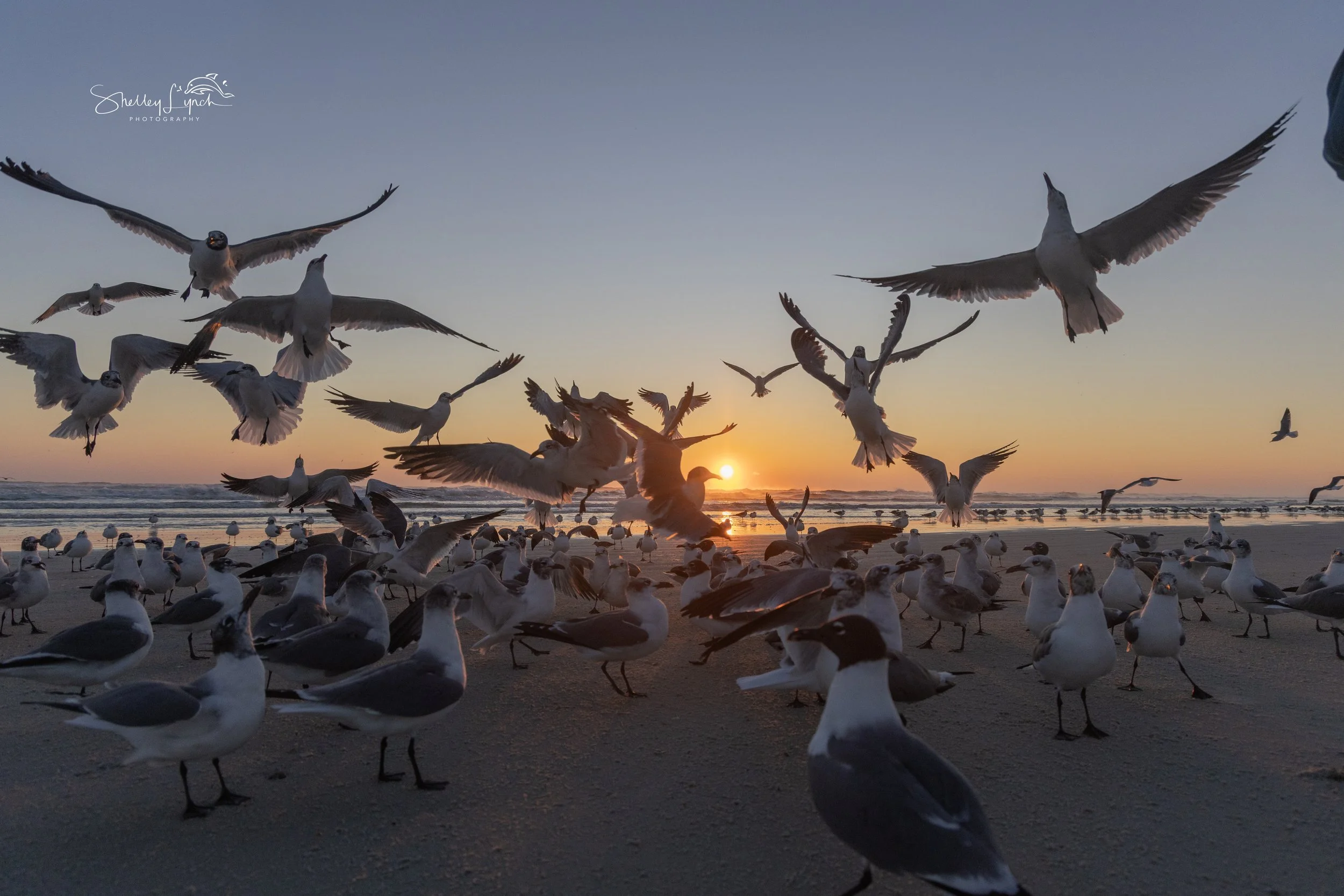 The flock was big and extra frisky—lifting up as one, darting out to the ocean and back. As if on cue, they headed into the shallows for bath time, getting squeaky clean together.