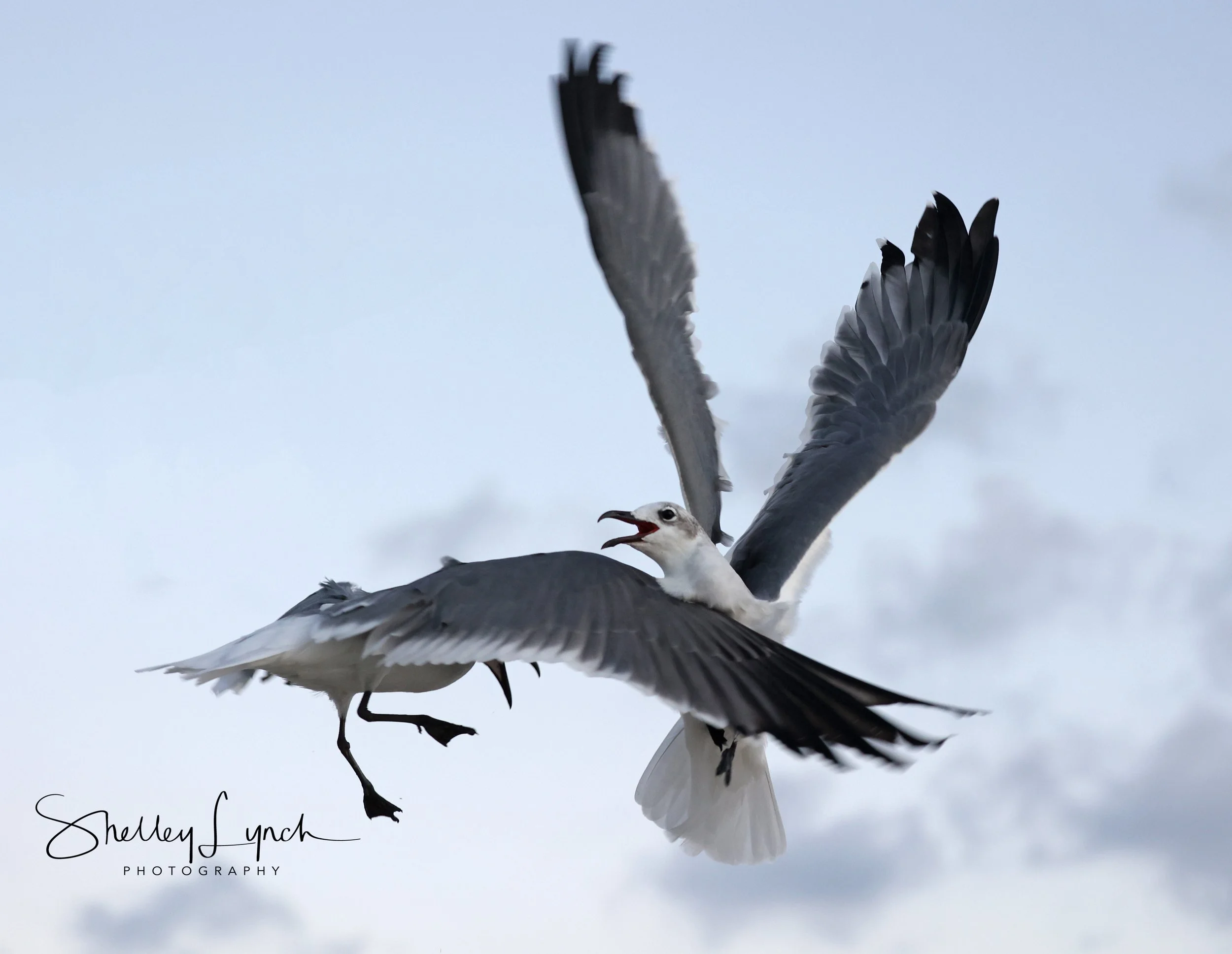 The super cute flock of gulls flew in hot and chatty. Until today I hadn’t seen any accidents on seagull street. (Technically it’s called Laughing Gull street)