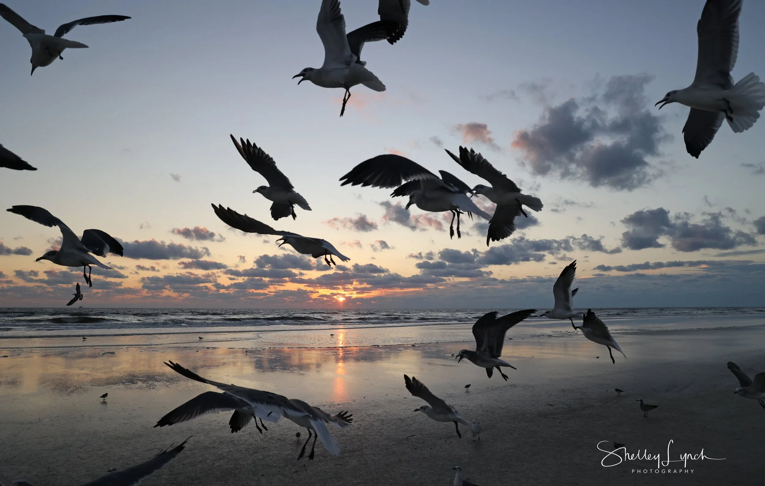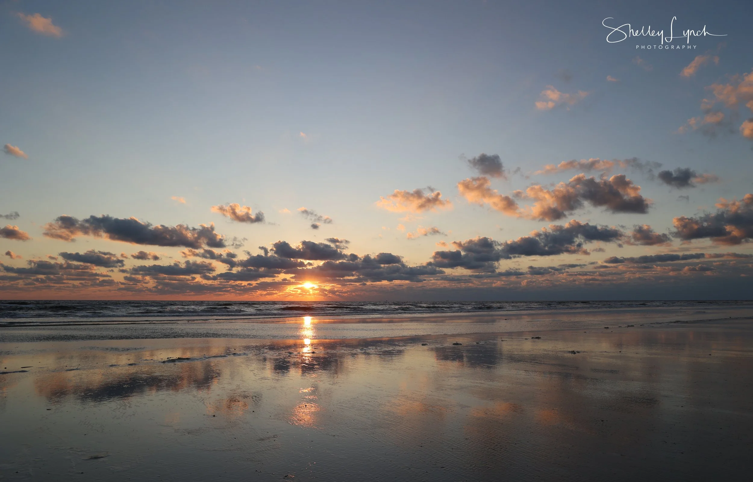 Mother Nature used low tide to bring us a reflective sunrise. The mirror image of the fluffy cotton ball clouds floating along was truly breathtaking.