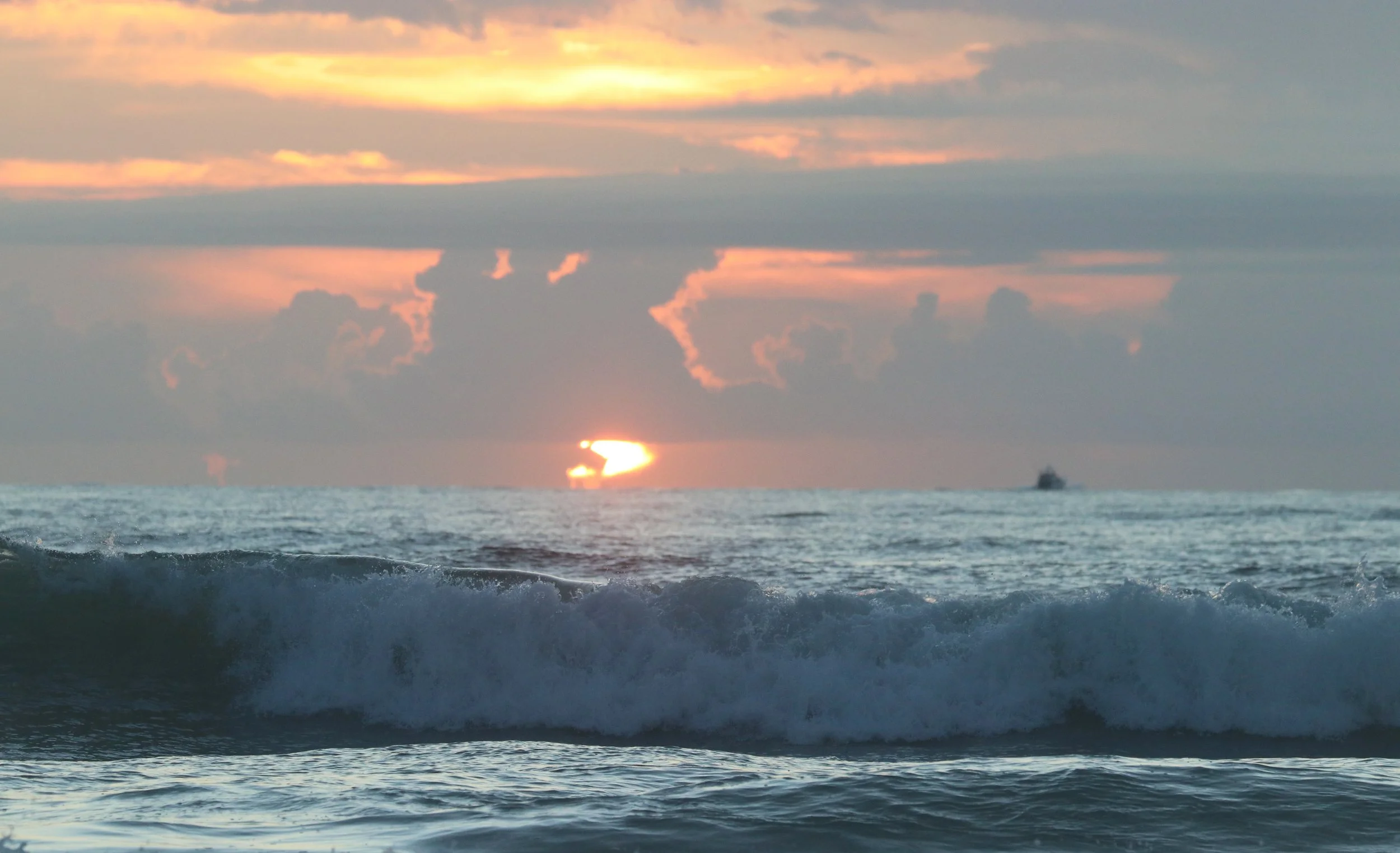 Inhale, Exhale, Repeat. As my feet hit the sand the first thing I noticed was the calm ocean. Waves started to roll in as the sunrise approached. Rays of light streamed from behind the beautiful cloud formations adding to the beauty of the morning.