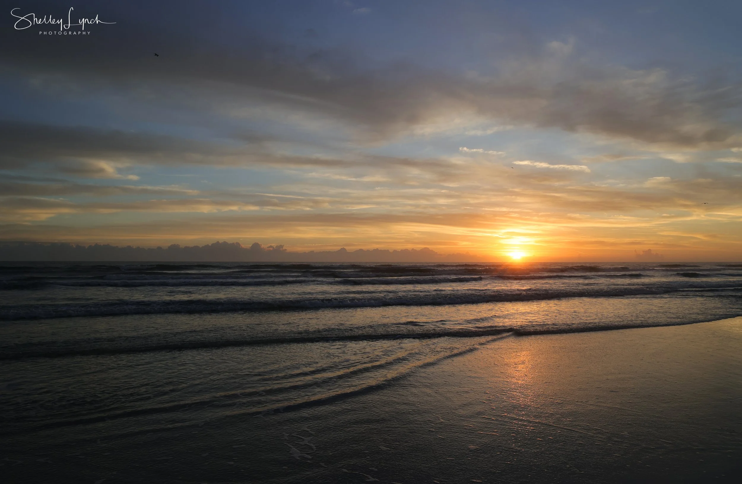 Mother Nature used her swirly paint brush giving us wispy clouds to soak up the array of colors. The breeze was cool and damp which felt good in my lungs.