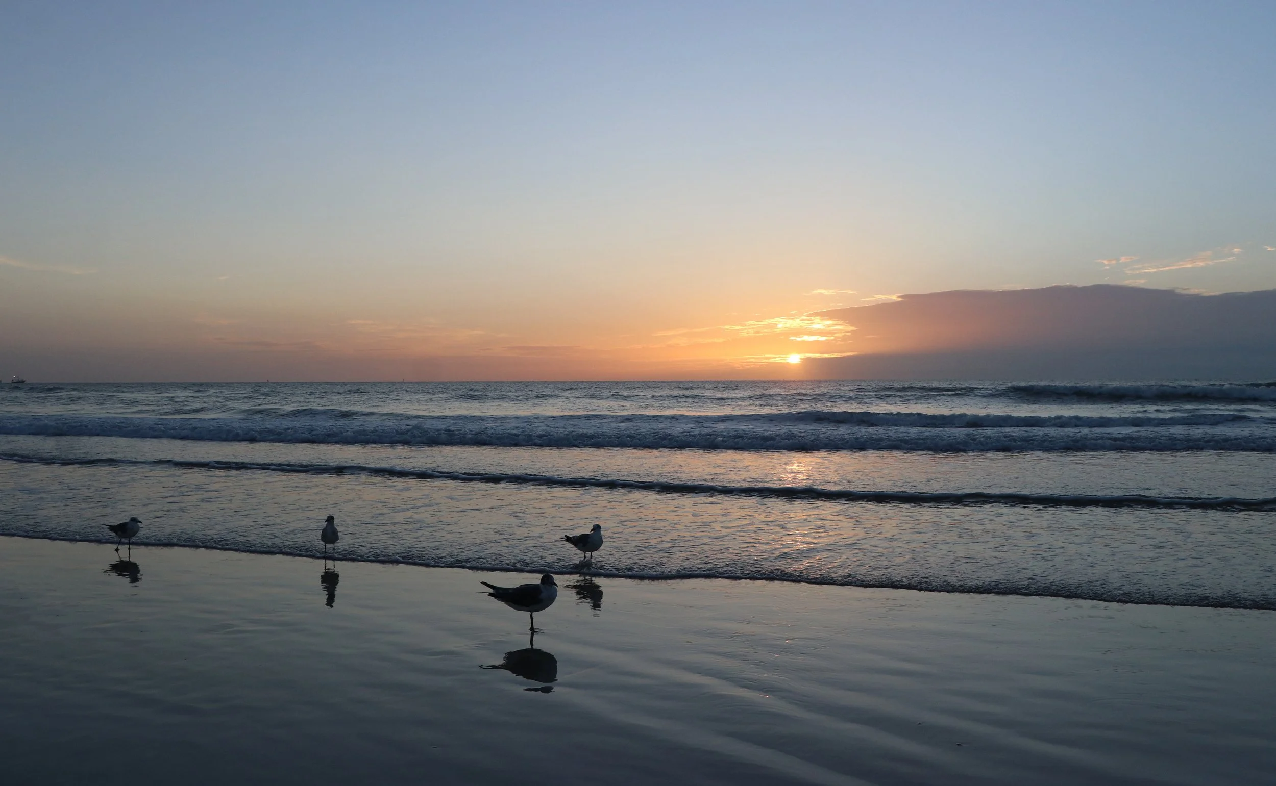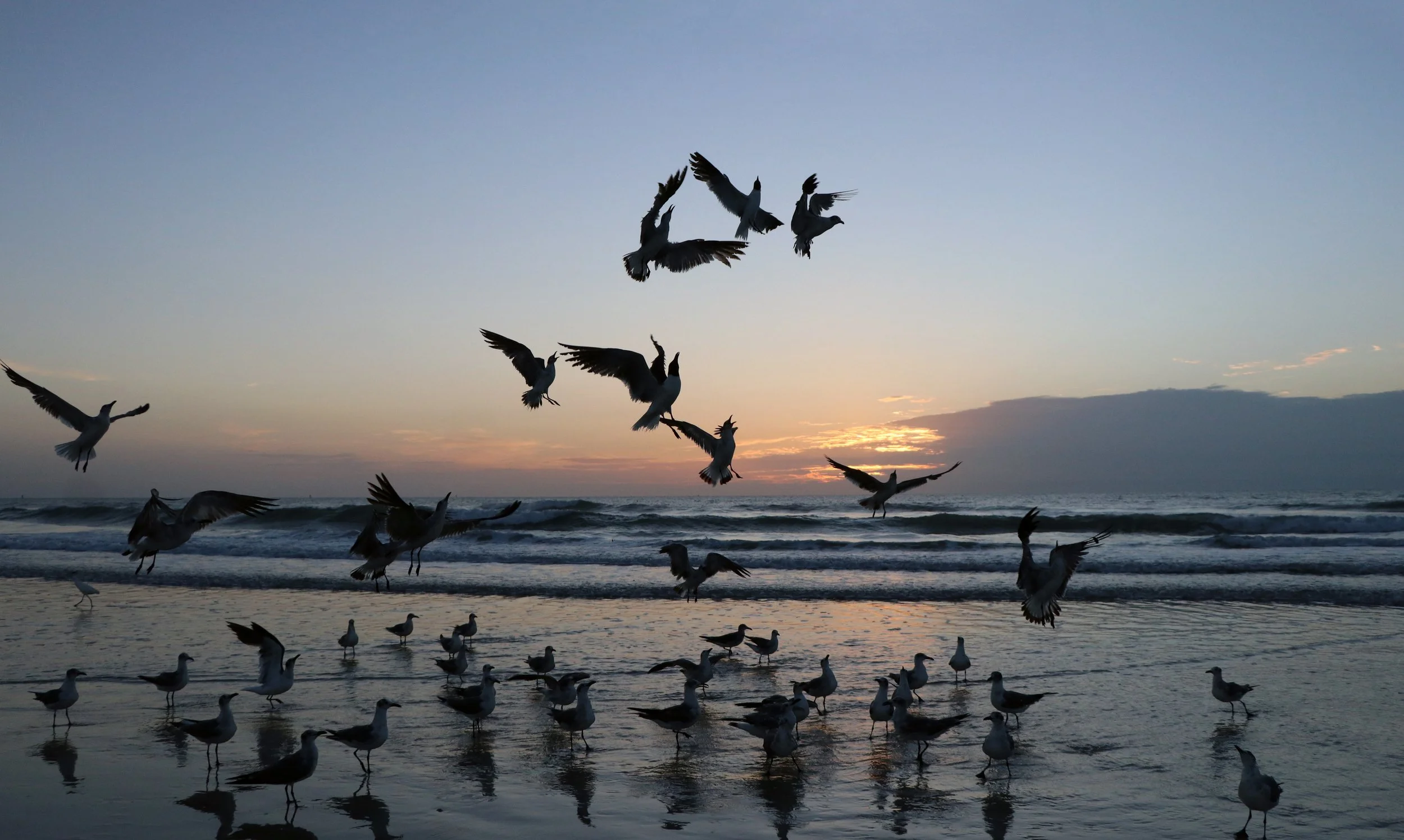The flock of seagulls flew in hot and chatty today. They were extra frisky, playing in the water as the waves rolled in. They always seem to be able to express themselves with passion.