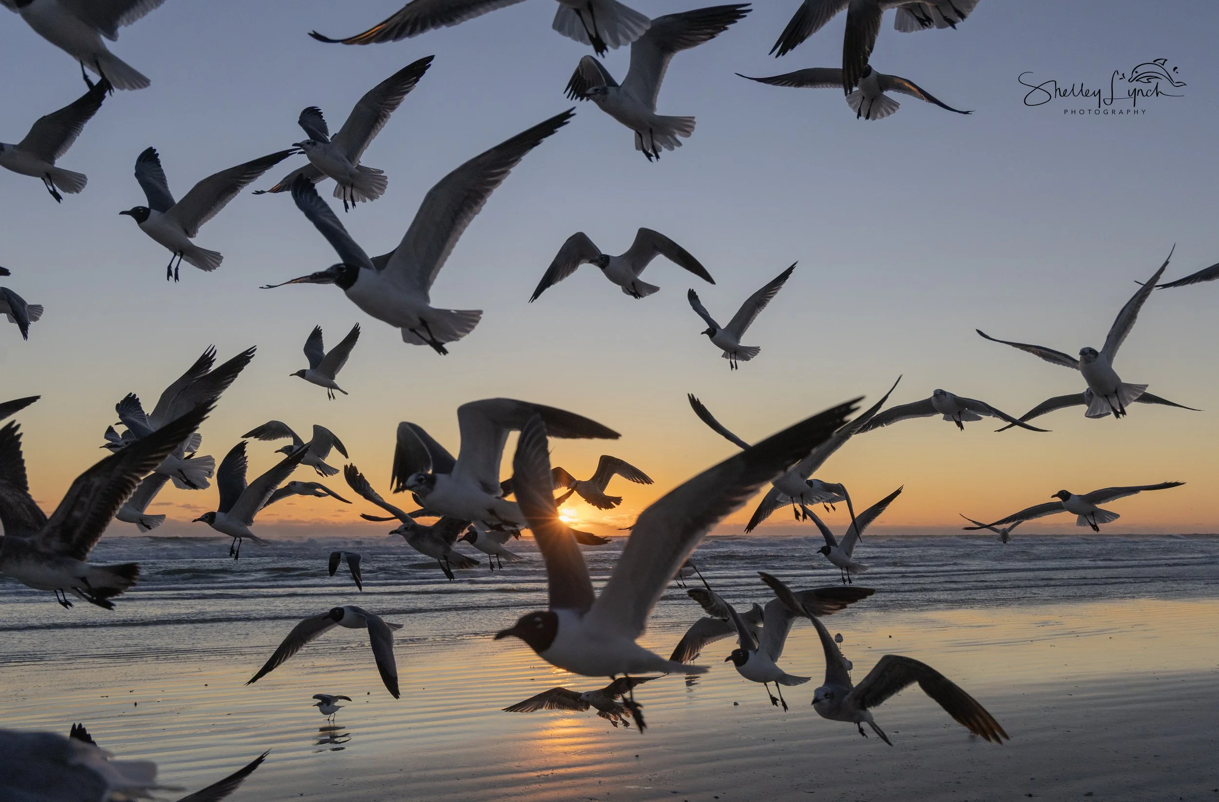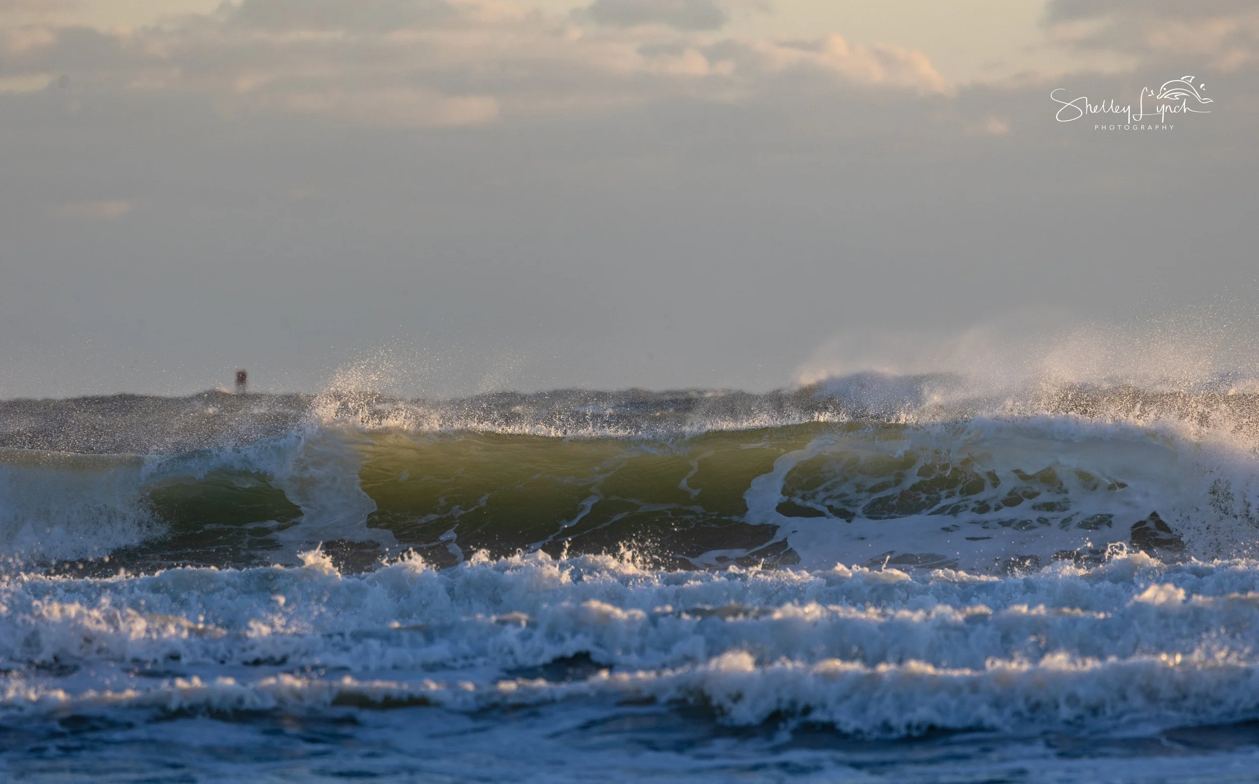 Huge waves rolled toward shore as the wind lifted their tops, sending salty spray into the air. Even with the cooler temperatures, a small flock was ready for bath time — determined and playful.