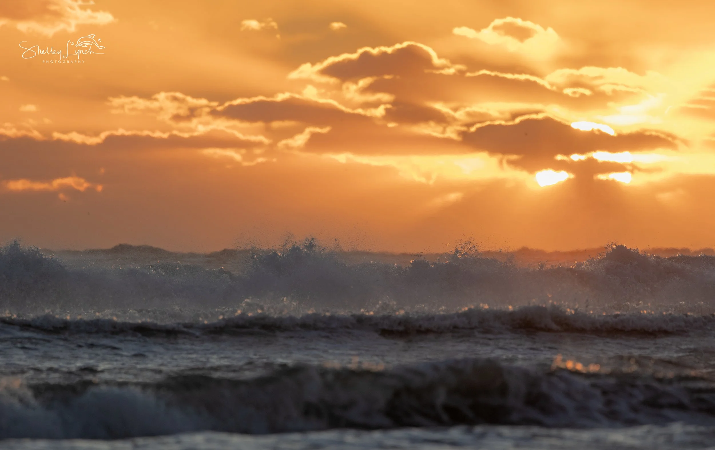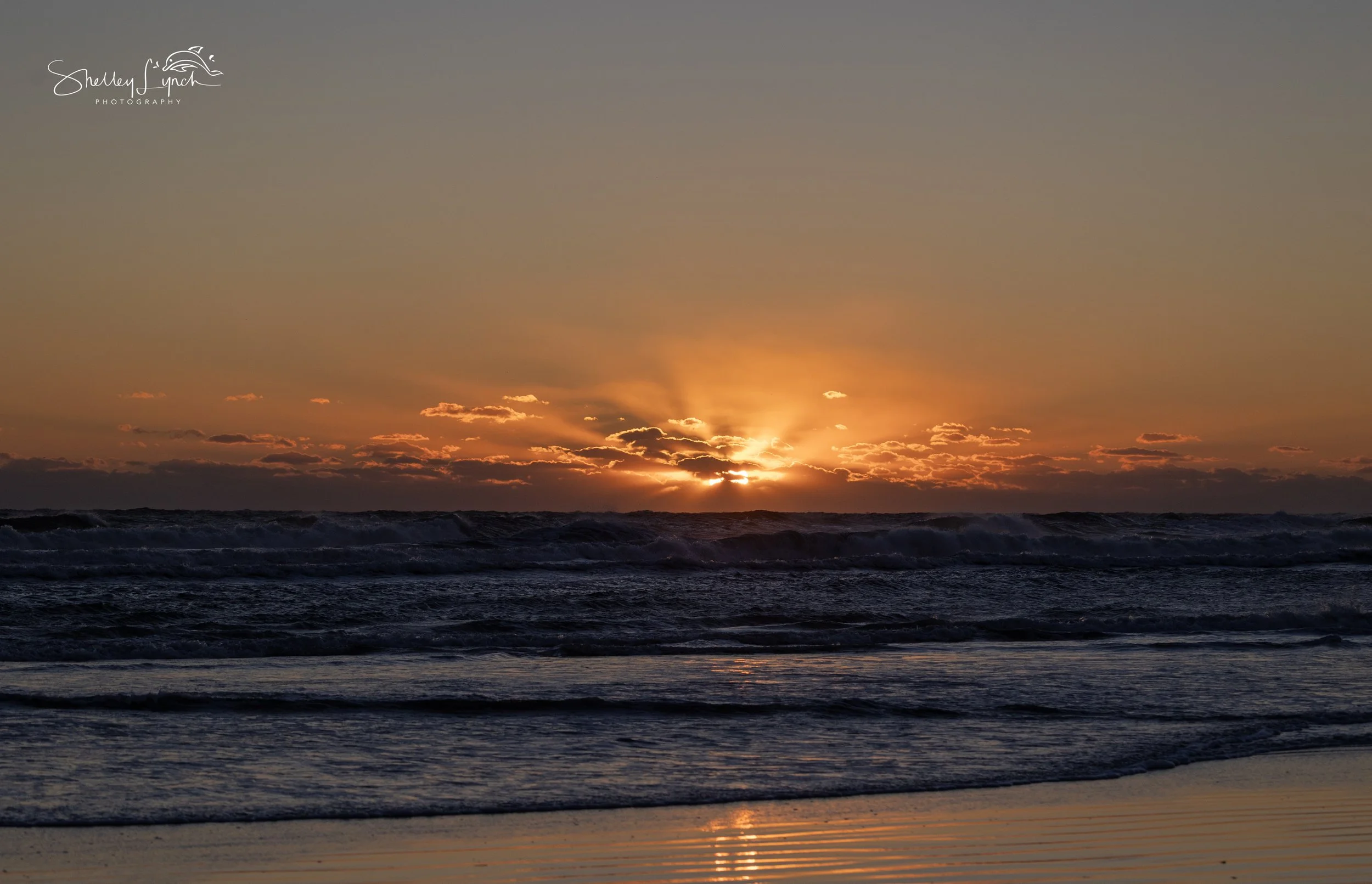 When the sun rose, it nestled into the clouds, sending rays of golden light streaming across the sky. The ocean soaked up the sparkles, looking like golden diamonds dancing on the surface.