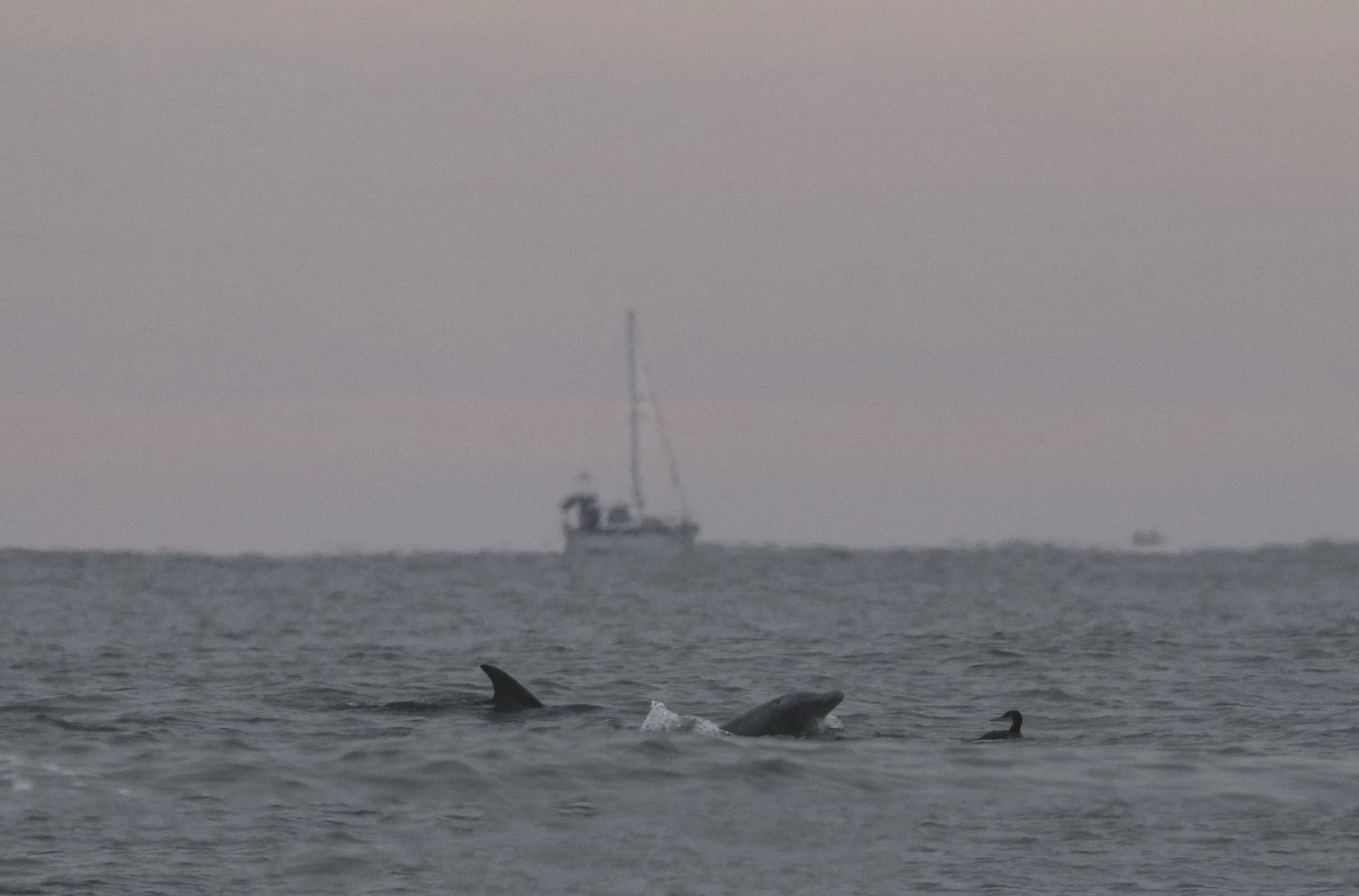 The sun only came up for a few minutes before heading behind the cozy clouds. Dolphins were everywhere, far off leaping out of the water and closer to shore surfing the waves, grabbing snacks and kisses. They were having so much fun!