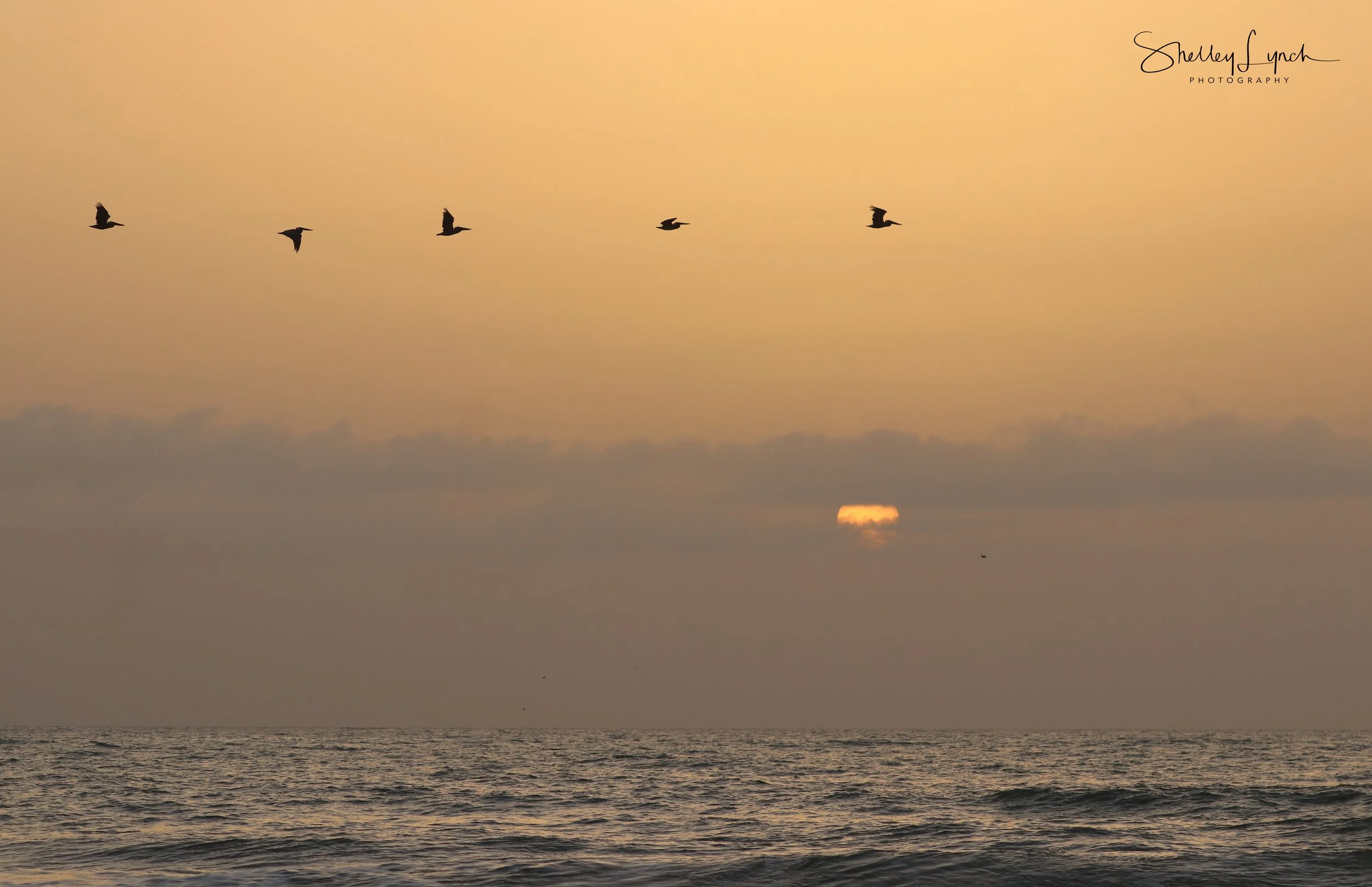 A heavy layer of fog enveloped the shore giving us a cozy sunrise to start the day. The pre sunrise was almost black and white swishing to a muted gold and pink when the sun came up to greet the the day.