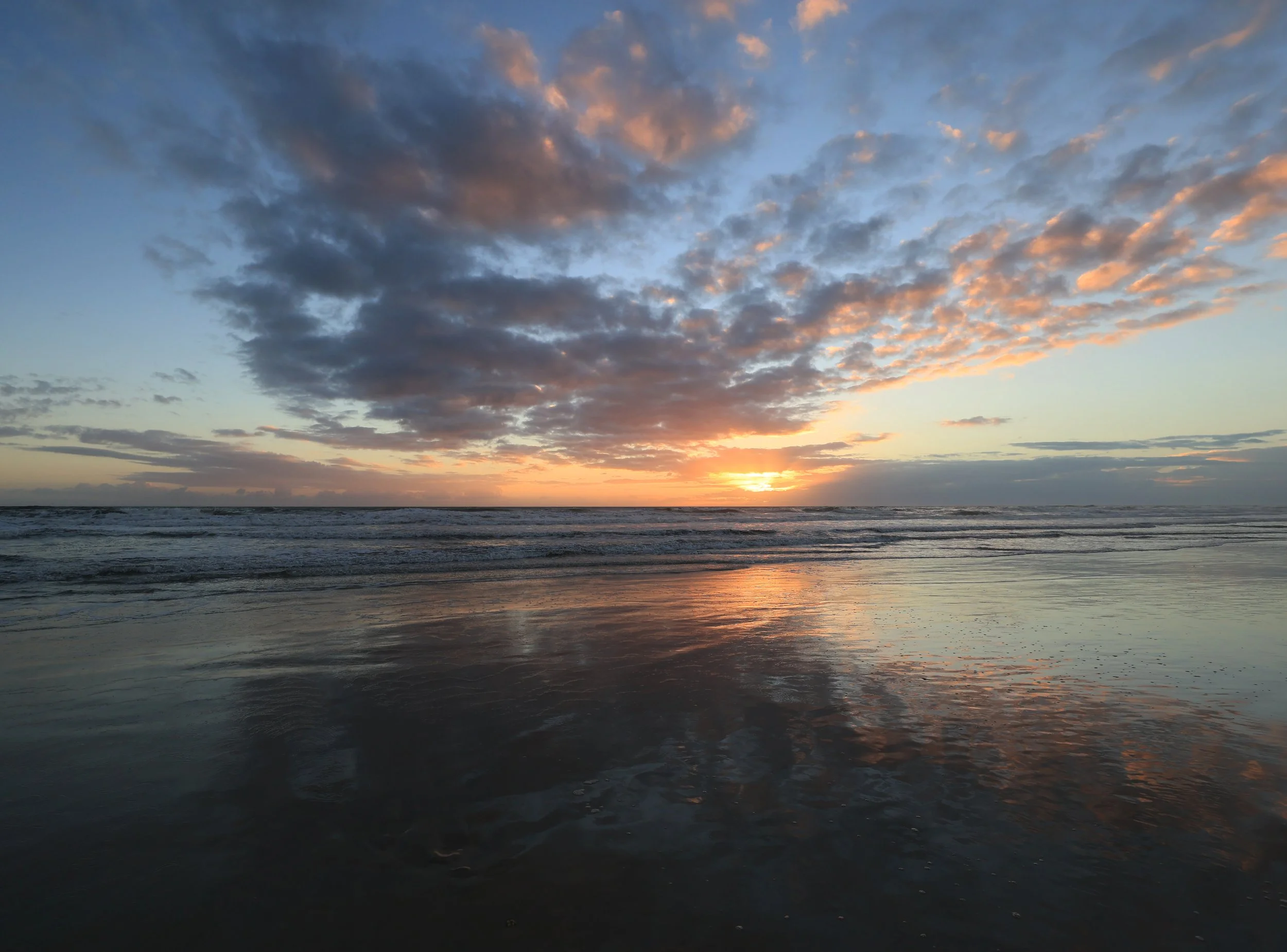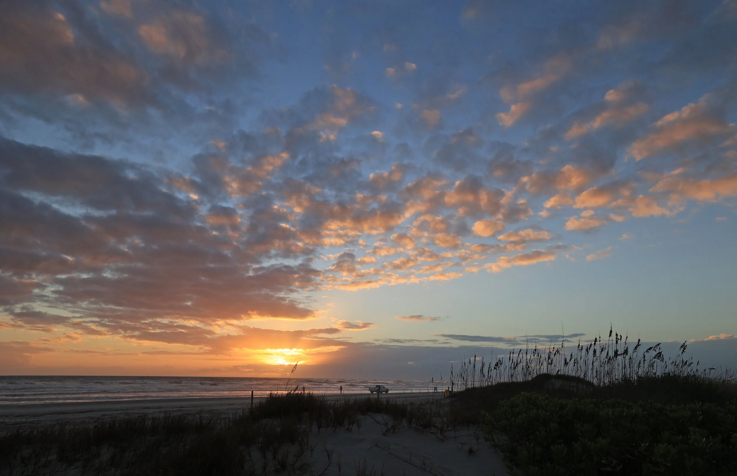 The sunrise was a slow cooker this morning but when it came up, it was a stunner! The fluffy clouds stretched across the sky as they soaked up the pastel color show. The loud ocean was churning with intensity tossing salty sea foam in the air.