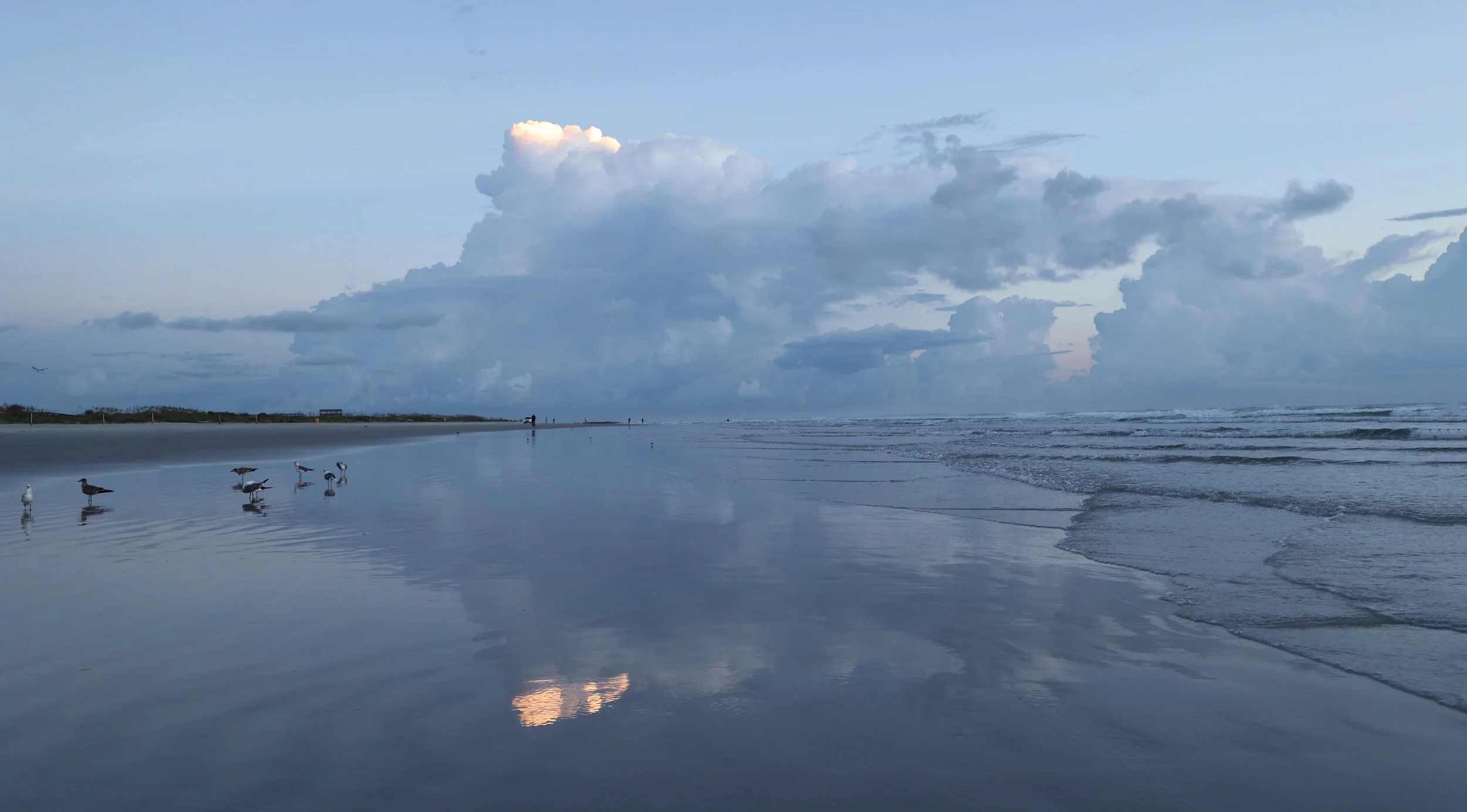 Ahhhhhh a sweet and salty moody bluesy kind of sunrise. Huge fluffy clouds with beautiful lighting lined the horizon. The flock of seagulls flew in for some bath time and connection. I really love this time together, it always feels special to be a part of their world.