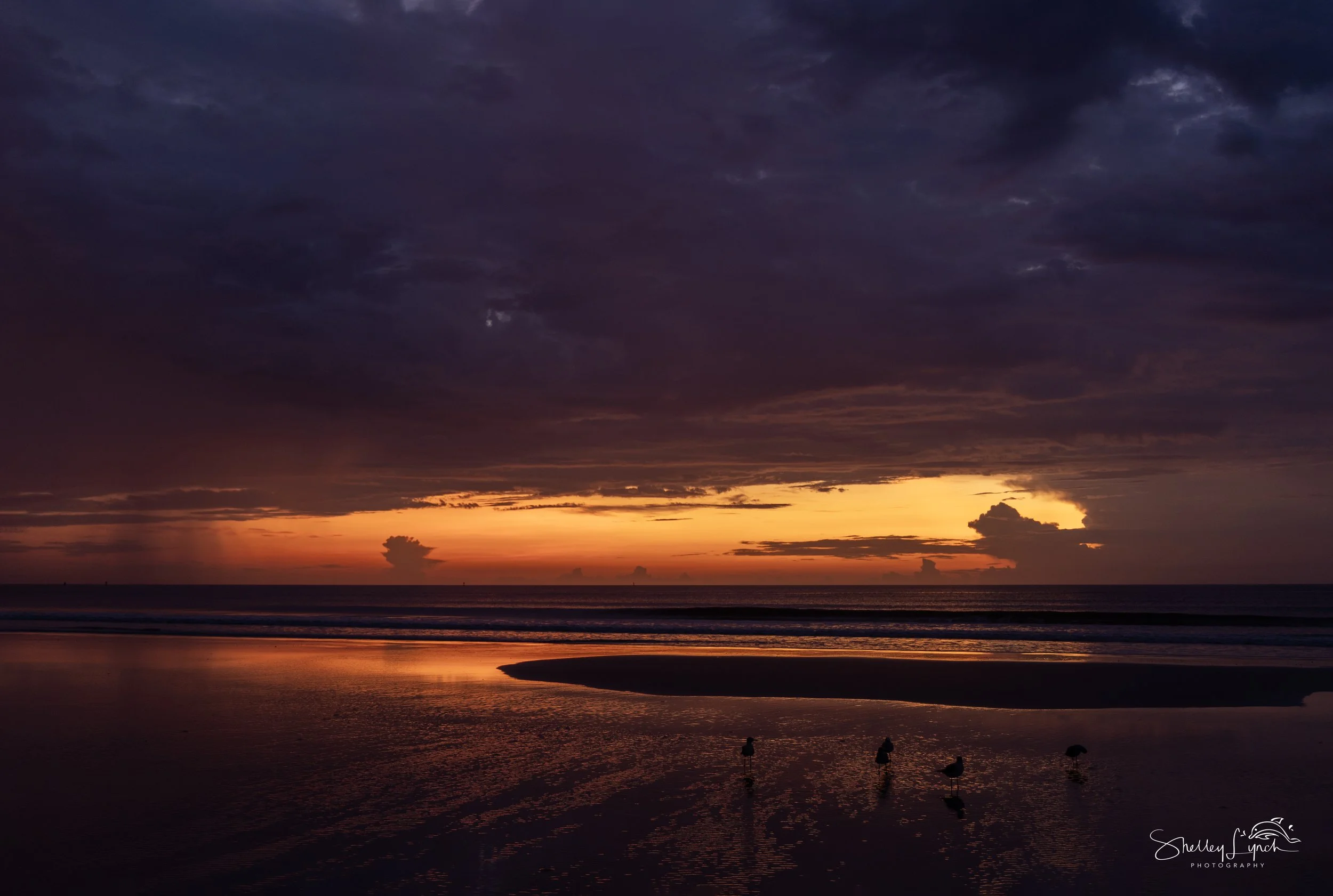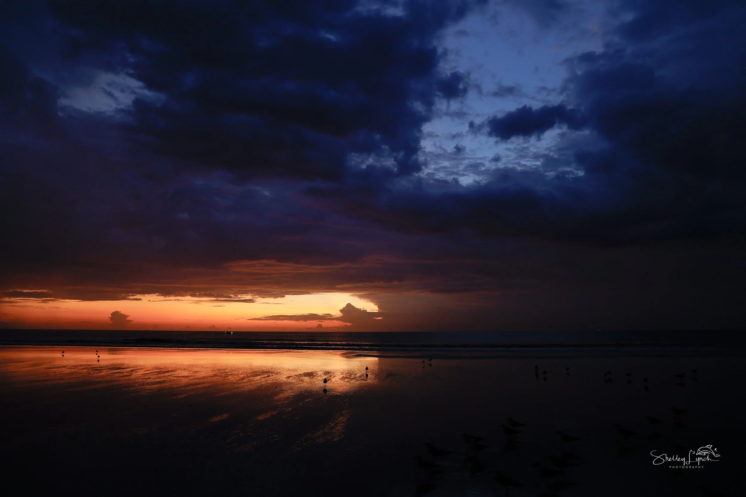 A huge flock of laughing gulls were at the edge of the calm ocean ready for bath time. With intense thunder and lightning over night they were extra chatty and a bit skittish.