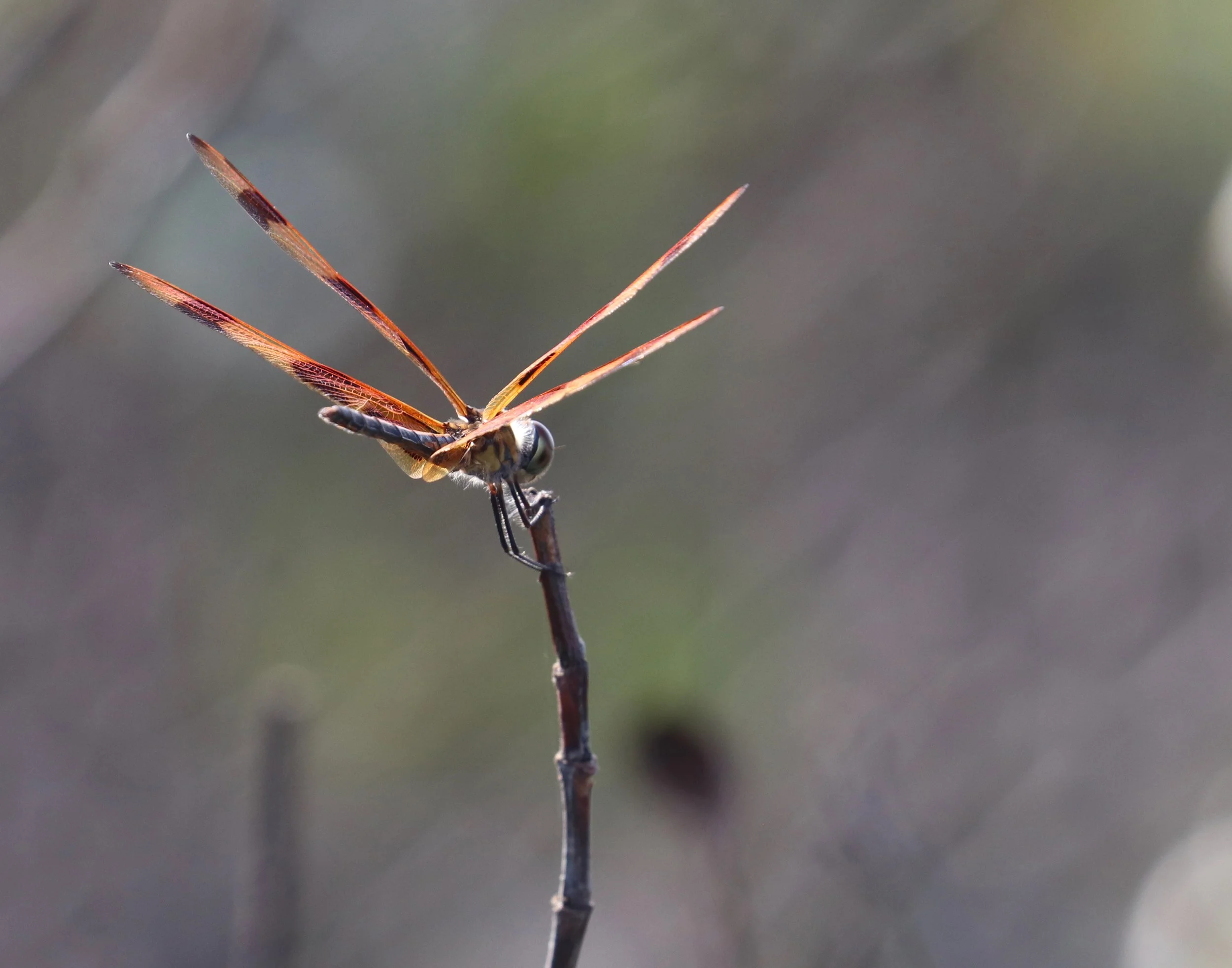 A gorgeous spring sunrise featuring a giant dragonfly cloud before the sun came up to greet the day. When I saw the cloud, I thought how great it would be to see a real dragonfly too....and one showed up! It had cool stripes just like the sun.