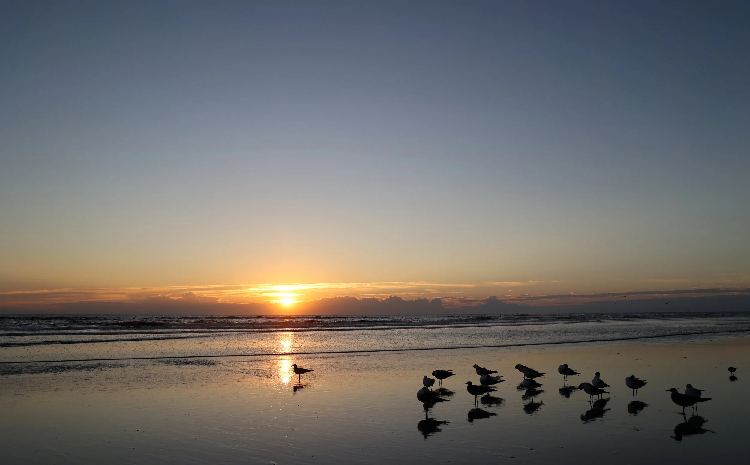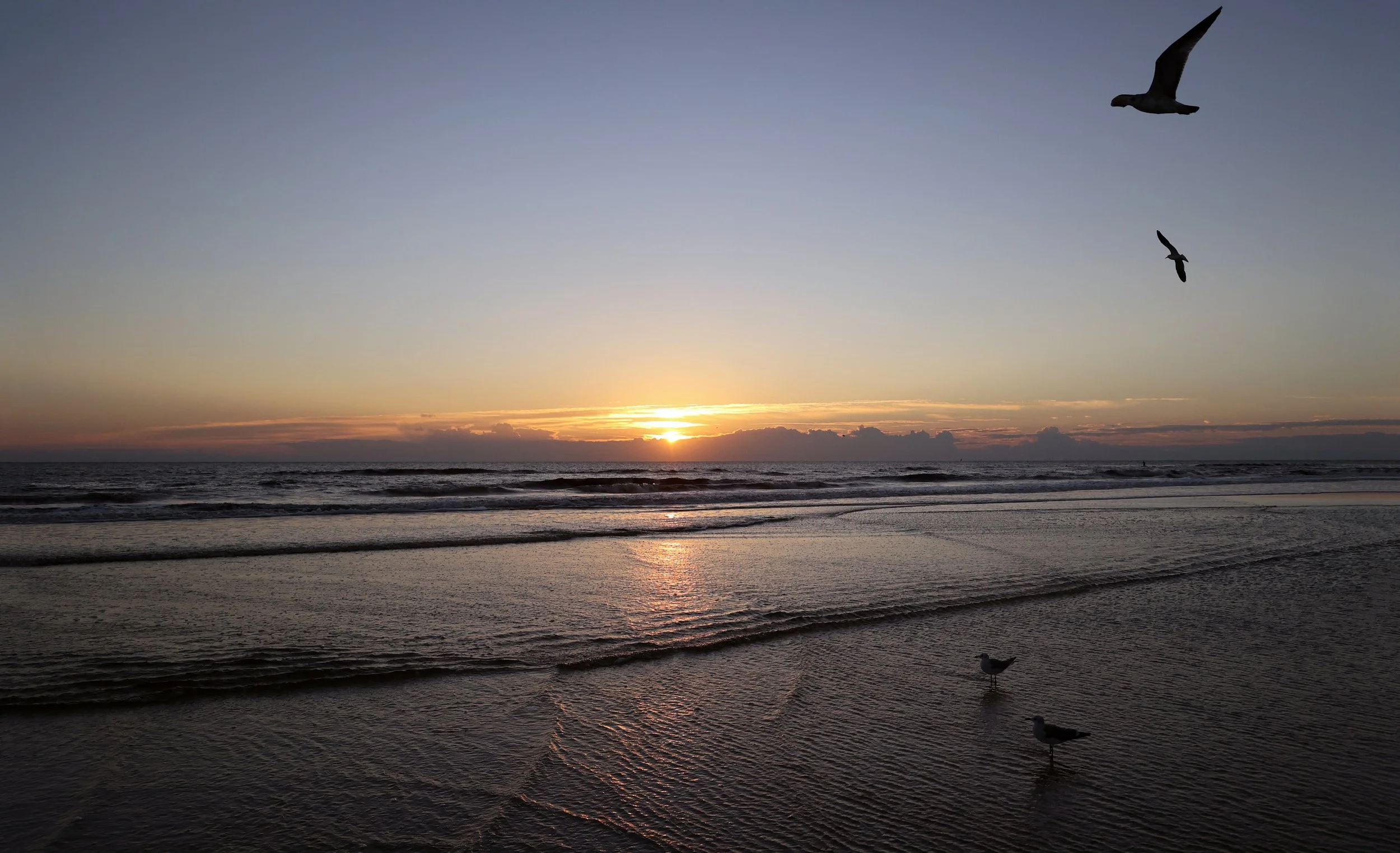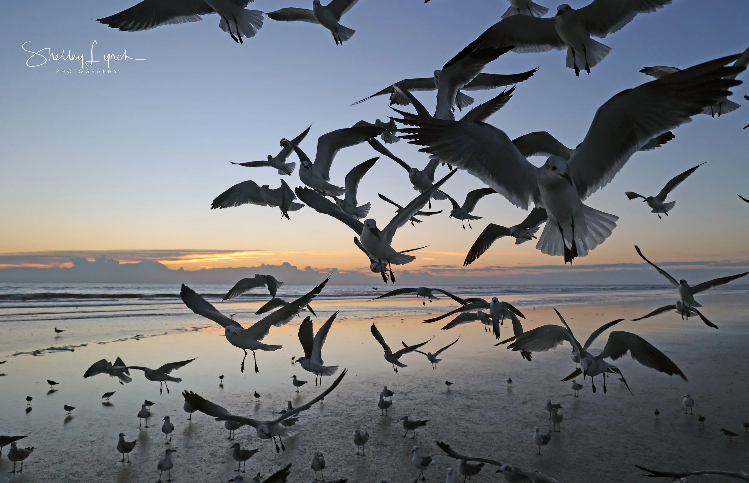 Mother Nature bought us a lovely breezy sunrise using her gold color palette. The flock of gulls were already at the edge of the water when I reached the beach.
