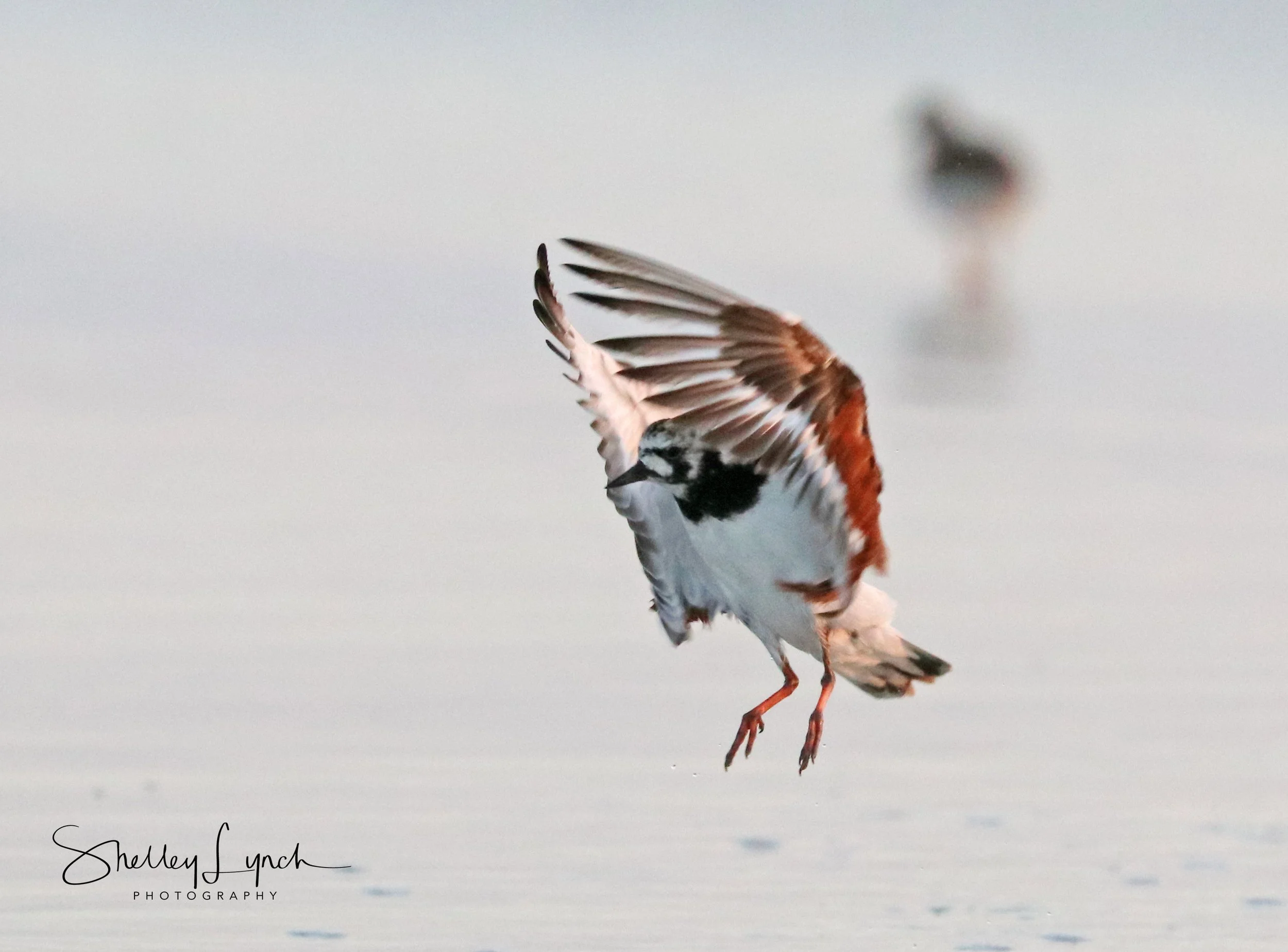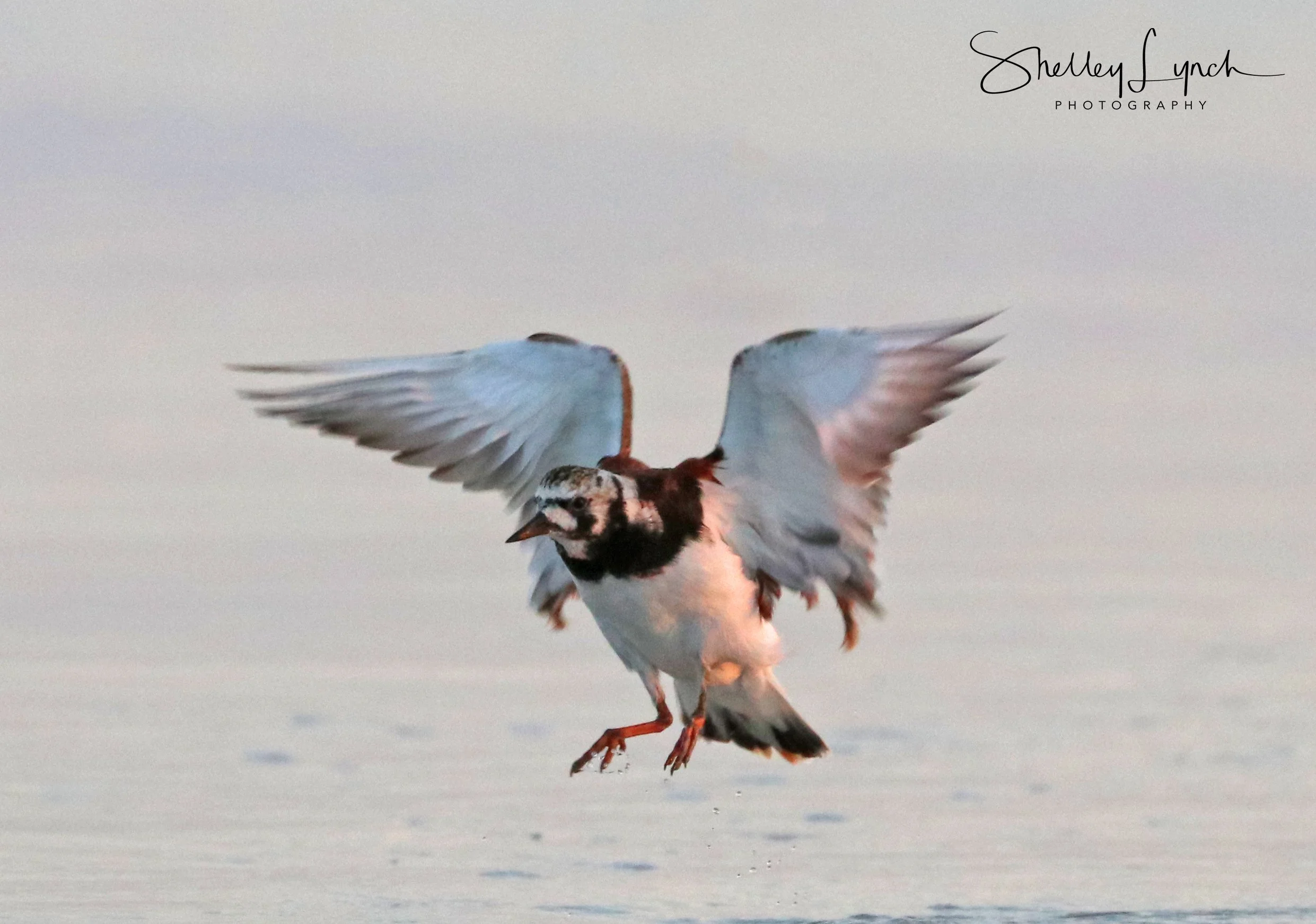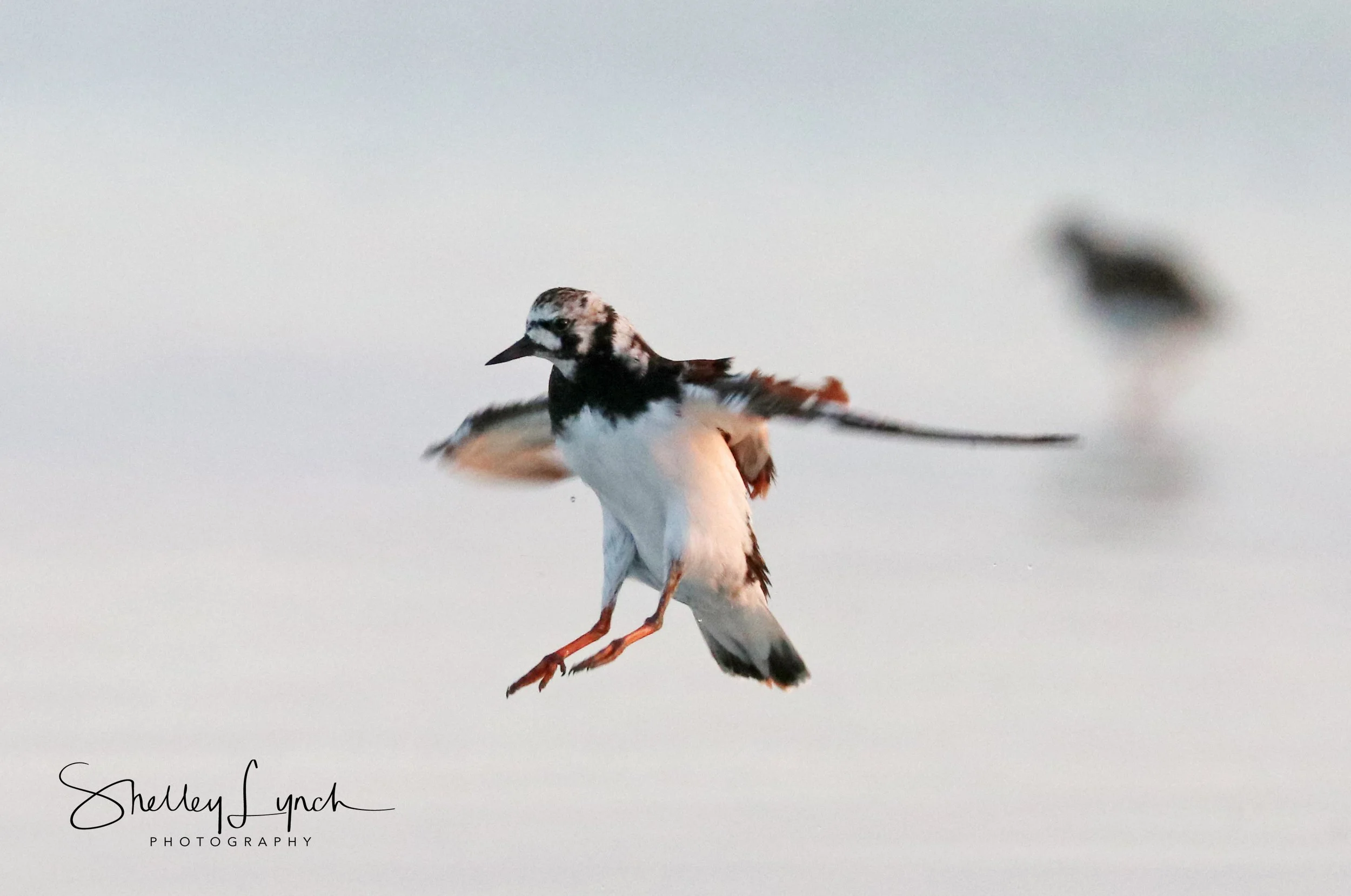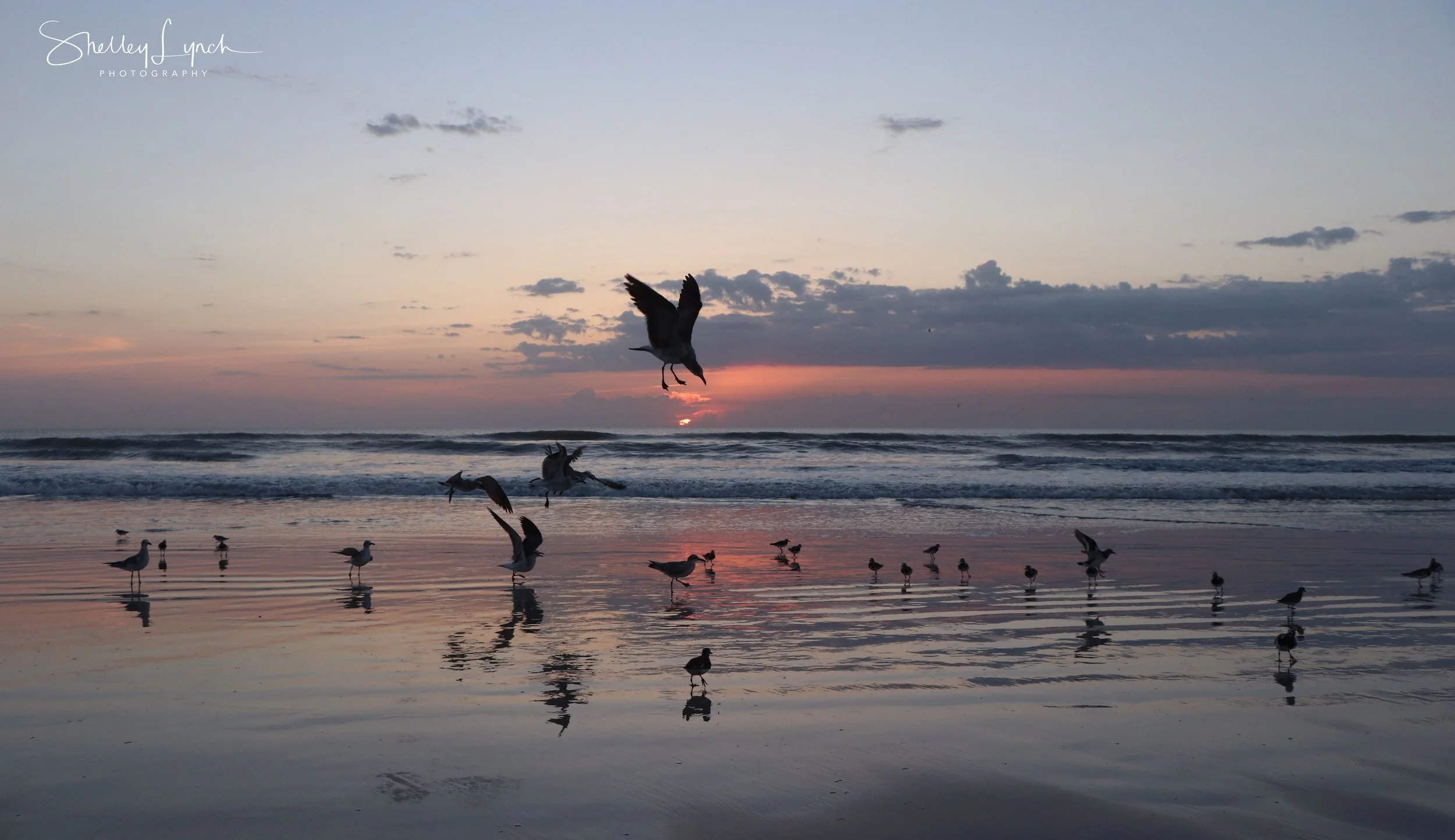 It was a stunner of a sunrise with a light breeze, calm ocean and lovely pretty in pink color pallette. A few seagulls flew in feeling frisky. One looked like she was walking on sunshine full of joy. A large flock of Ruddy Turnstones flew in feeling happy too!
