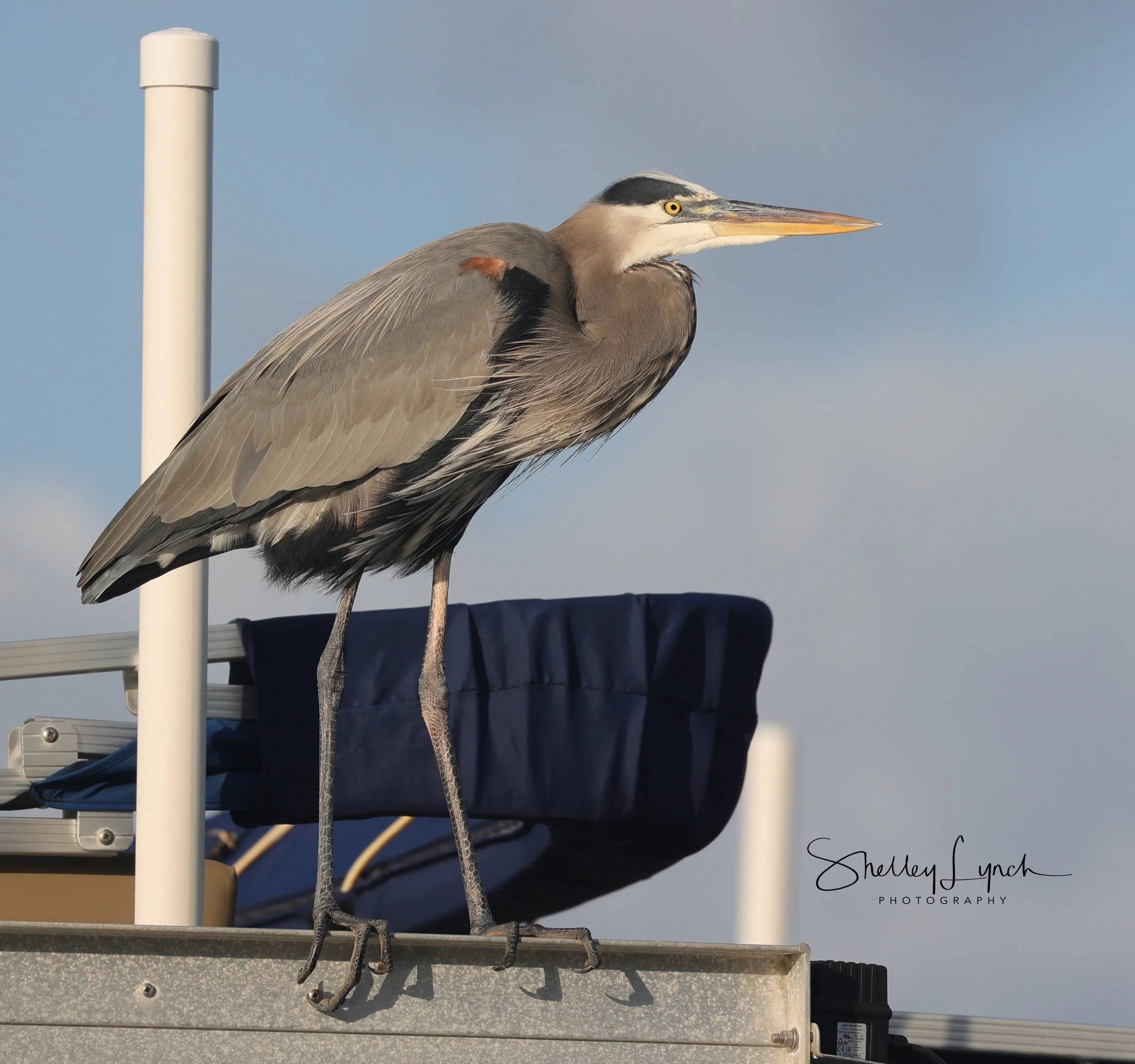 After sunrise I was surprised to see a blue heron hanging on Ozzie and Harriet’s boat. Ozzie and Harriet are a lovely pigeon couple.