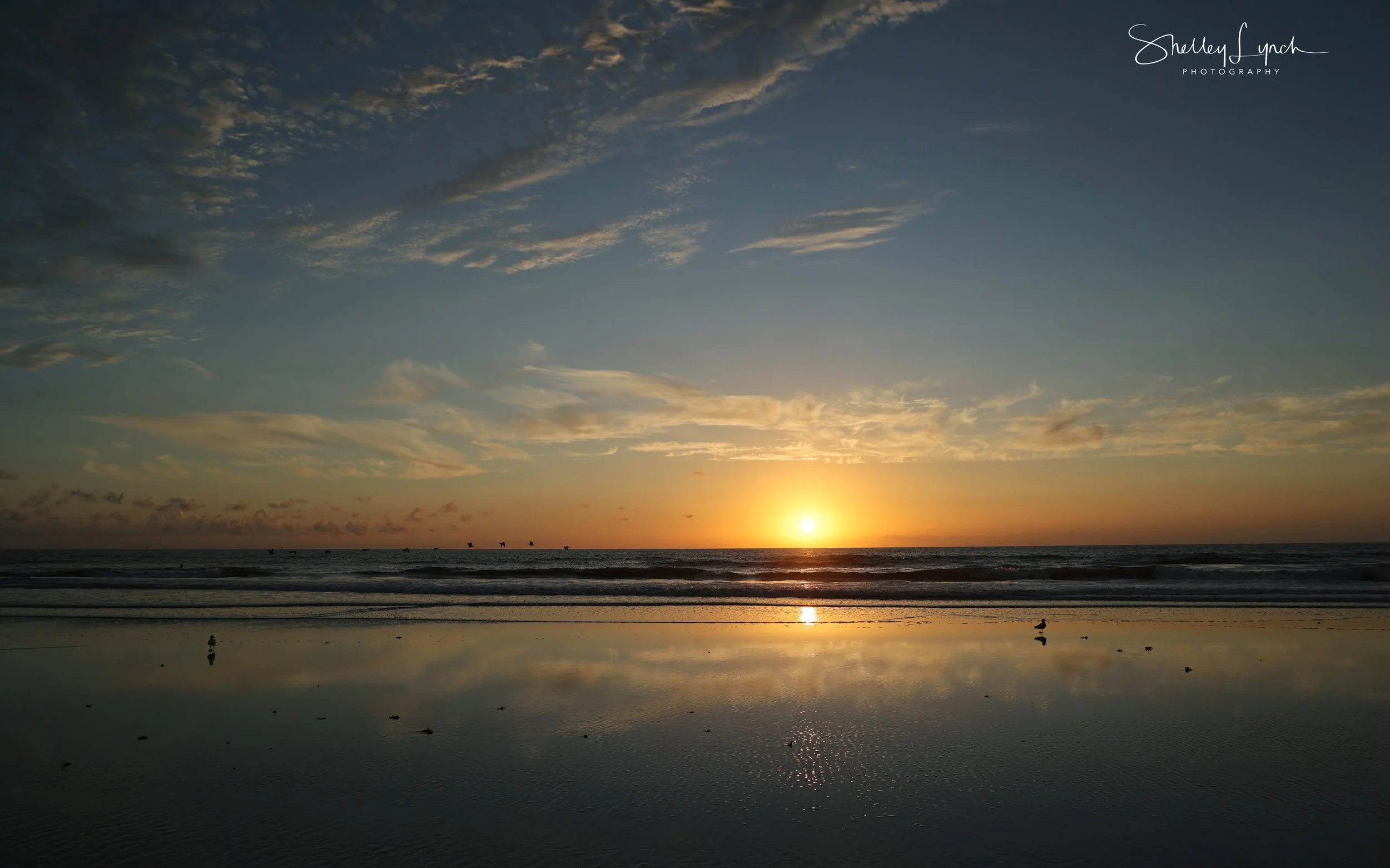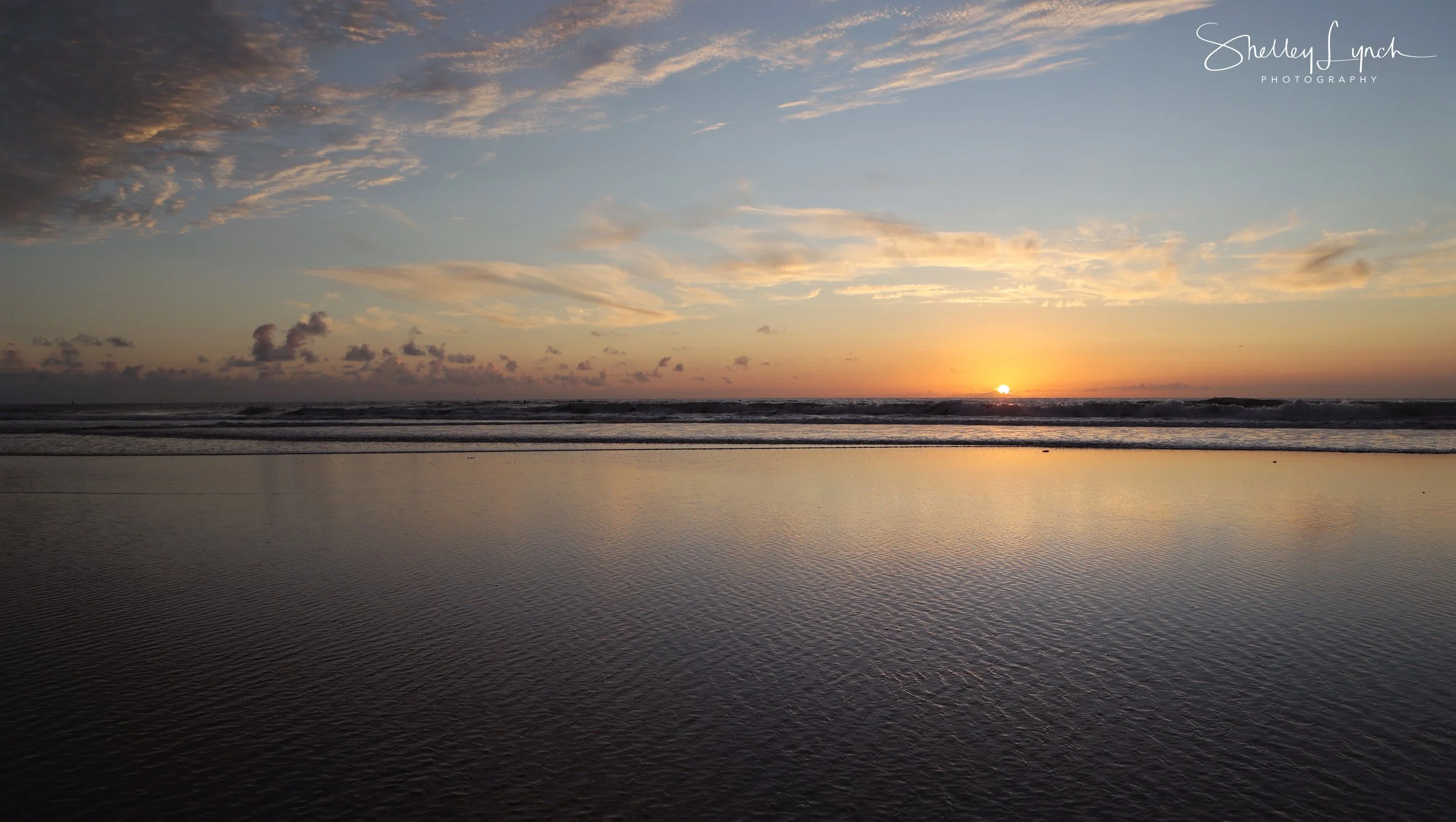 Ahhhh, a reflective sunrise with a ceiling of fluffy clouds soaking up the light. The pre sunrise color show started off purple then switched to pink and finally a golden glow.