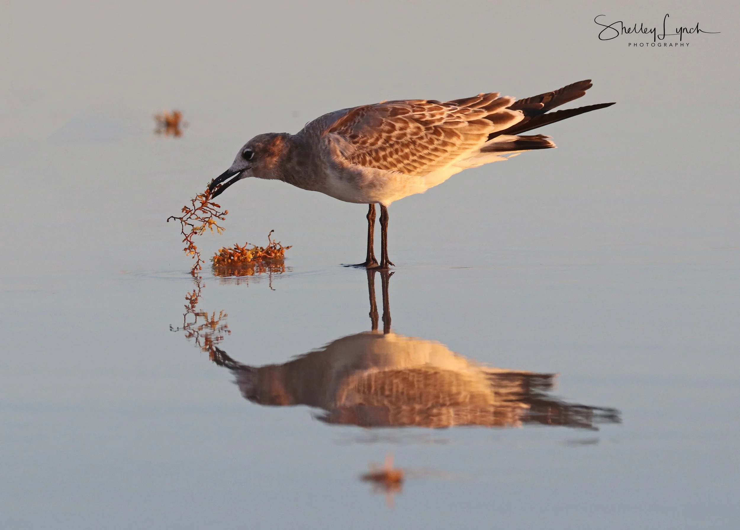 Another gull was playing with the seaweed saying, “Eat more veggies. A healthy diet will help you think clearly and help you feel healthier too!”