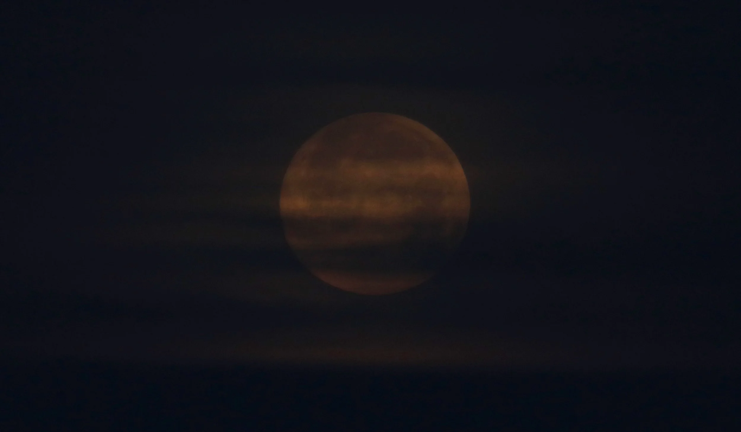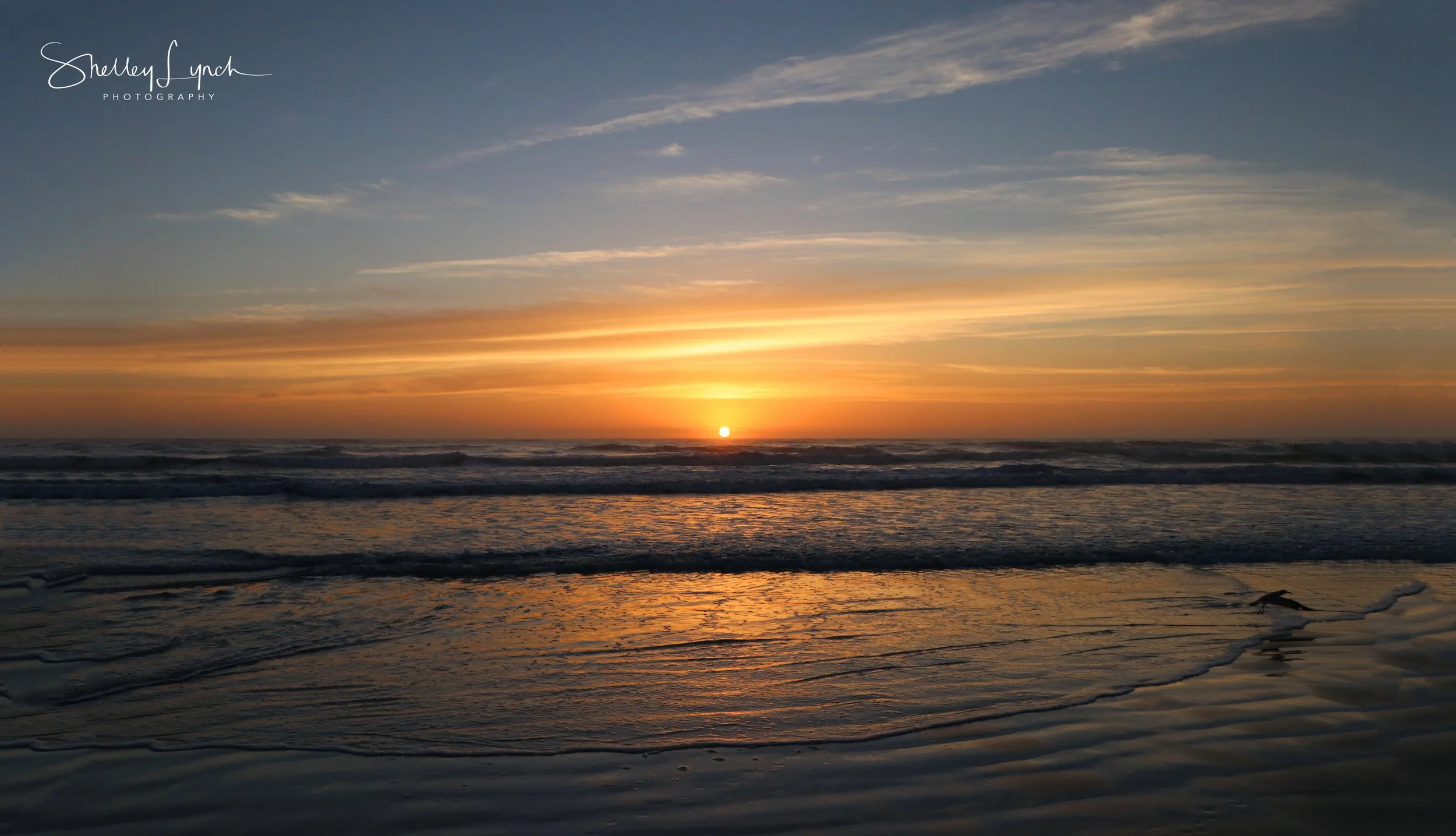 As the sun came up the powerful fun moon was setting surrounded by soft clouds. Wispy brush strokes created beautiful clouds across the sky adding to the serenity of the morning.