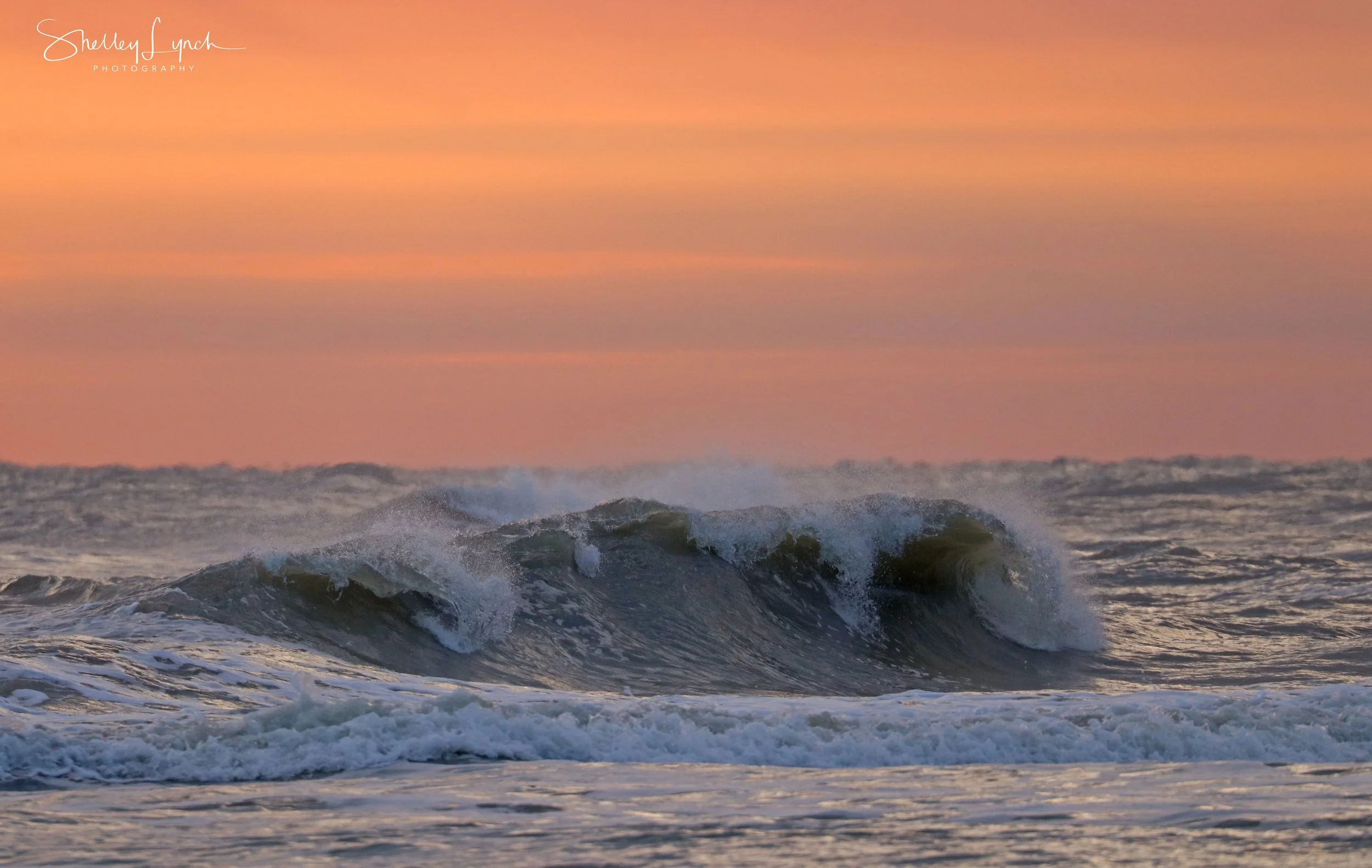 Mother Nature painted the sky with her pastel winter color palette. Gusts of wind blew the tops of the waves into the air filling the salty air.