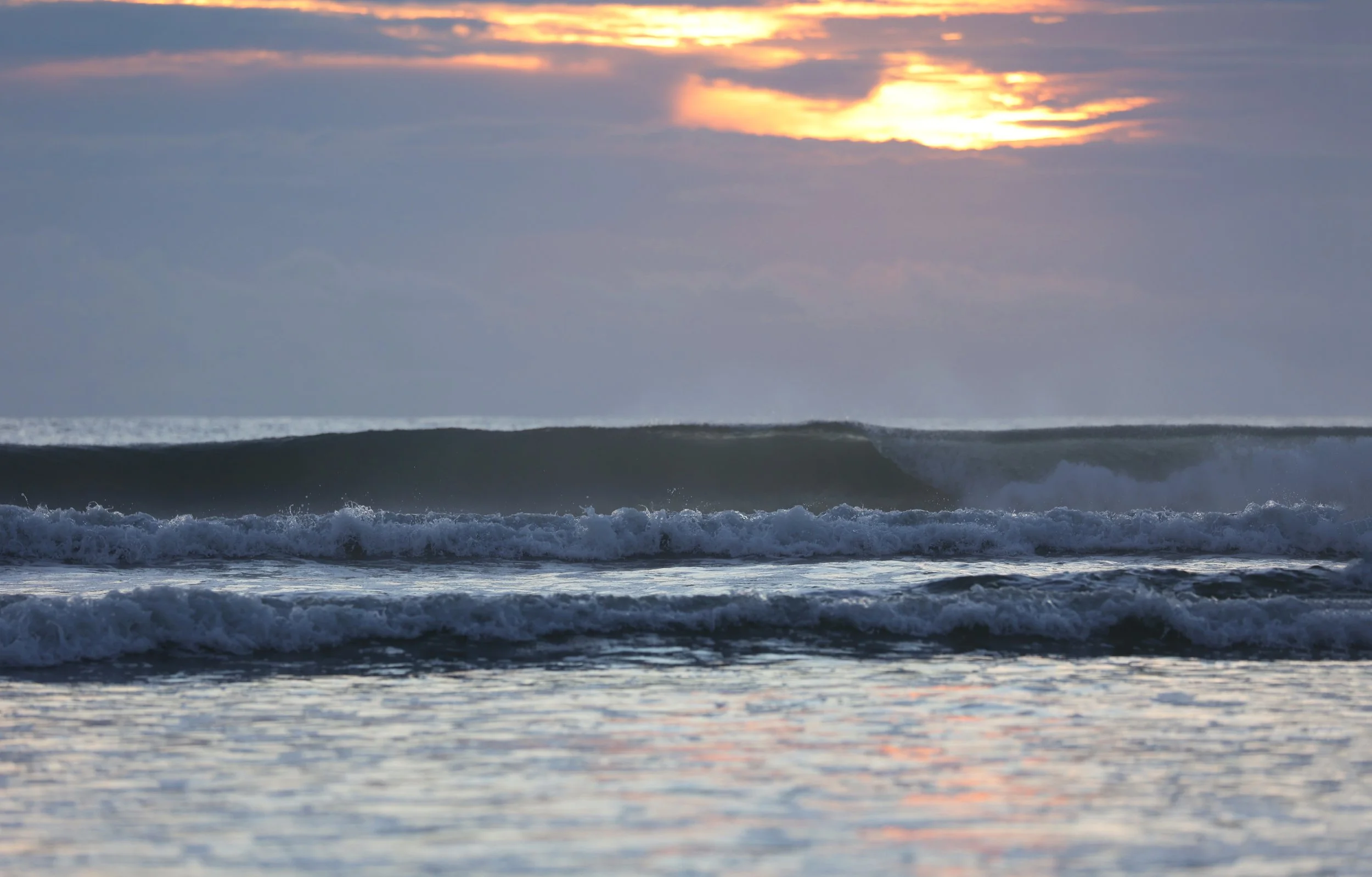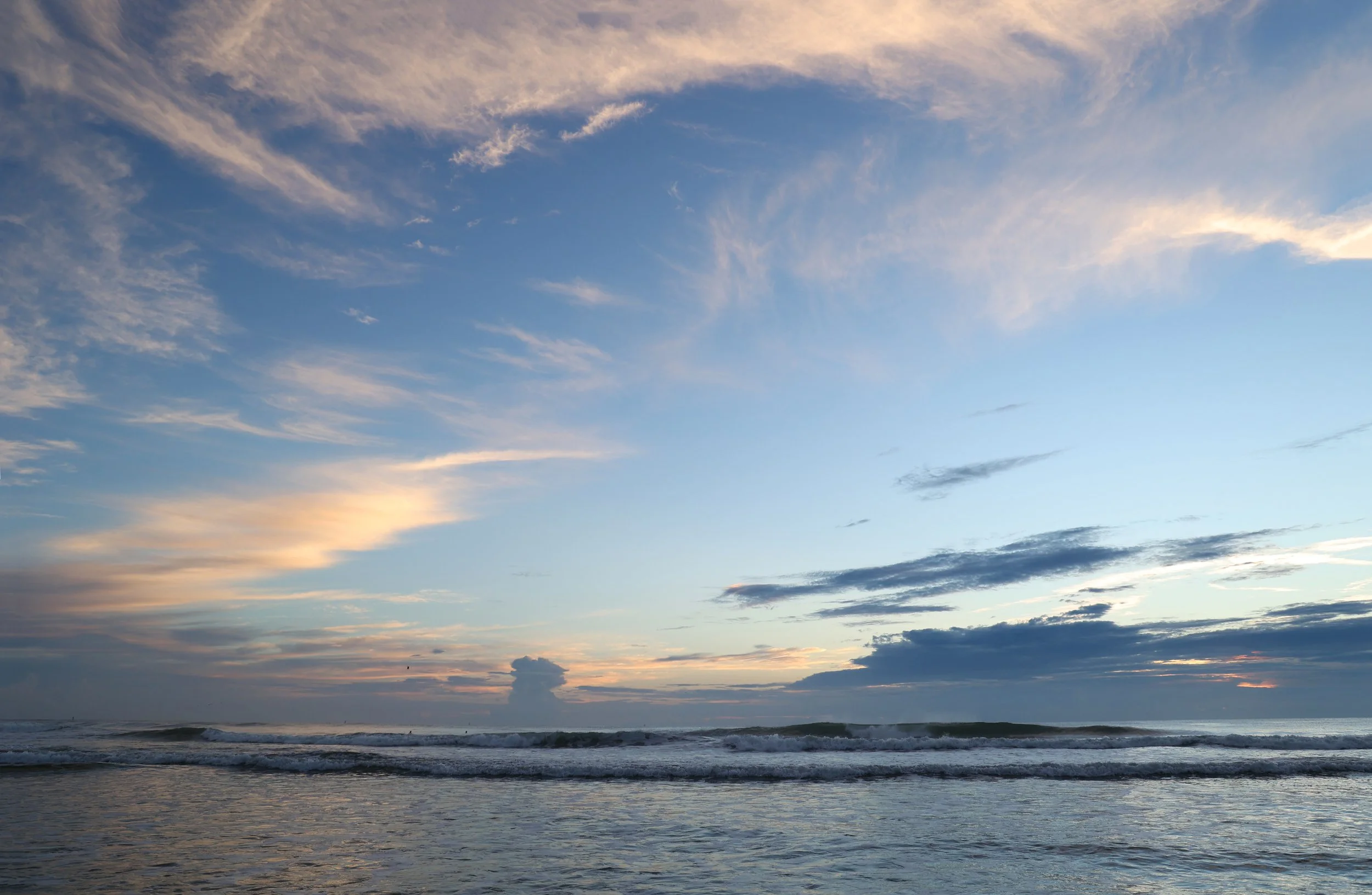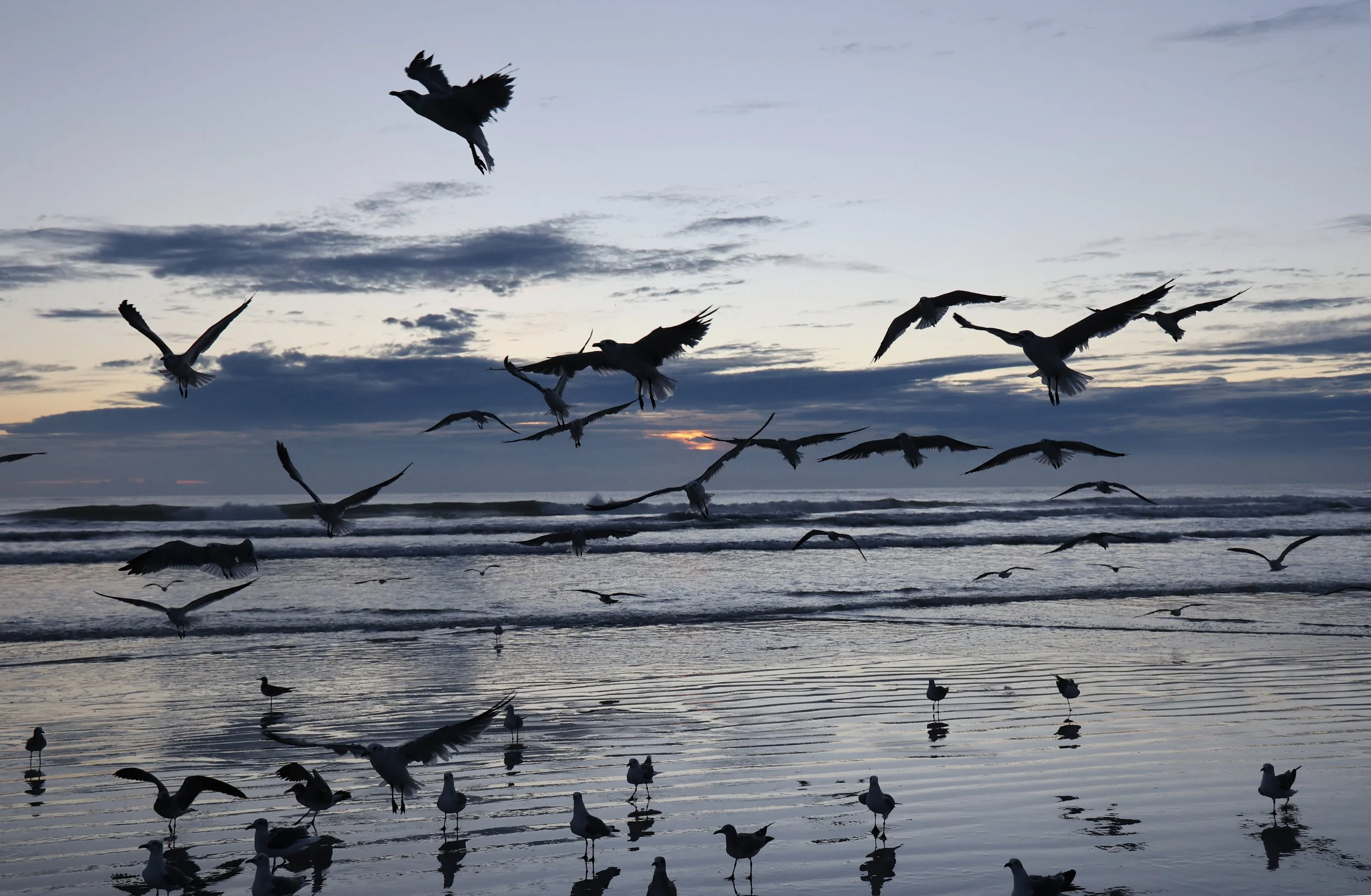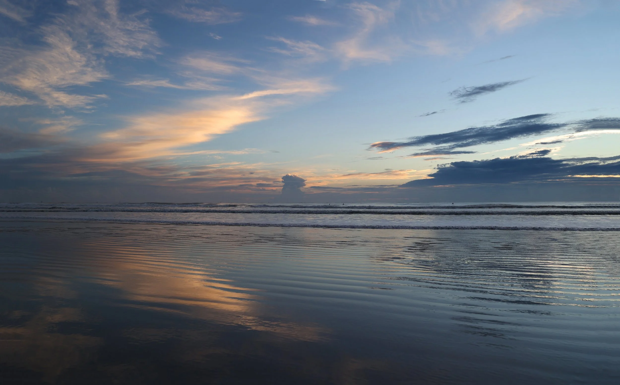 The sunrise felt and looked more like a winter with a moody blues color show. The sky reflected on the wet sand giving us an expansive feel.