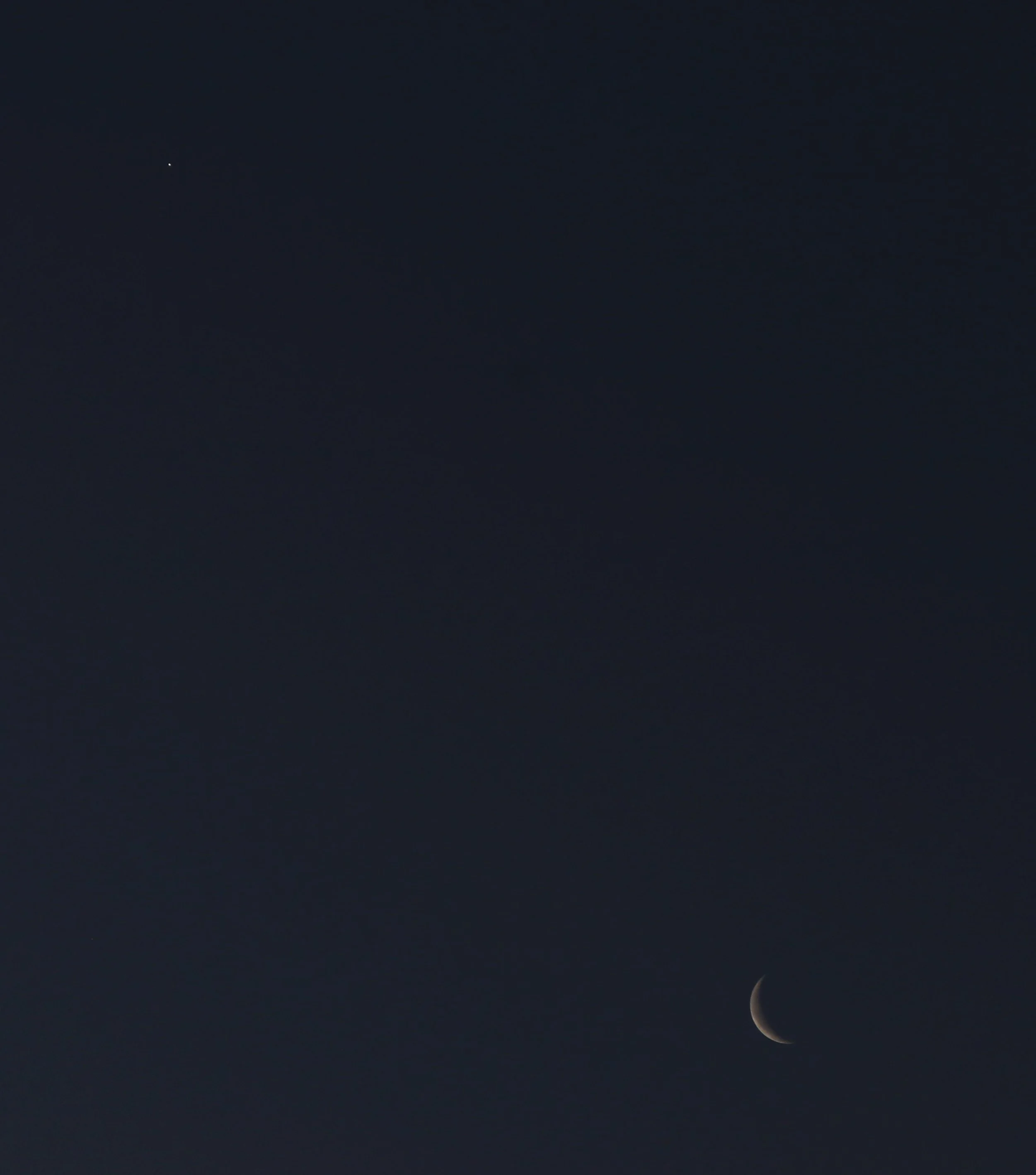 Almost new moon and Venus. Venus is the dot top left.