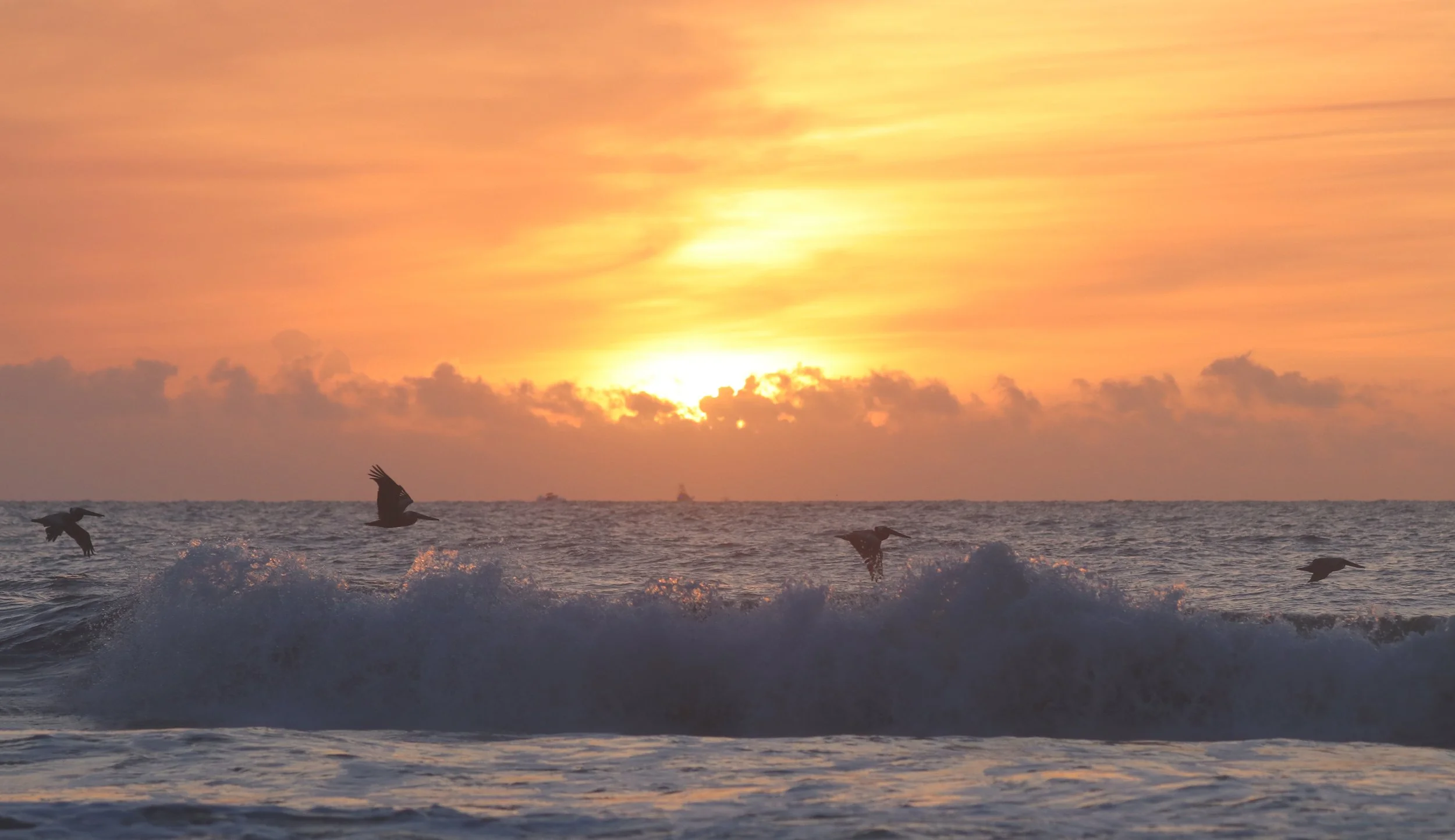 A lovely morning with a perfect soft breeze, rolling waves and lovely reflections on the wet sand. Pelican Highway had long lines of traffic traffic was heavy before sunrise gliding above the waves in perfect t unison.