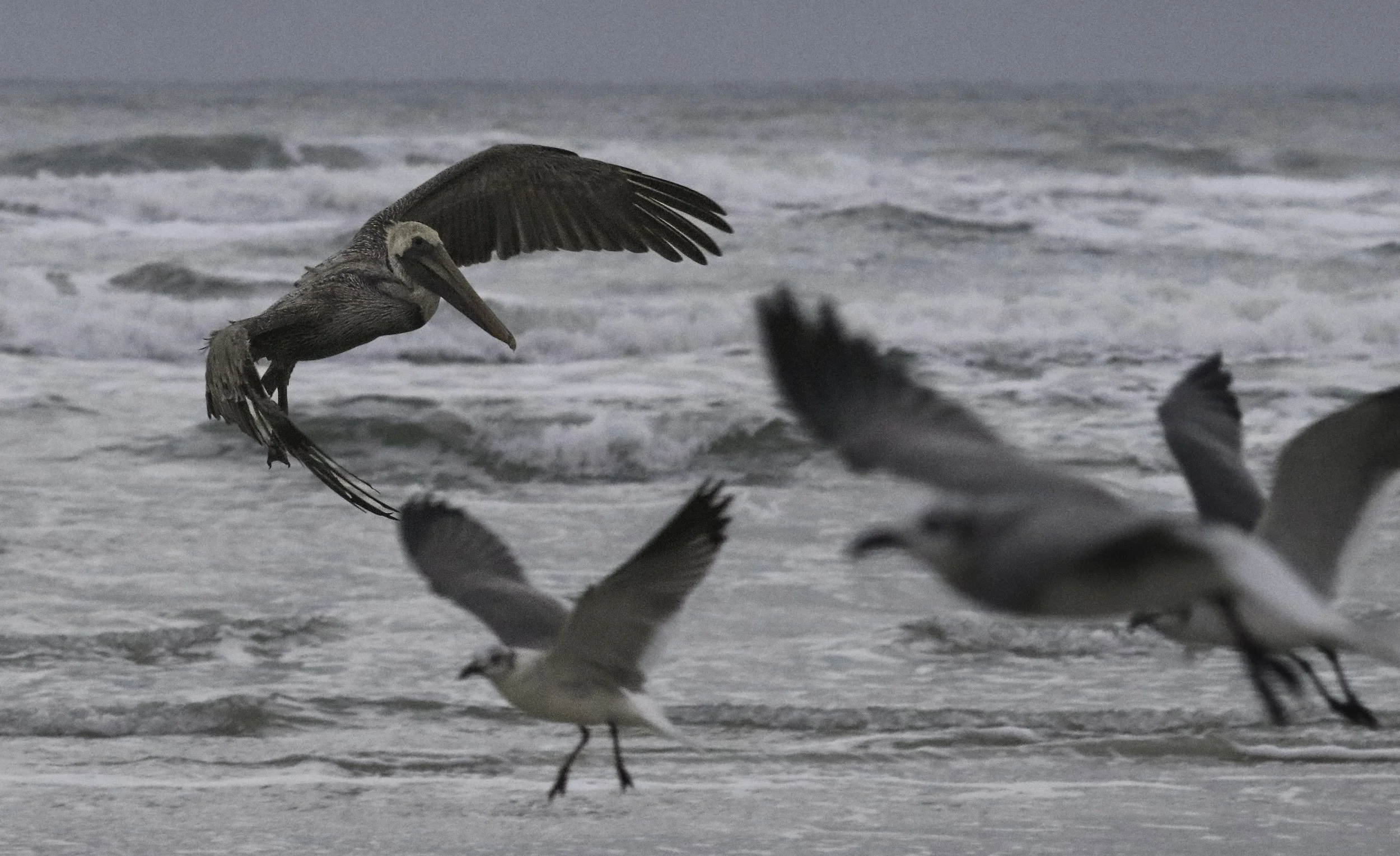 Surprisingly a pelican flew in to join the flock of seagulls. He brings the message of expecting the unpected connections, they can show up anytime and out of the blue.