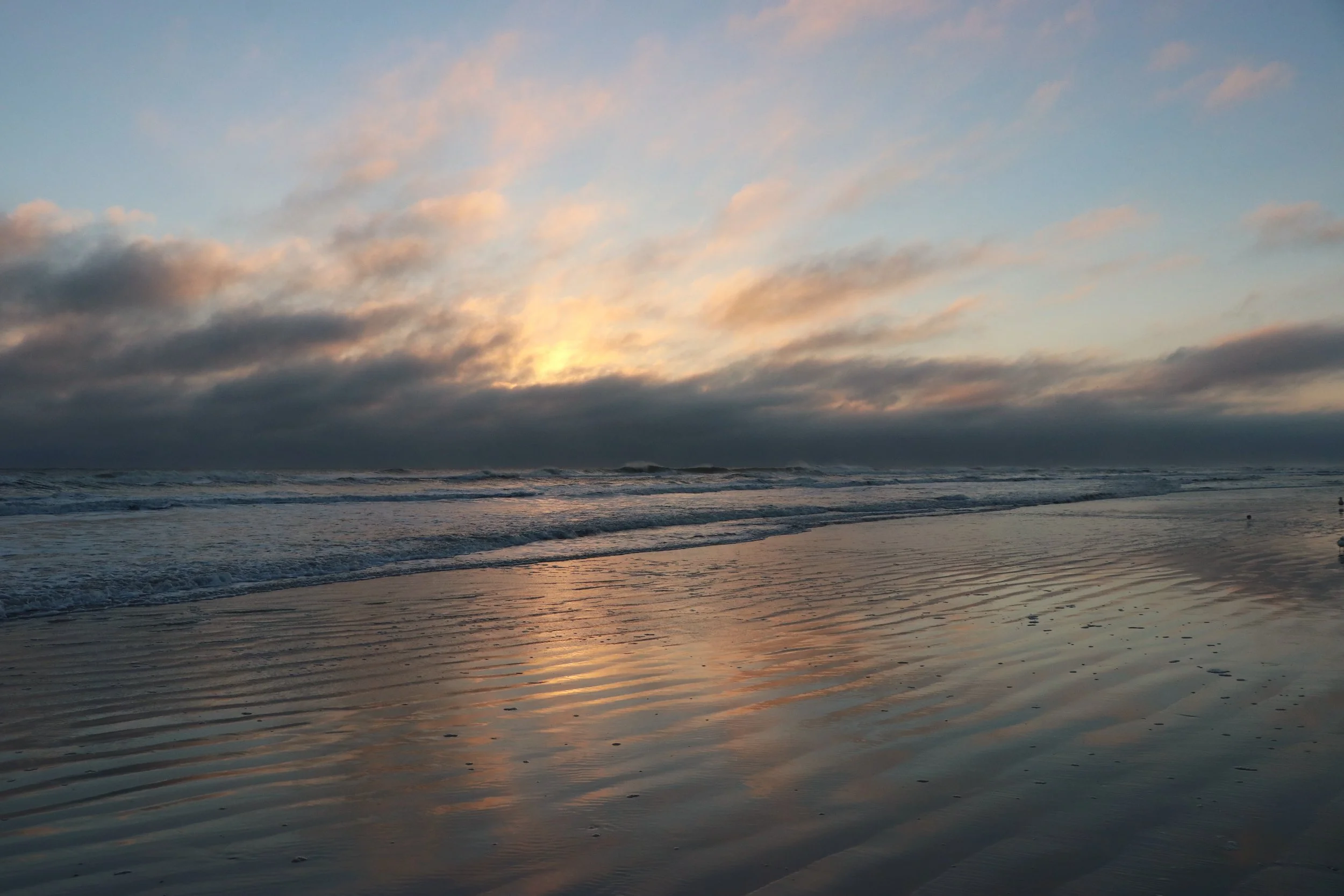 Weeeeeeeee! Baby it’s windy outside! The pre sunrise sky was grey with the contrasting white churning ocean waves. The wind was catching the sparkly white mist and tossing it into the sky giving us a beautiful winter landscape.