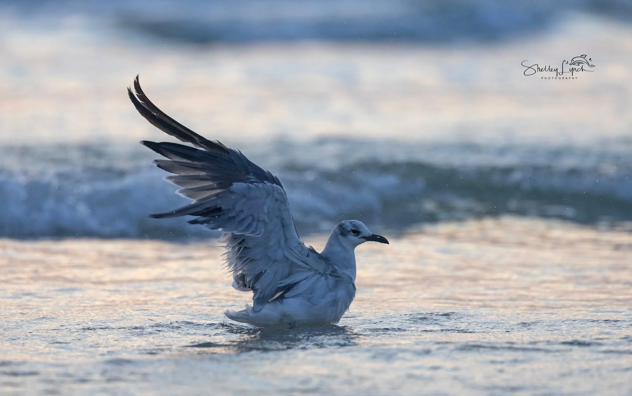 A huge flock of laughing gulls was extra chatty, ready for bathtime while watching morning come to life. A reddish egret danced along the shore looking for breakfast, flying often to a new fishing hole.