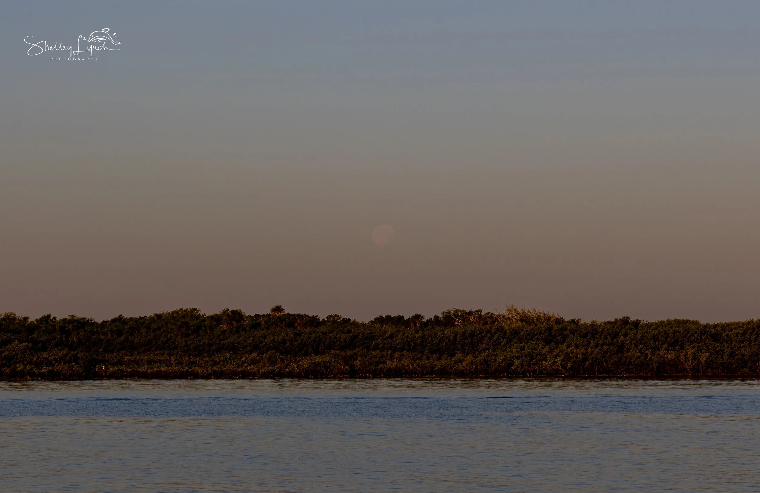 As the sun came up kissing the ocean goodbye for the day, a huge full moon could be felt to the west setting over the Indian River. Together they make a powerful duo.