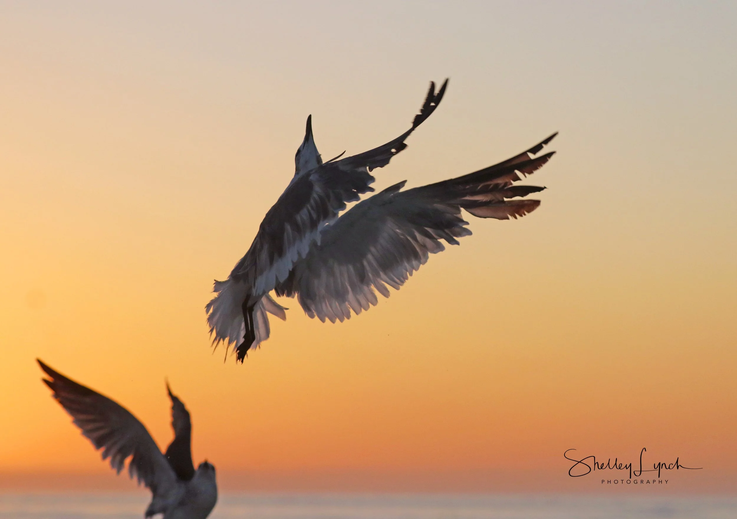 The sunrise was for the birds today! The flock of seagulls flew in hot and spunky. With a light breeze and calm ocean, the vibe was serene. Dolphins cruised northbound in the distance grabbing breakfast while the flock danced in front of the sun.