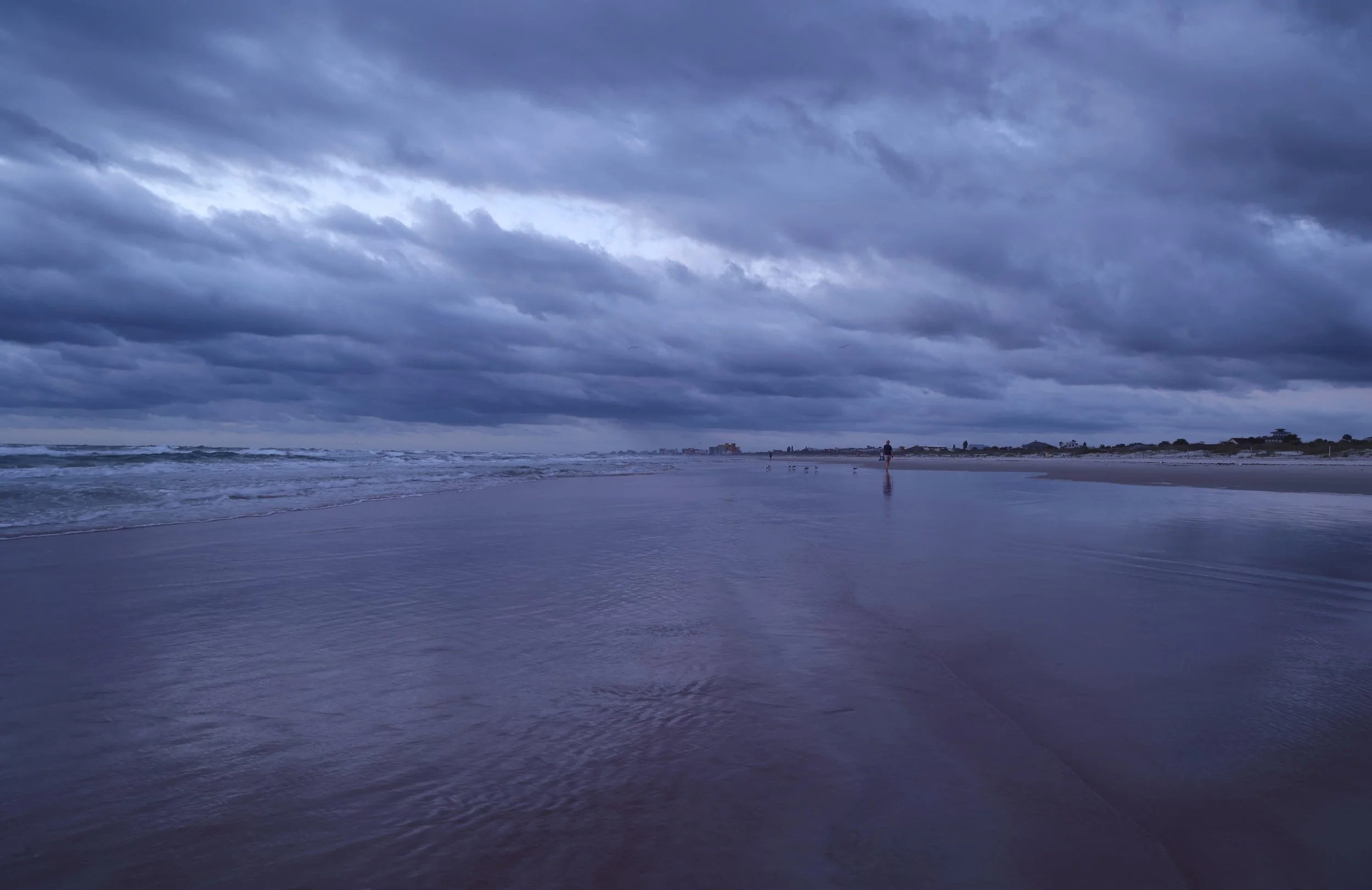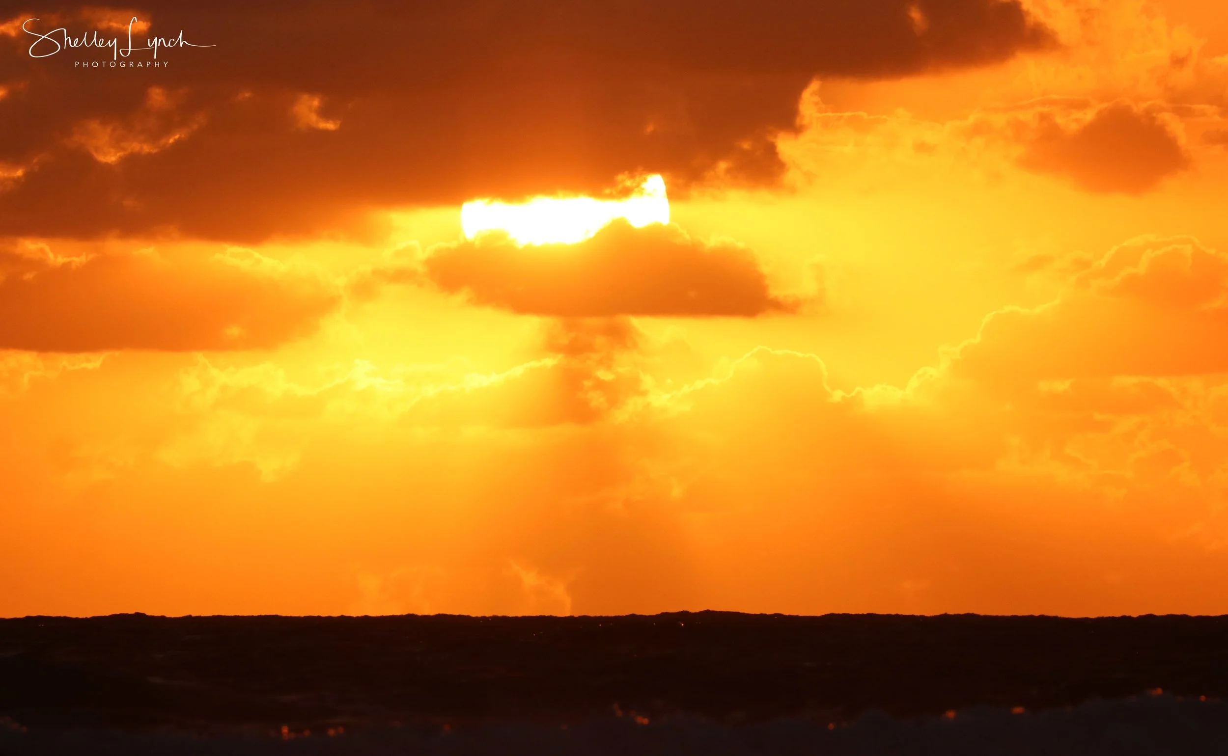 Mother Nature brought us a dramatic sunrise with a grey and purple color show until the sun came up to stream golden light through the clouds.