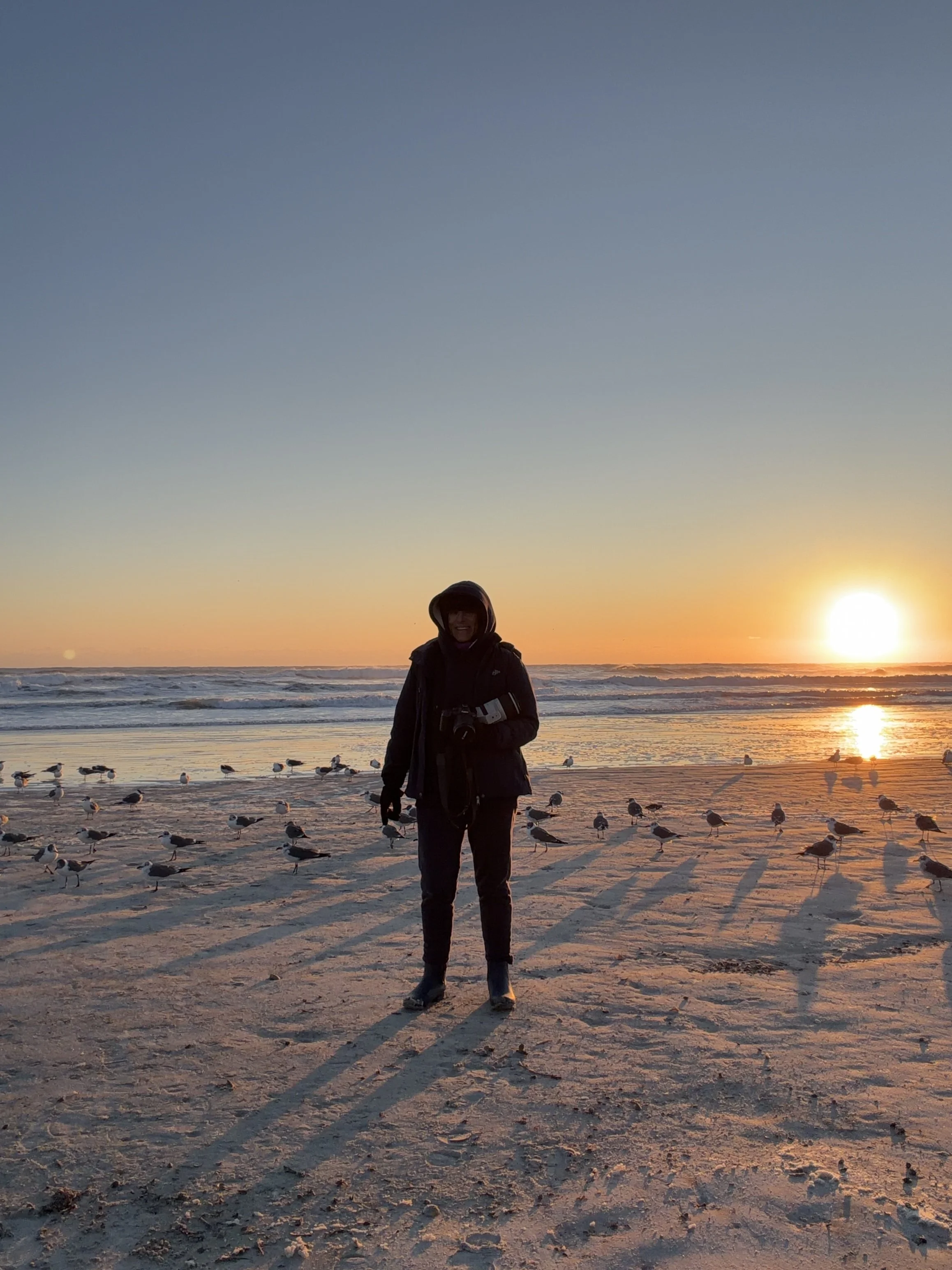The sun came up with waves rolling and breaking, the spray softening the light, reminding us that movement can be both powerful and calming.