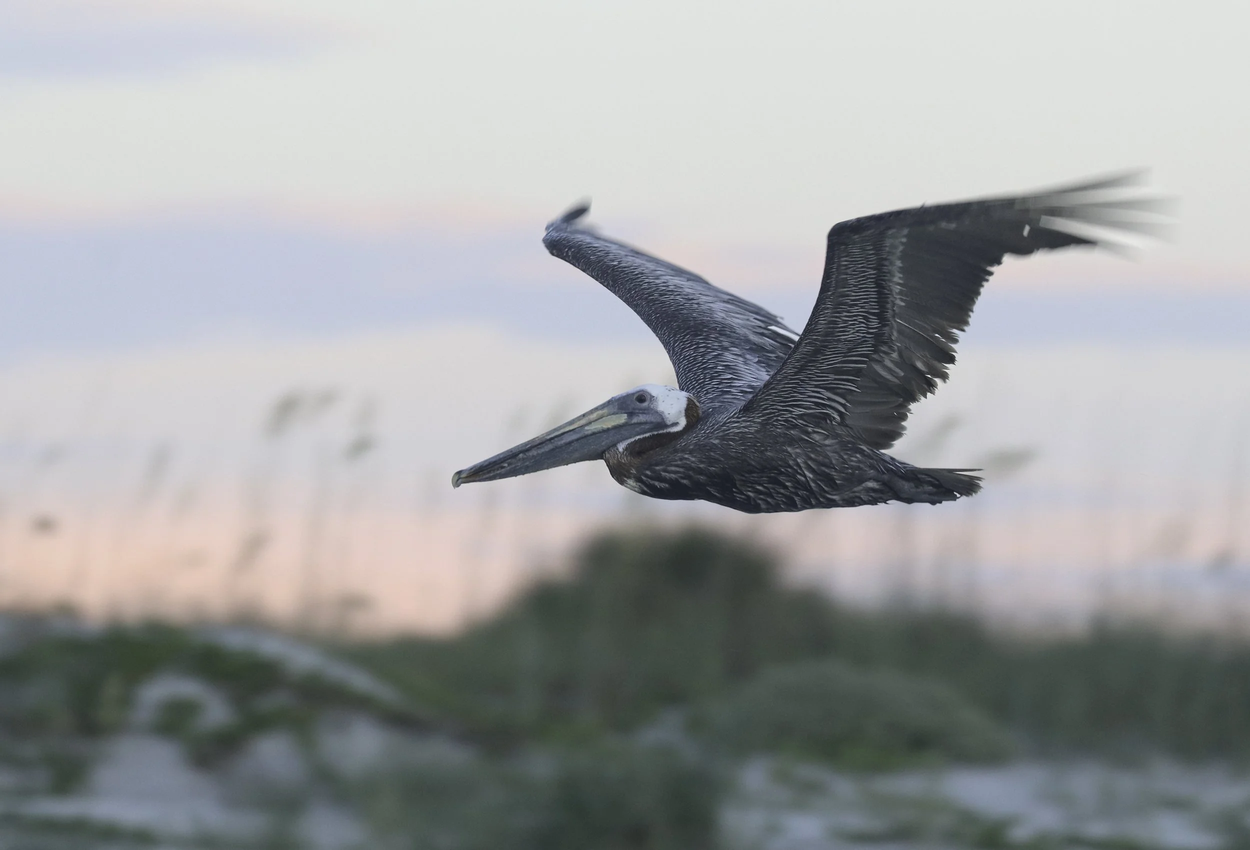 Pelican Highway traffic was light with a rest stop near by. A solo pelican stopped on the beach to grab a snack and rest before heading back into the traffic.