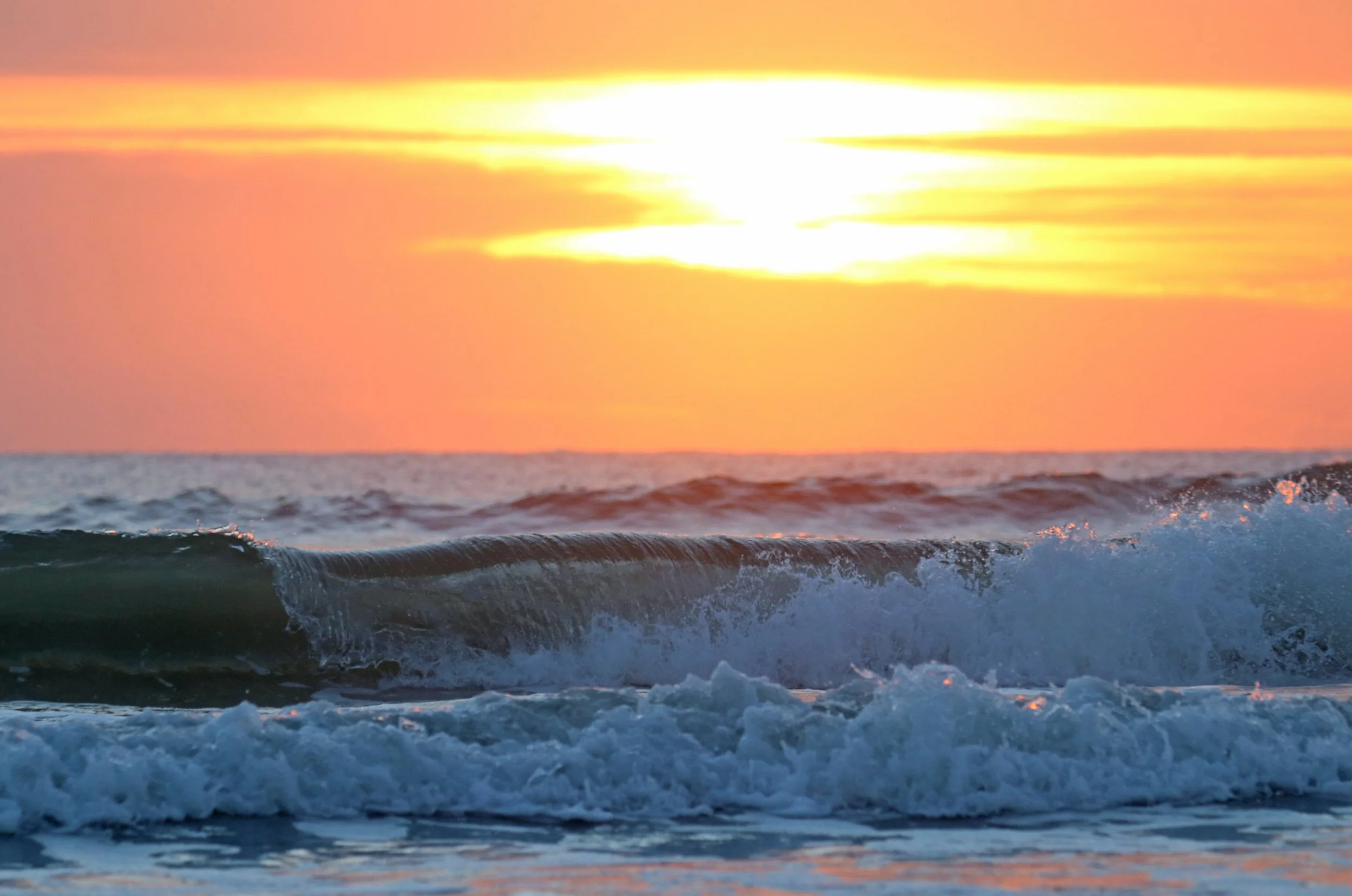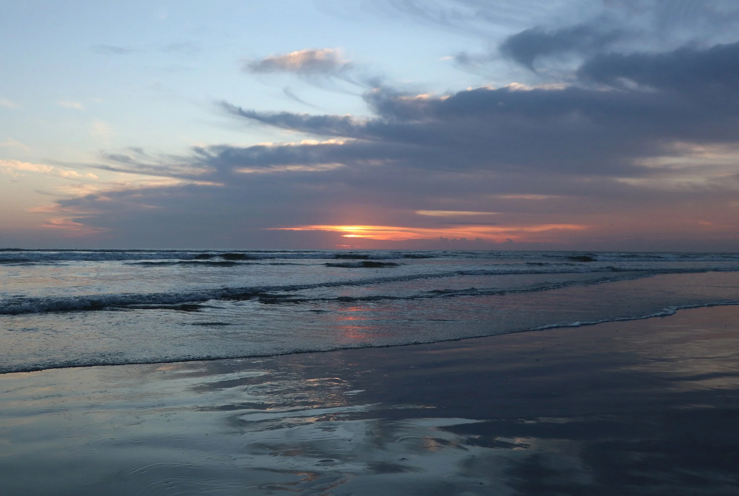 Mother Nature used her wispy paint brush with the clouds, stretching them out in long soft strokes. The ocean was calm with small waves rolling toward shore. The temperature of the air was cooler than the ocean and felt refreshing.