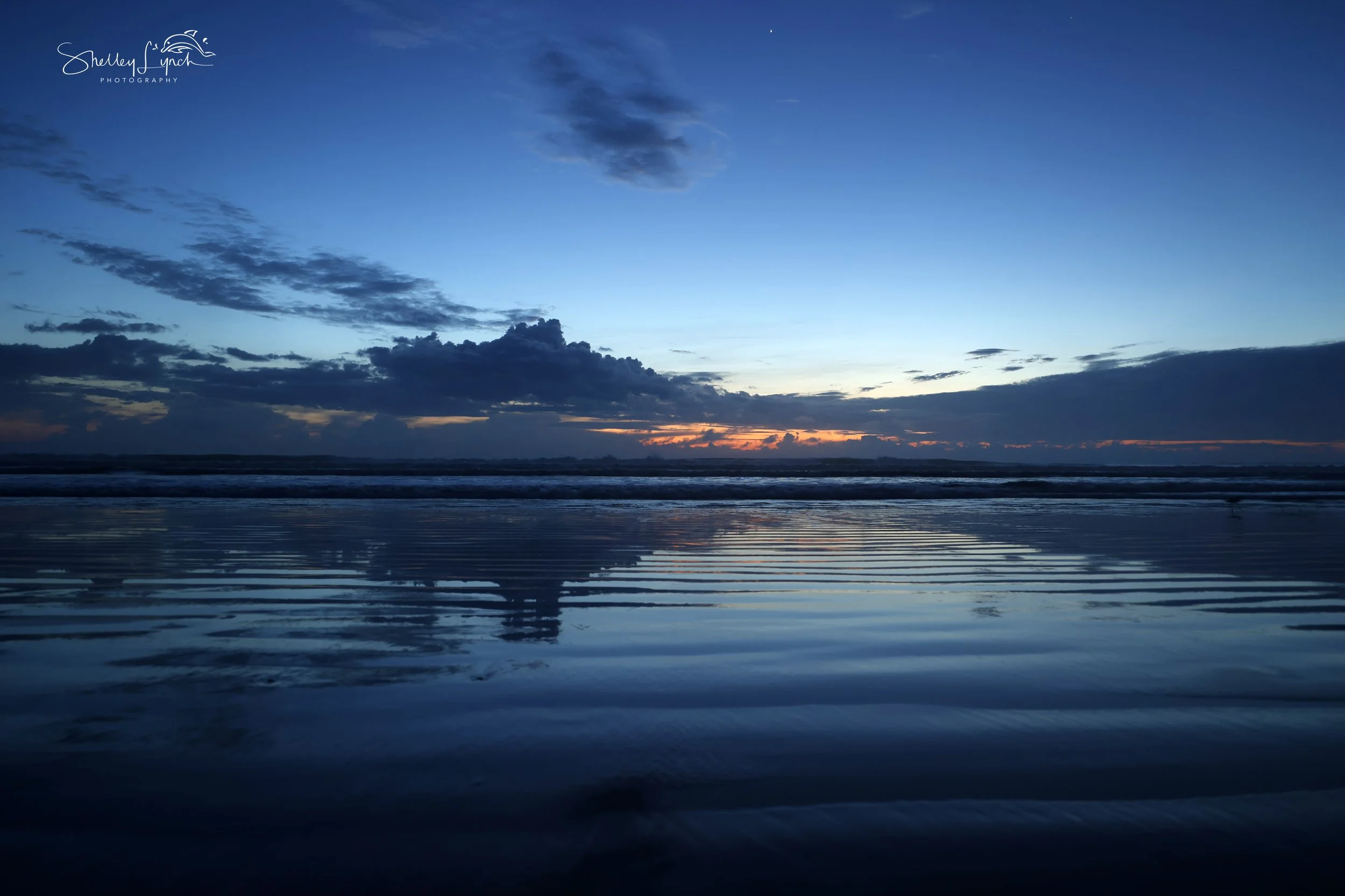 The pre-sunrise sky glowed a soft blue with a hint of pink reflecting on the rippled wet sand. The flock was quiet when they arrived around 6:15, ready to get squeaky clean.