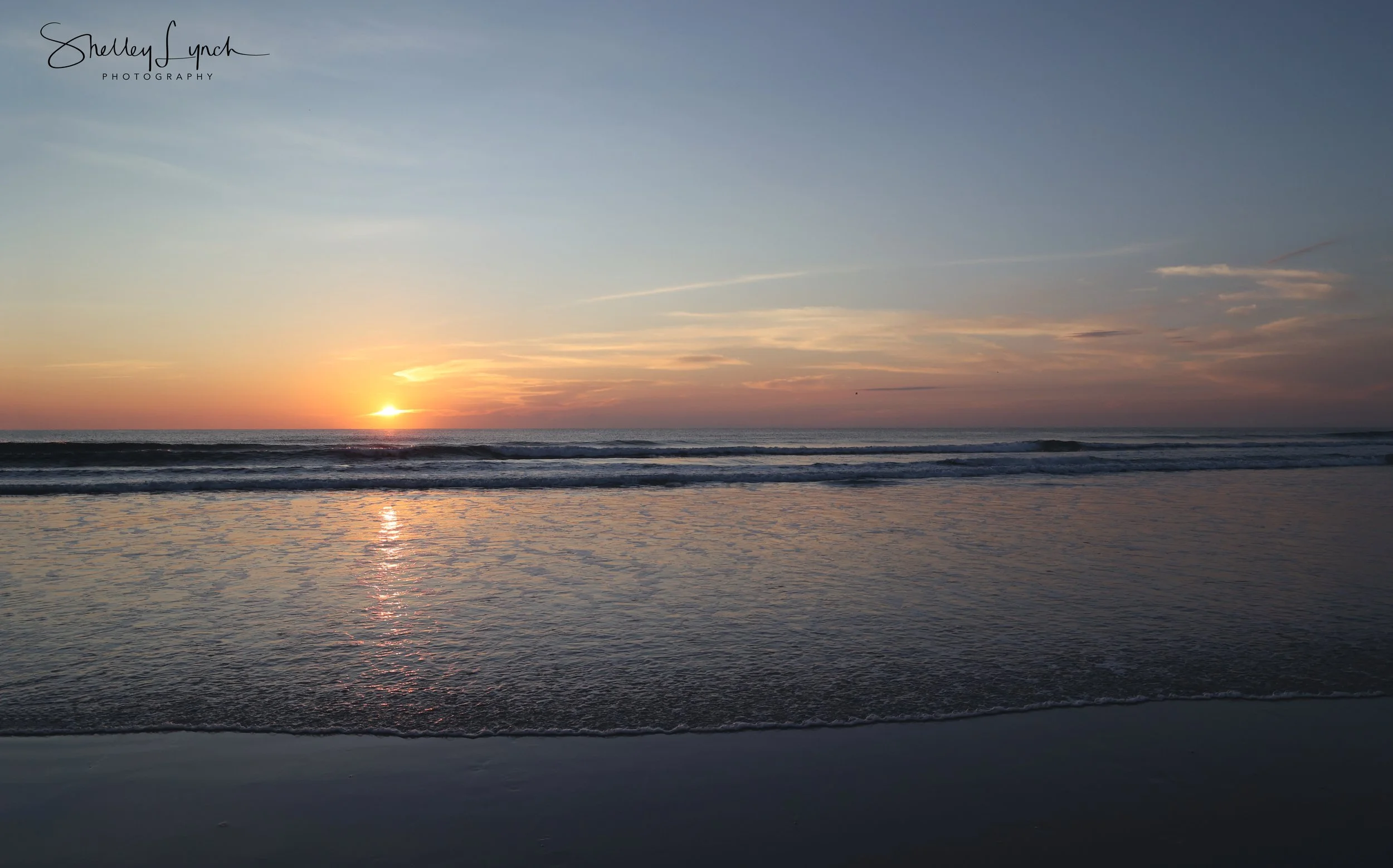 AHHHHH, another serene sunrise with a light breeze and calm ocean. Soft pink filled the sky as I walked to the beach. The waves were perfect as they rolled toward shore soaking up the rainbow of colors.