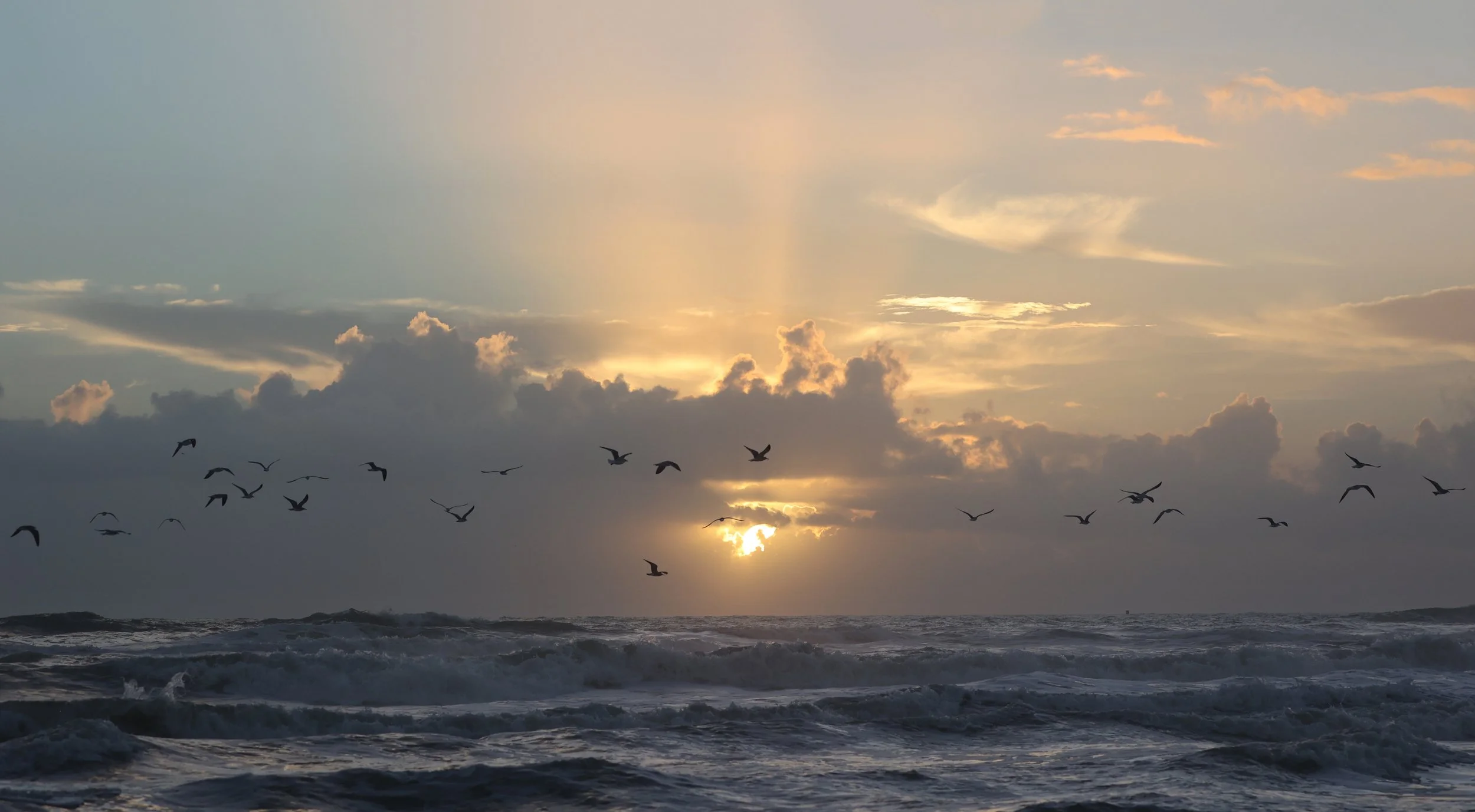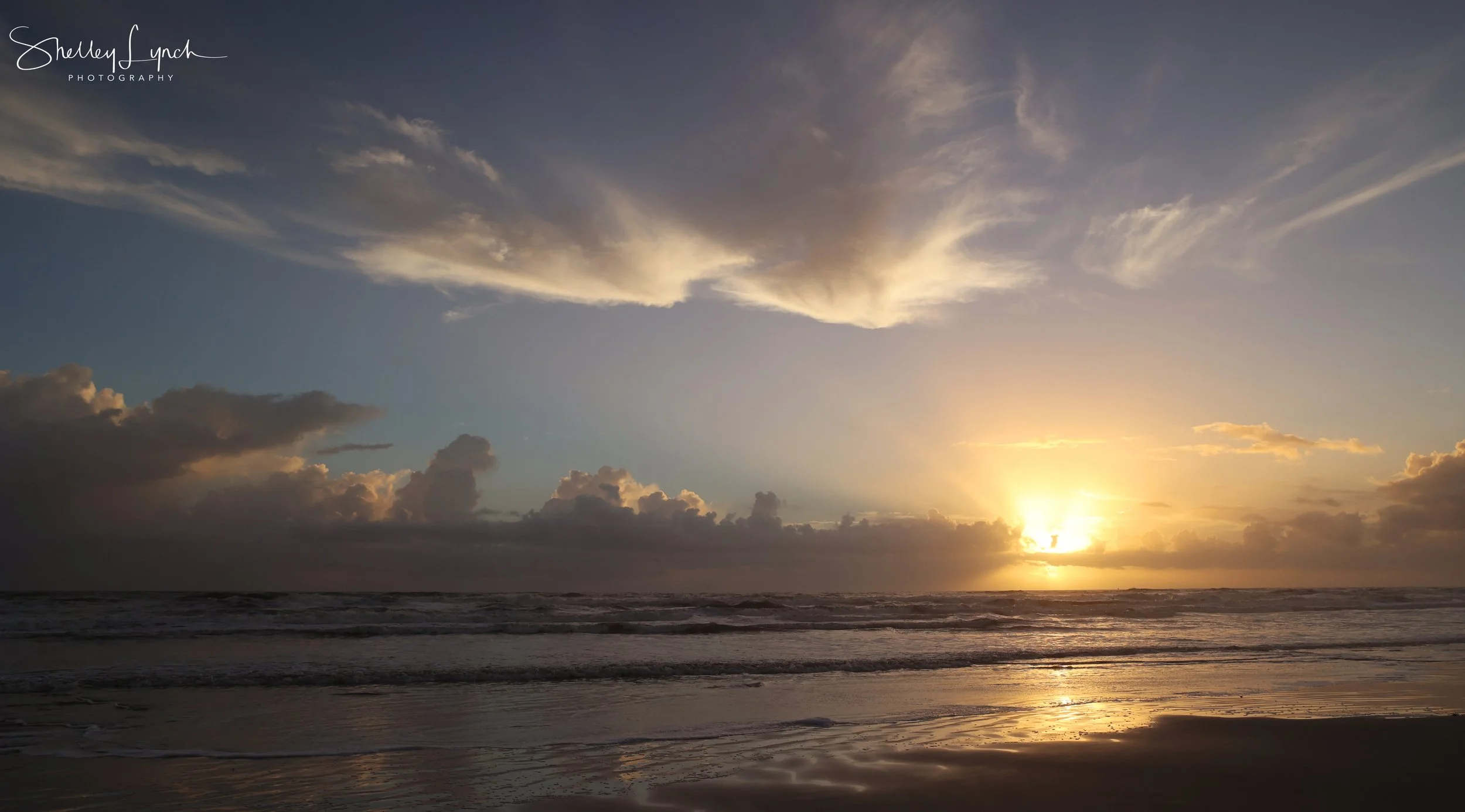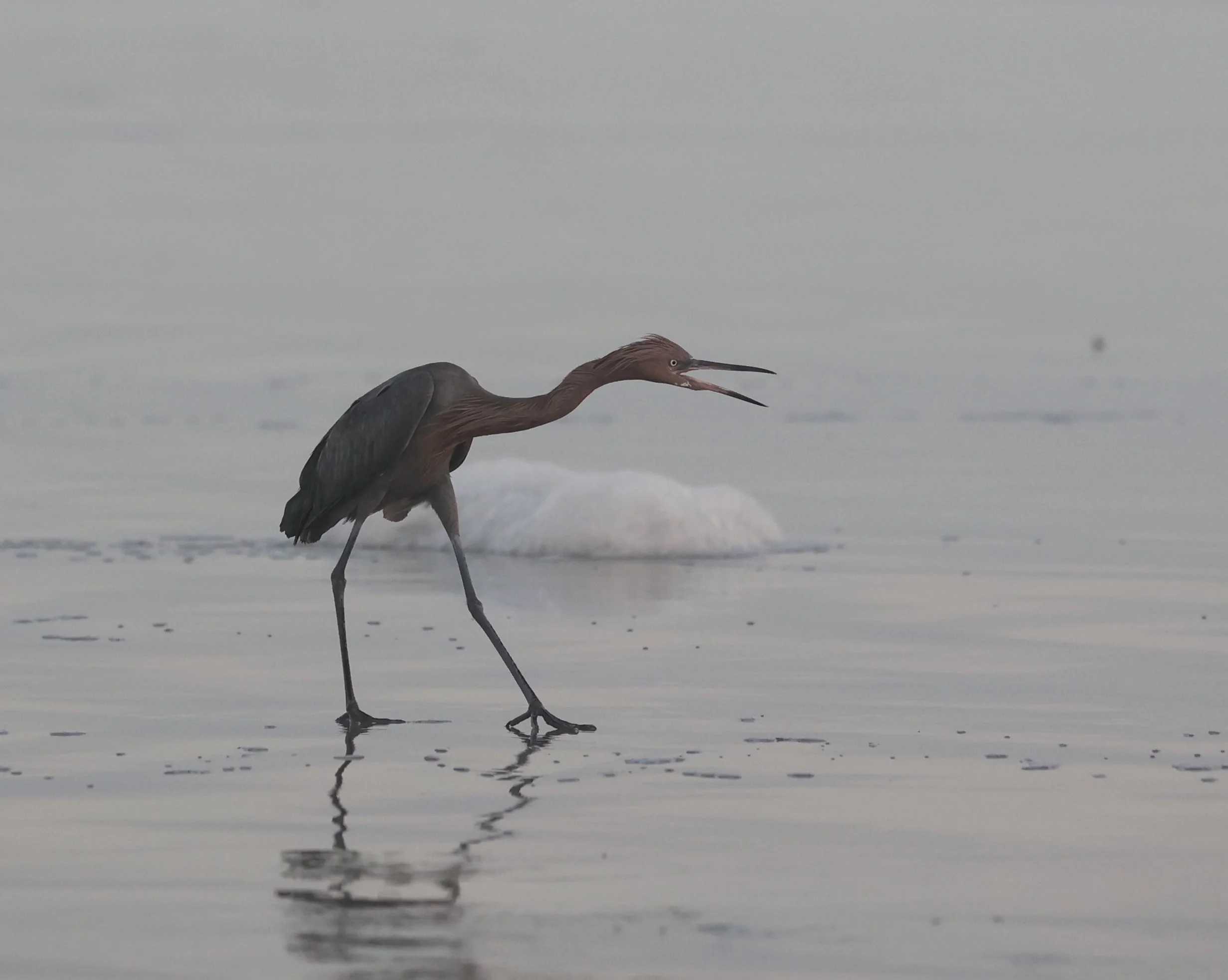 Mother Nature brought us a balmy, hazy sunrise with the ocean churning and light breeze. Despite the time change, the gulls flew in just before sunrise like usual. We were enjoying bath time when not one but 2 reddish egrets came countering down the beach.