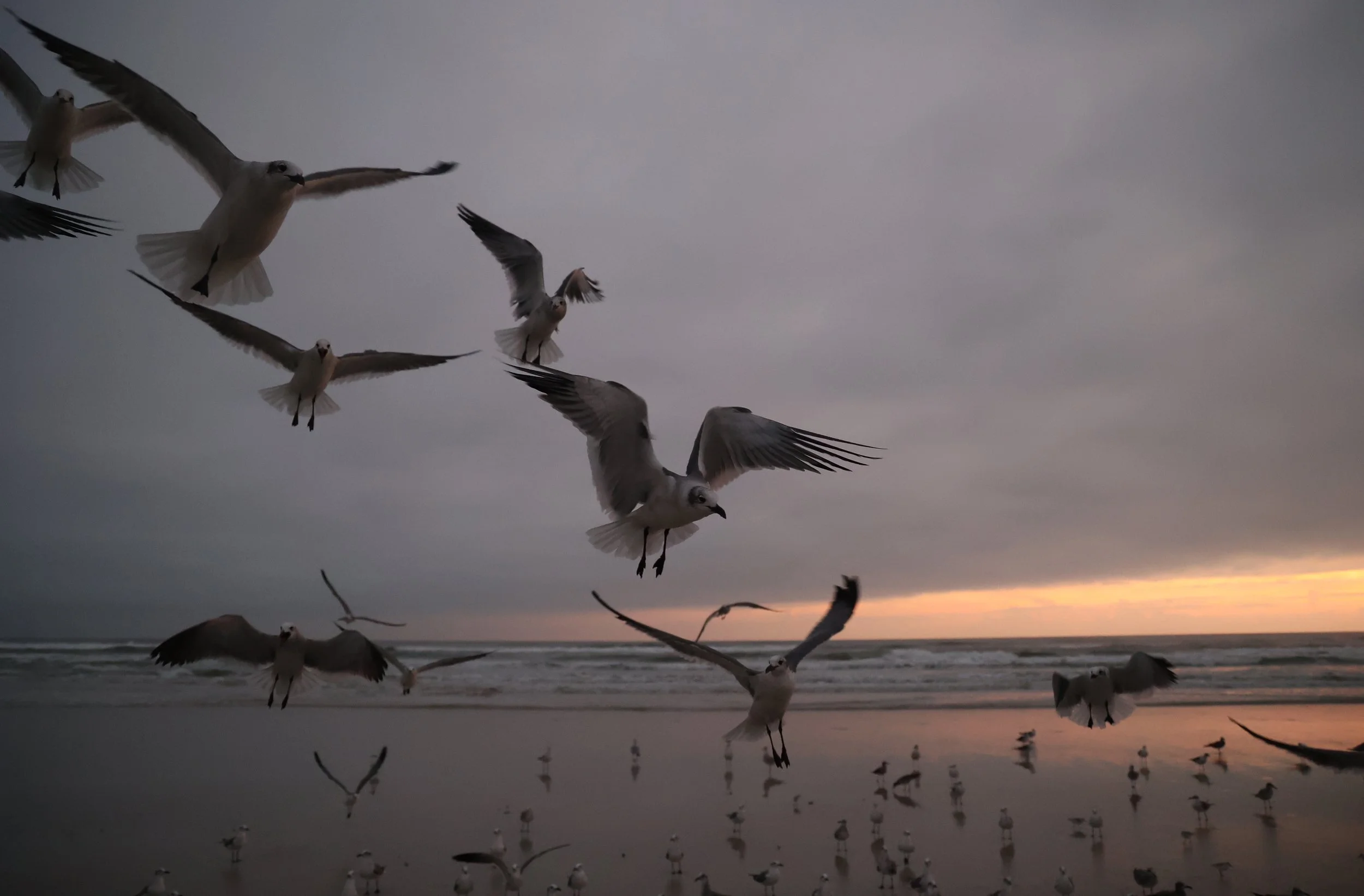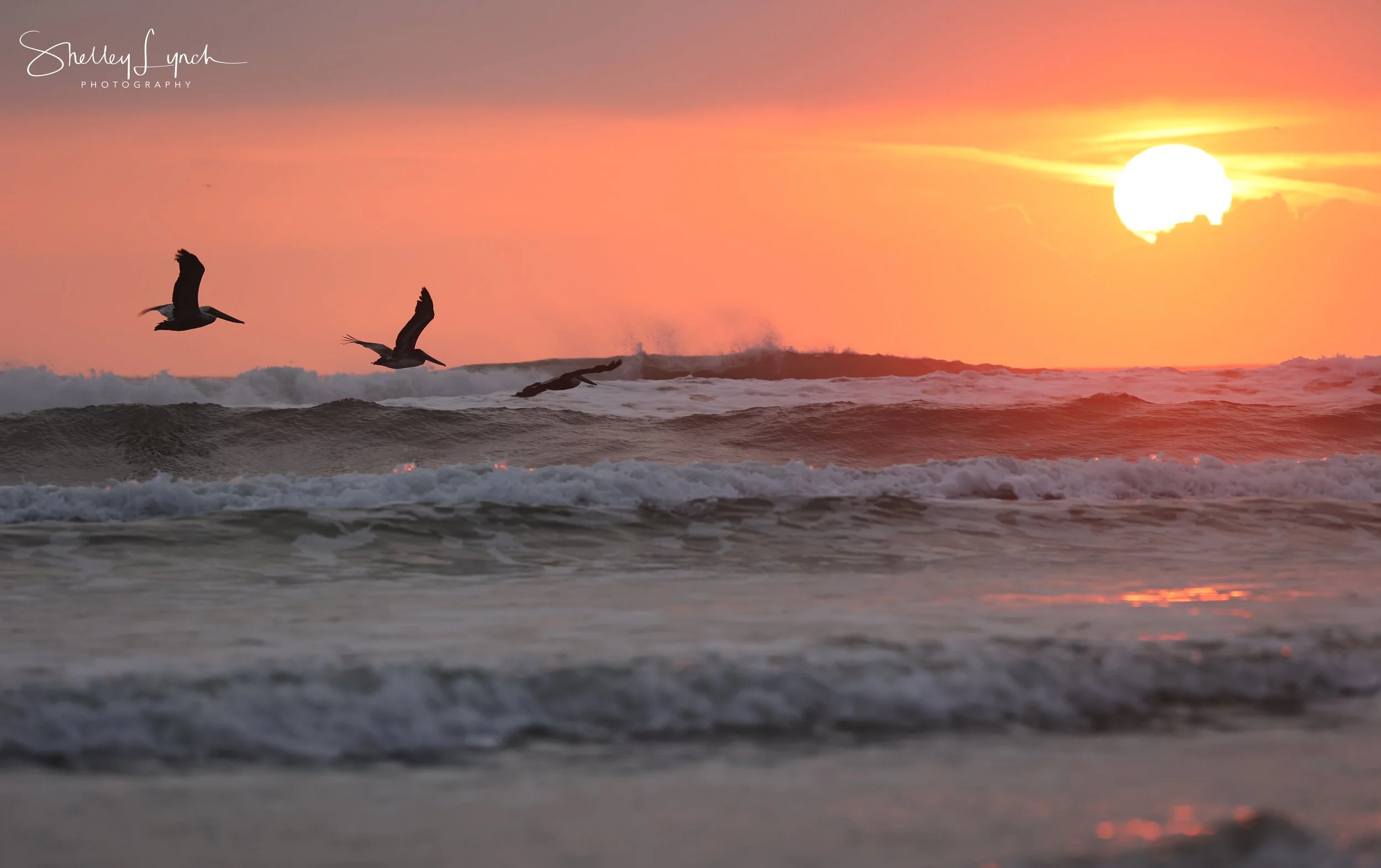A layer of clouds looking like cotton balls covered the sky like a cozy blanket. Pelican Highway cruised southbound over the the emerald colored waves rolling toward shore.